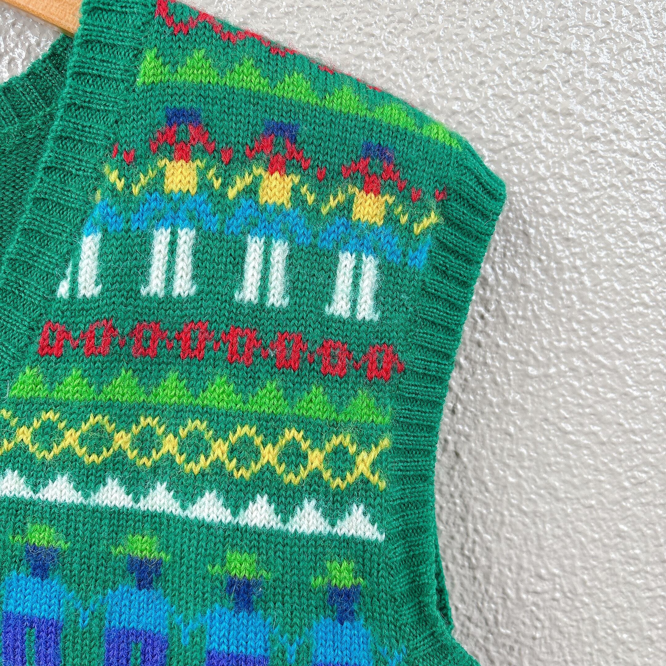 鮮やかなグリーンとカラフルなパターンがキュート過ぎます。春先まで長くお使いいただける一枚。