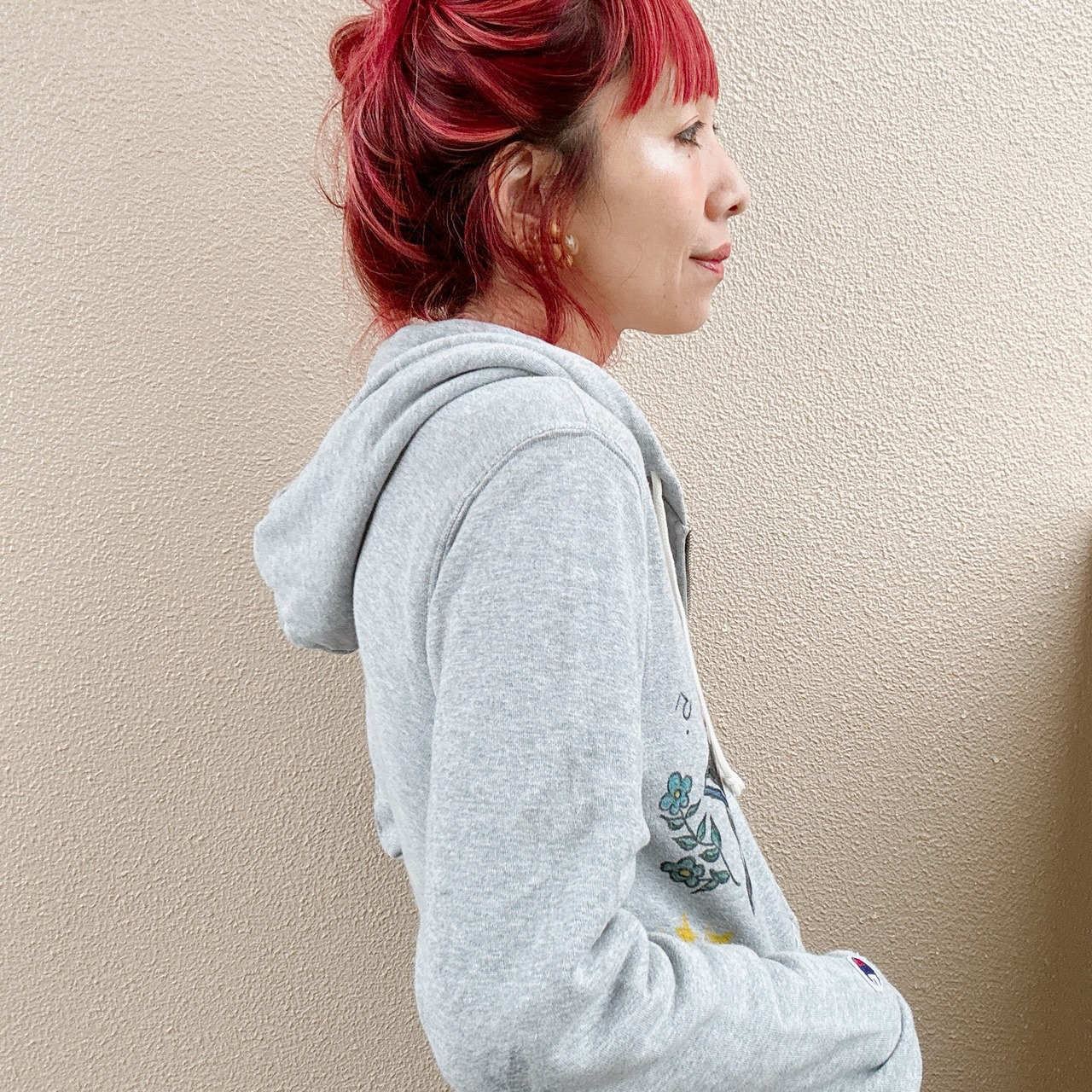 ▪️長めのリブが可愛いチャンピオンジップアップパーカー。厚すぎず薄すぎずで羽織りとして真夏以外シーズンレスにお使いいただけます。