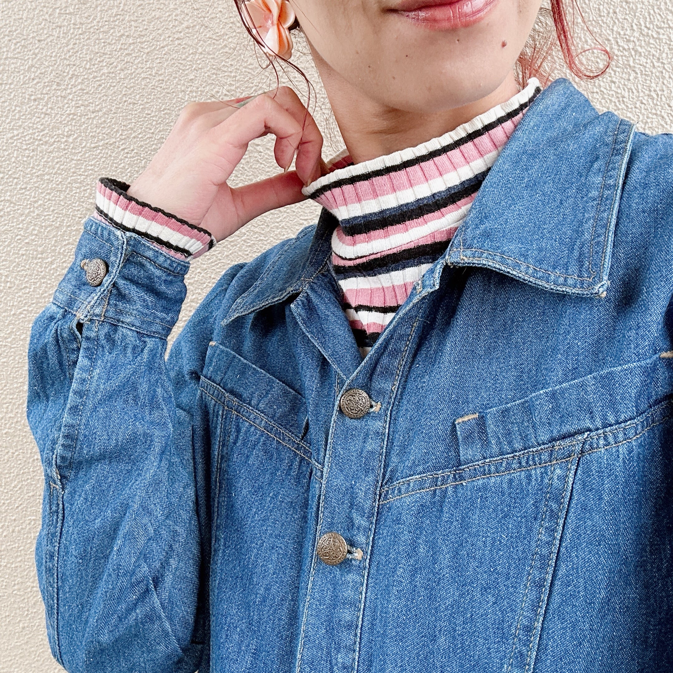 カーディガンを羽織ったりとデイリーにお使いいただけます。ヴィンテージボタンもアクセントに☺︎。
