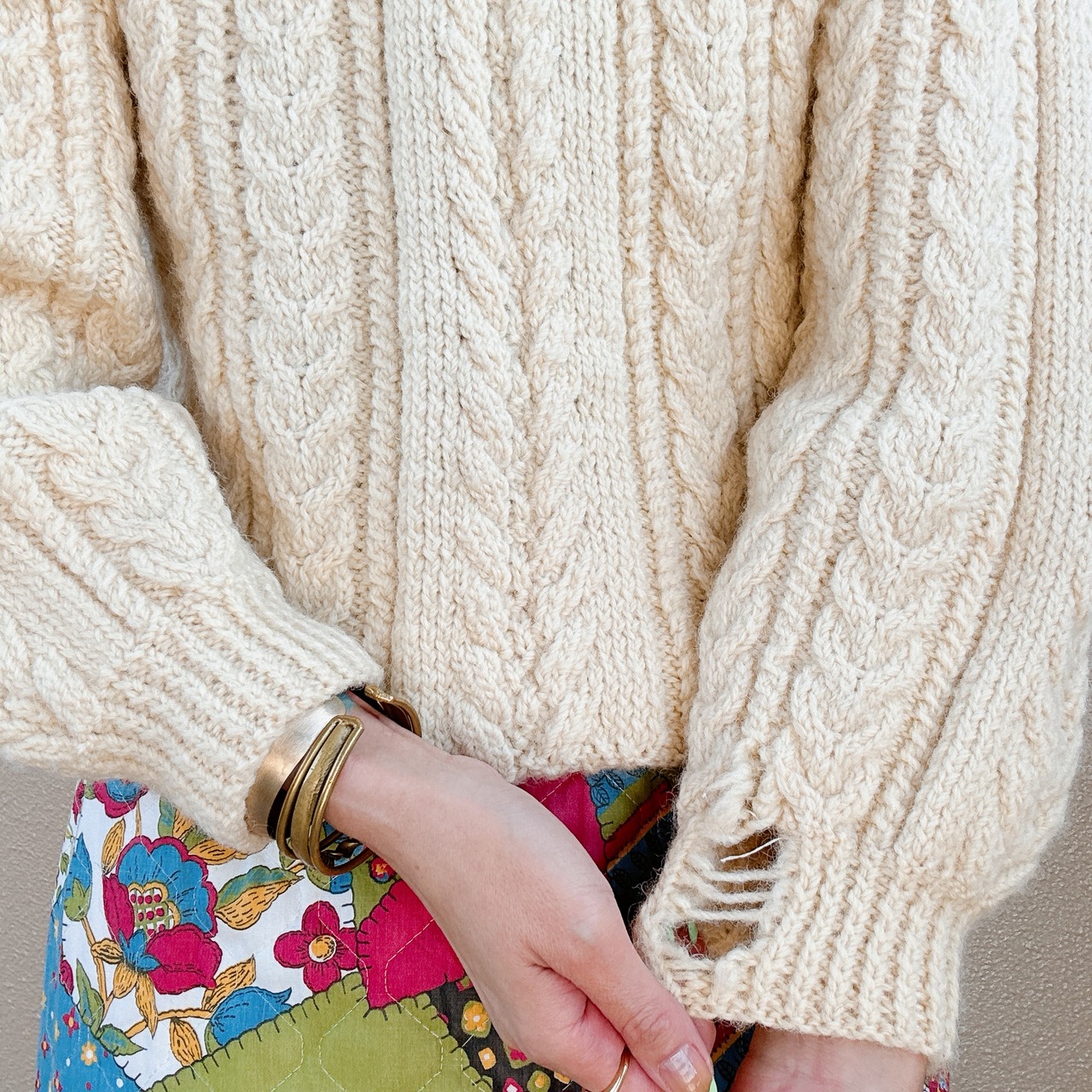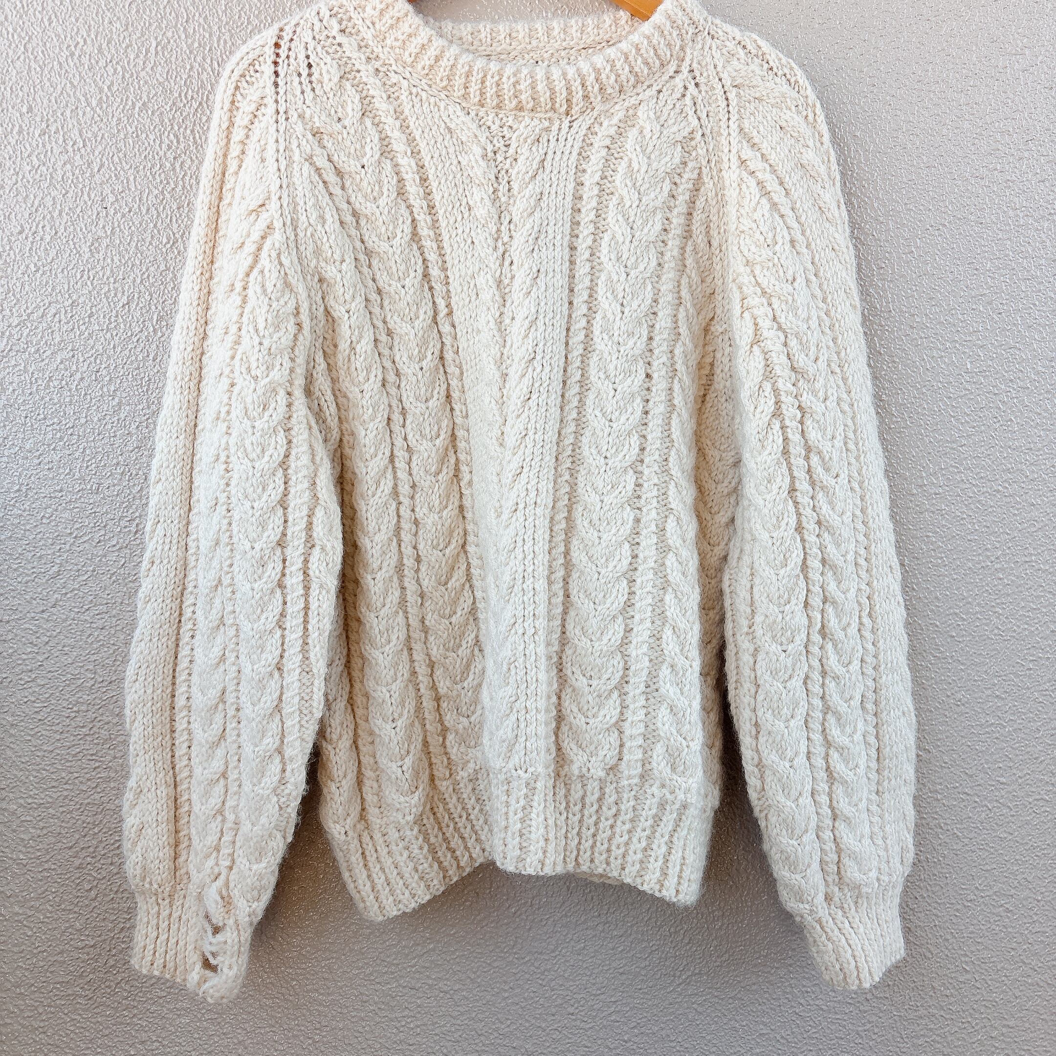 ◾️サイズ感、雰囲気ともに抜群のアランニットです。大き過ぎず小さ過ぎずでインナー使いにもオススメです。肩のフンワリからお袖口にかけて絞られているデザインもキュート。秋冬1枚でも主役級に可愛い1枚です。普段Mサイズ着用モデルでピッタリのサイズ感でした☺︎