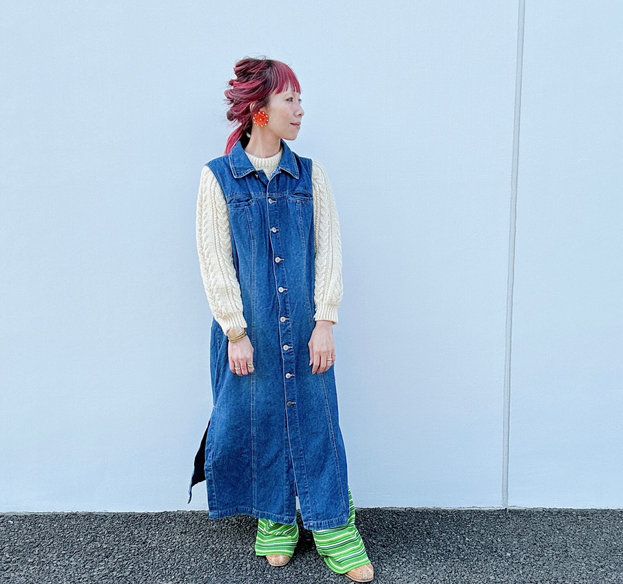 インナー次第で何通りもスタイリングを楽しんでいただけます。ニットと合わせても抜群にキュートです。フーディや柄物と合わせても◎。