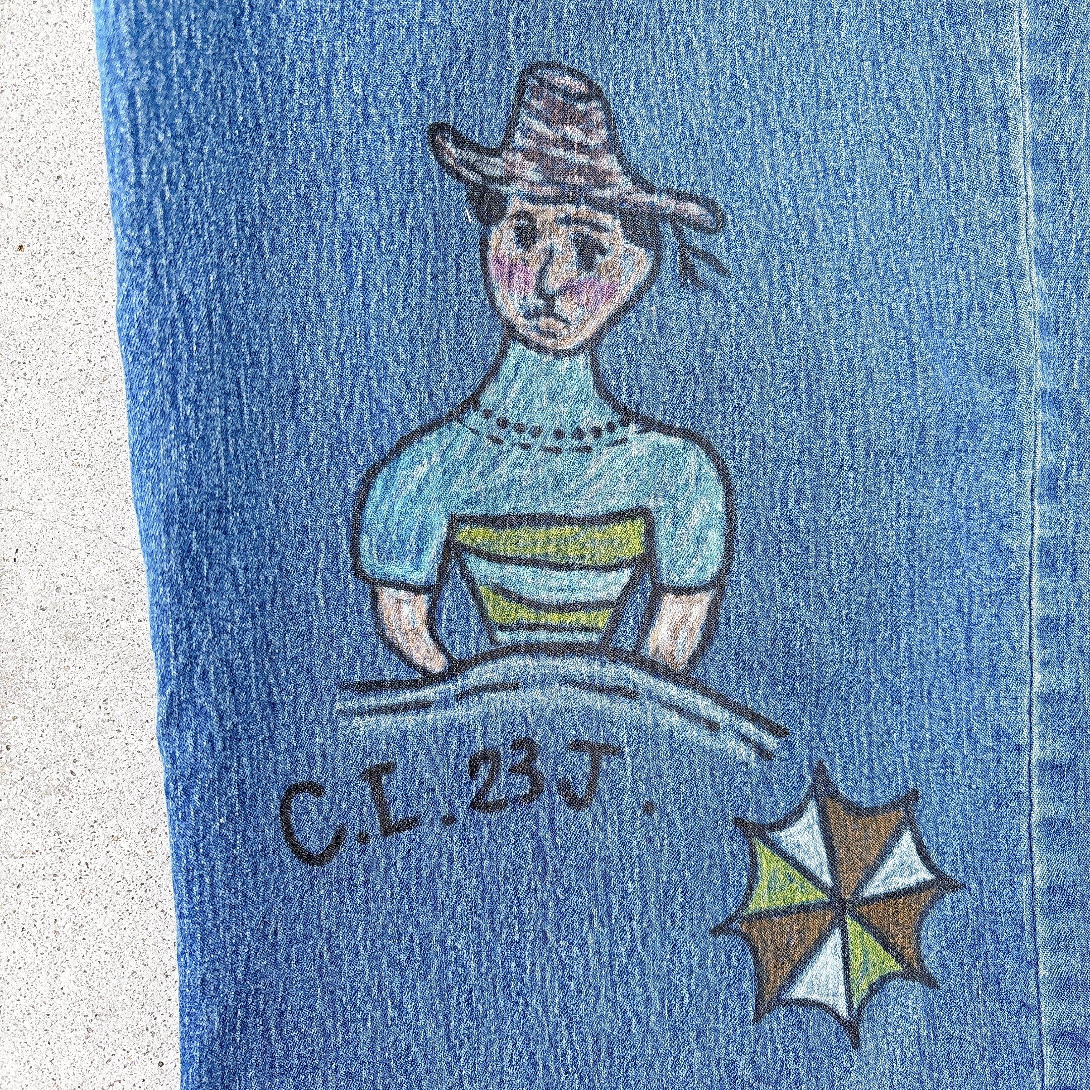 ▪️汚れやダメージの上からハンドペイントをしています。目立たない箇所の汚れやダメージはそのままの箇所もございます。また、全体のデザインのバランスを考慮、優先しダメージや汚れがそのままの箇所がございます。予めご了承ください。