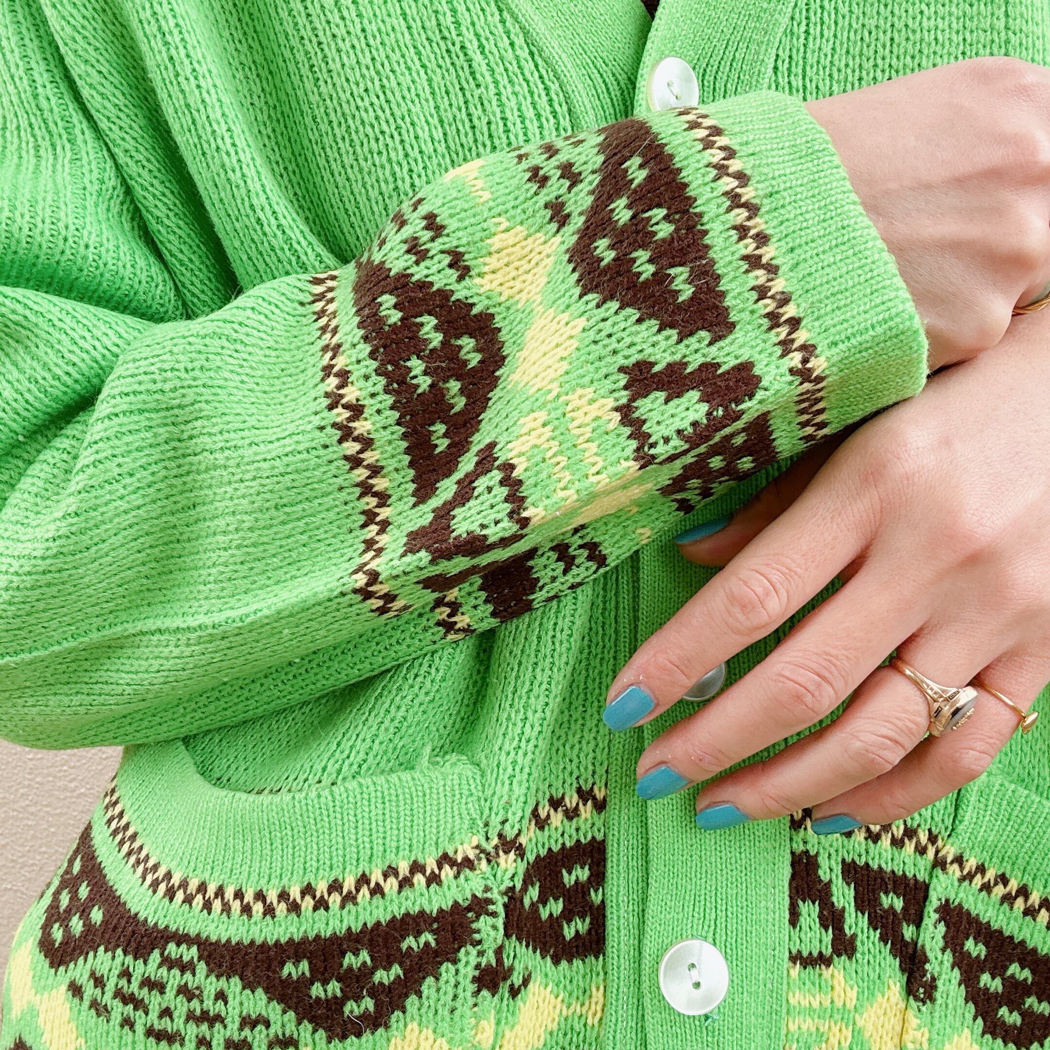 ◾️着用画像のお色味が実際のお色味に違いです。グリーンにブラウンのカラーリングが素敵。シッカリと主張した1枚ですがブラウンが入る事で奇抜過ぎず落ちつきもあります。