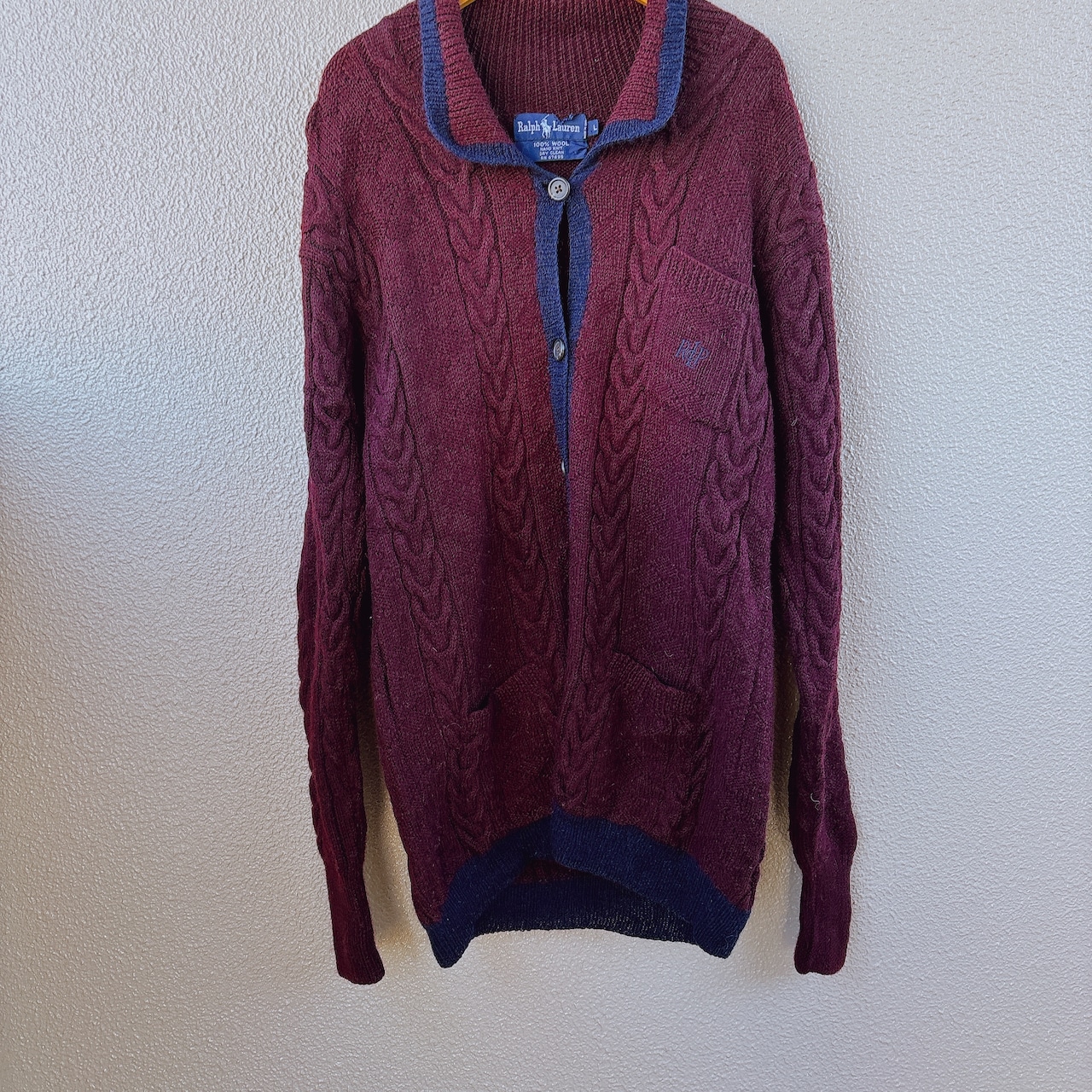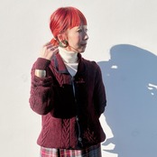 ▪️バーガンディにネイビーのカラーリングがシックで素敵なカーディガン。