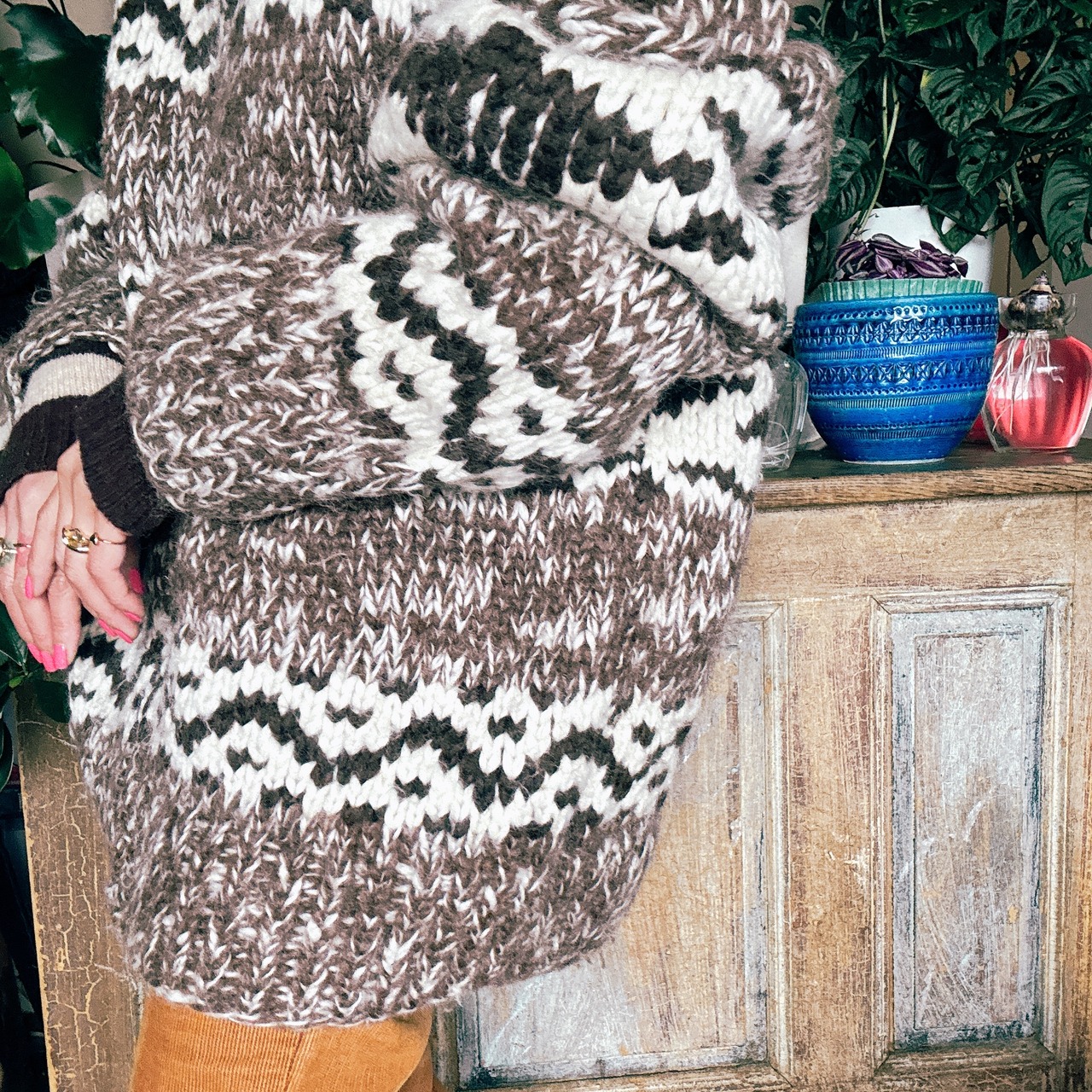 ざっくりとした編み地で、冬の空気をやさしく包み込む一枚。
