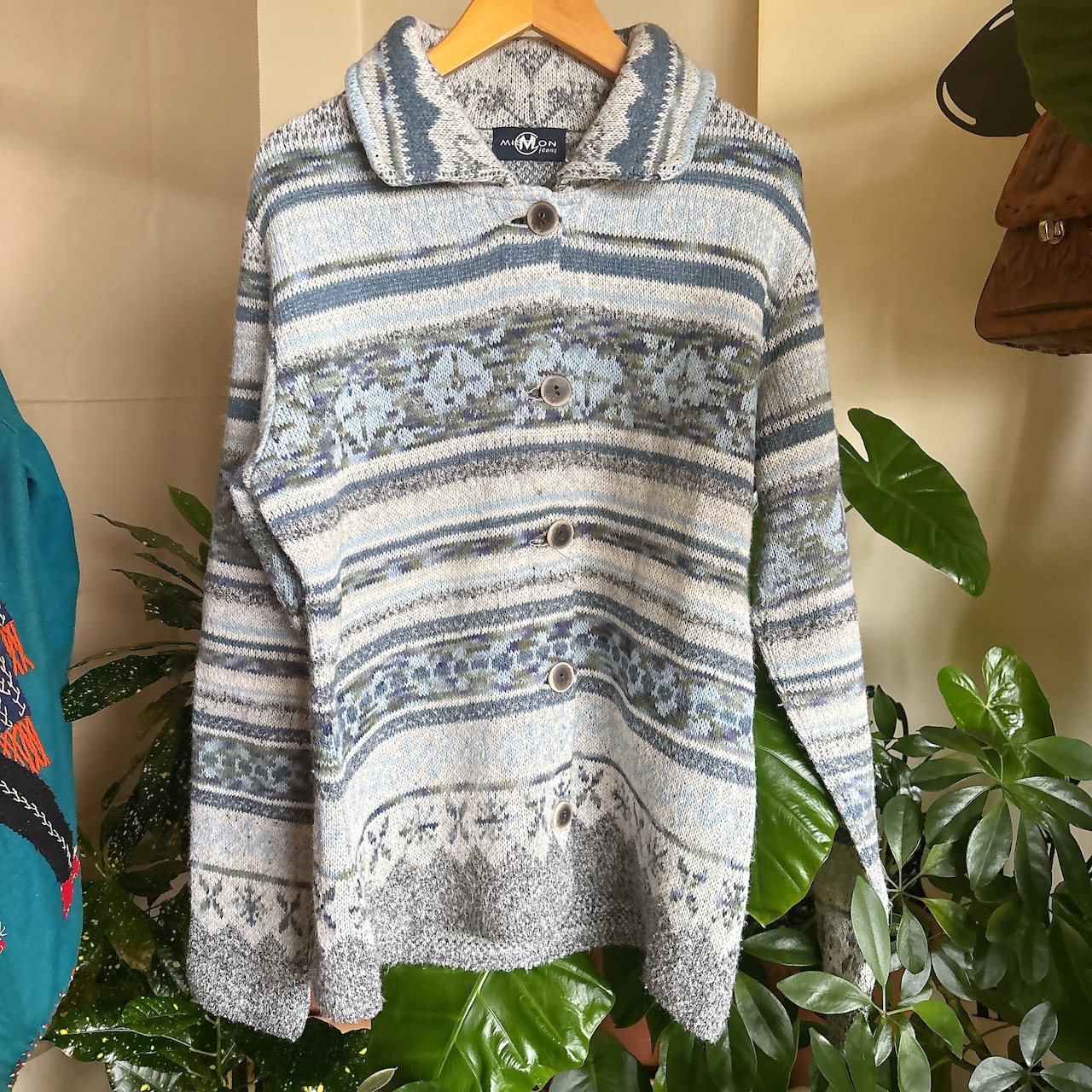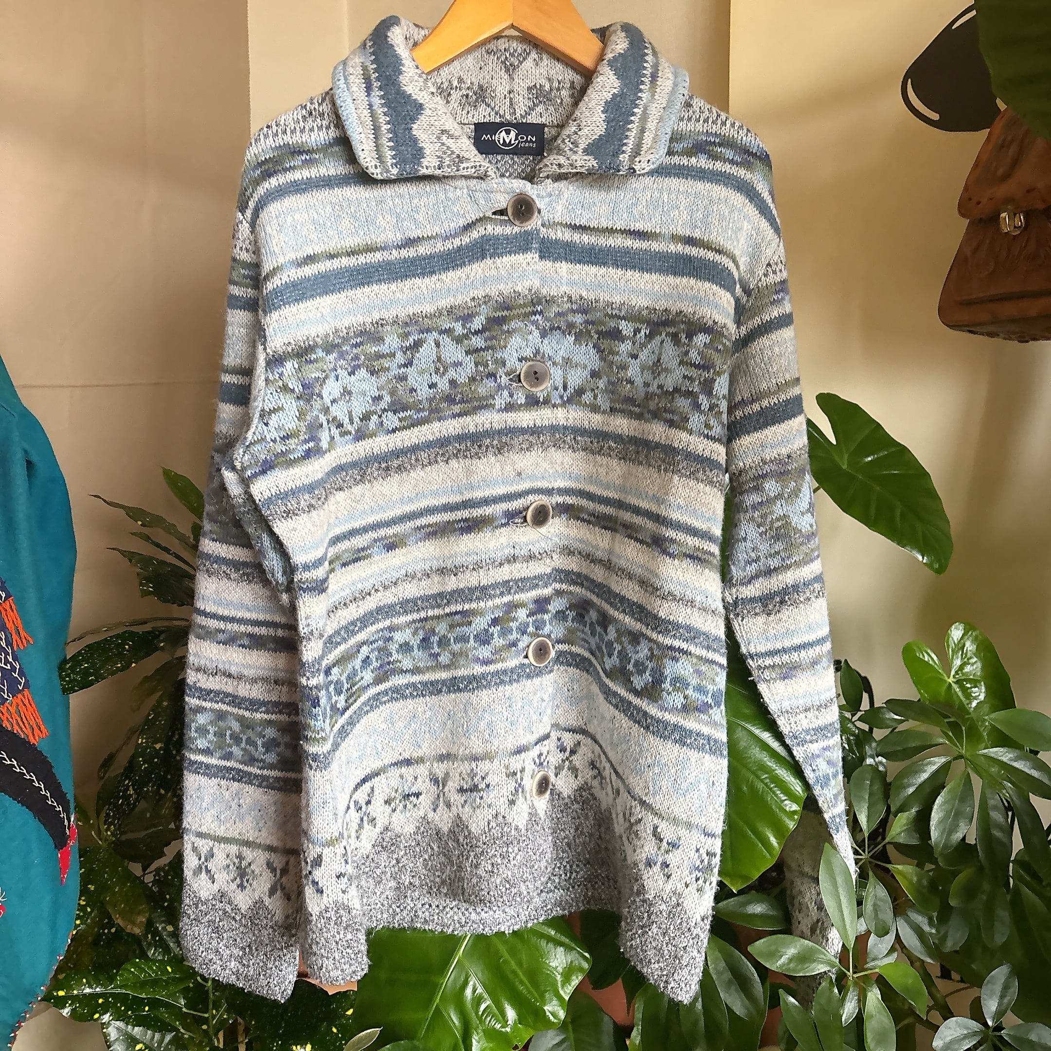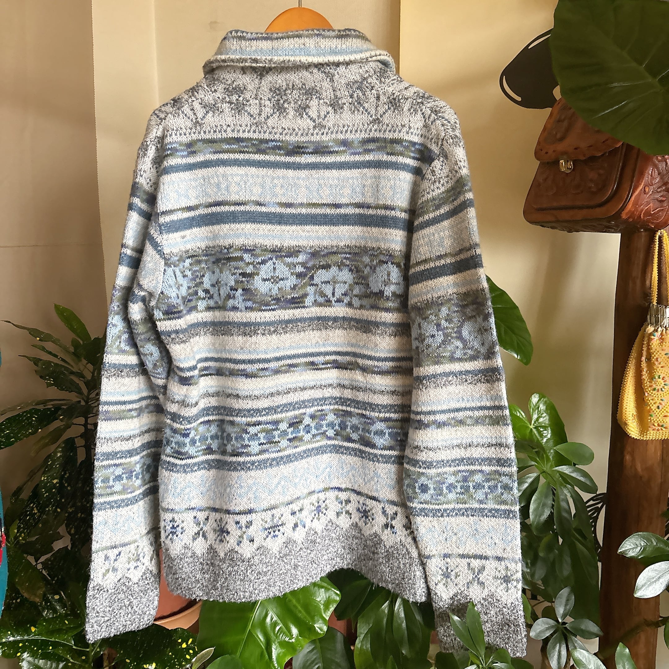 ◾️サウスウエスタン調の柄が印象的な、ヴィンテージライクなニットジャケット。