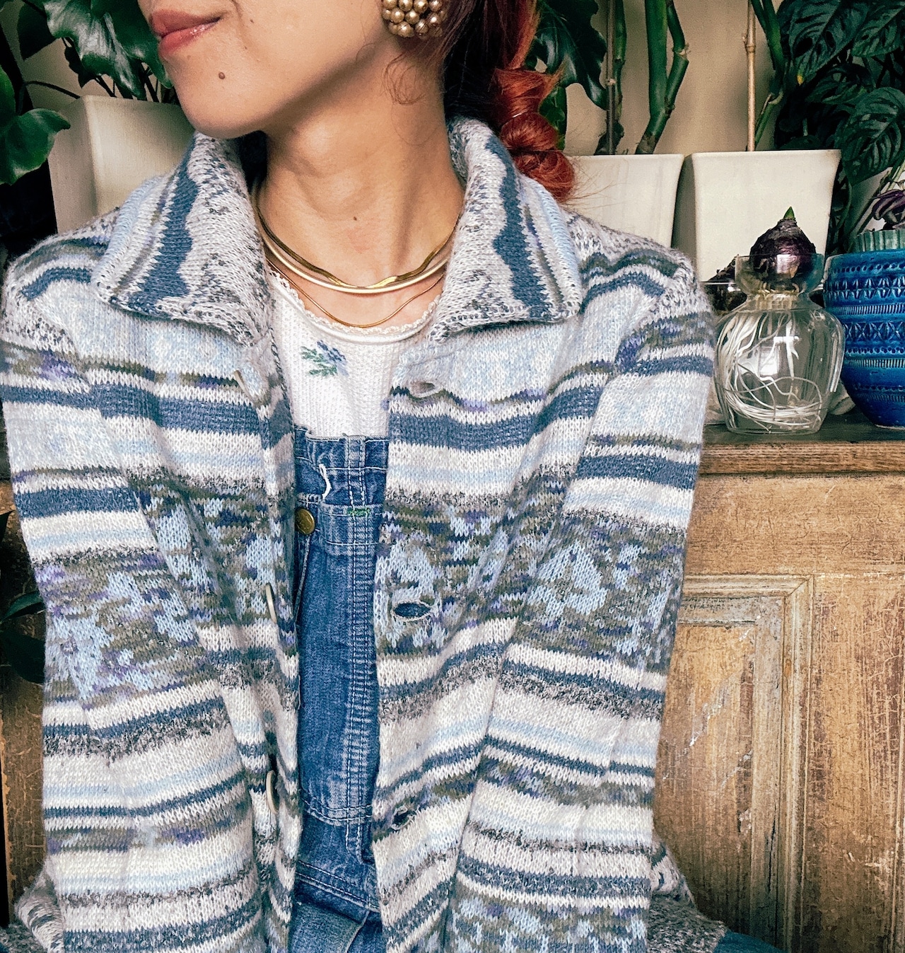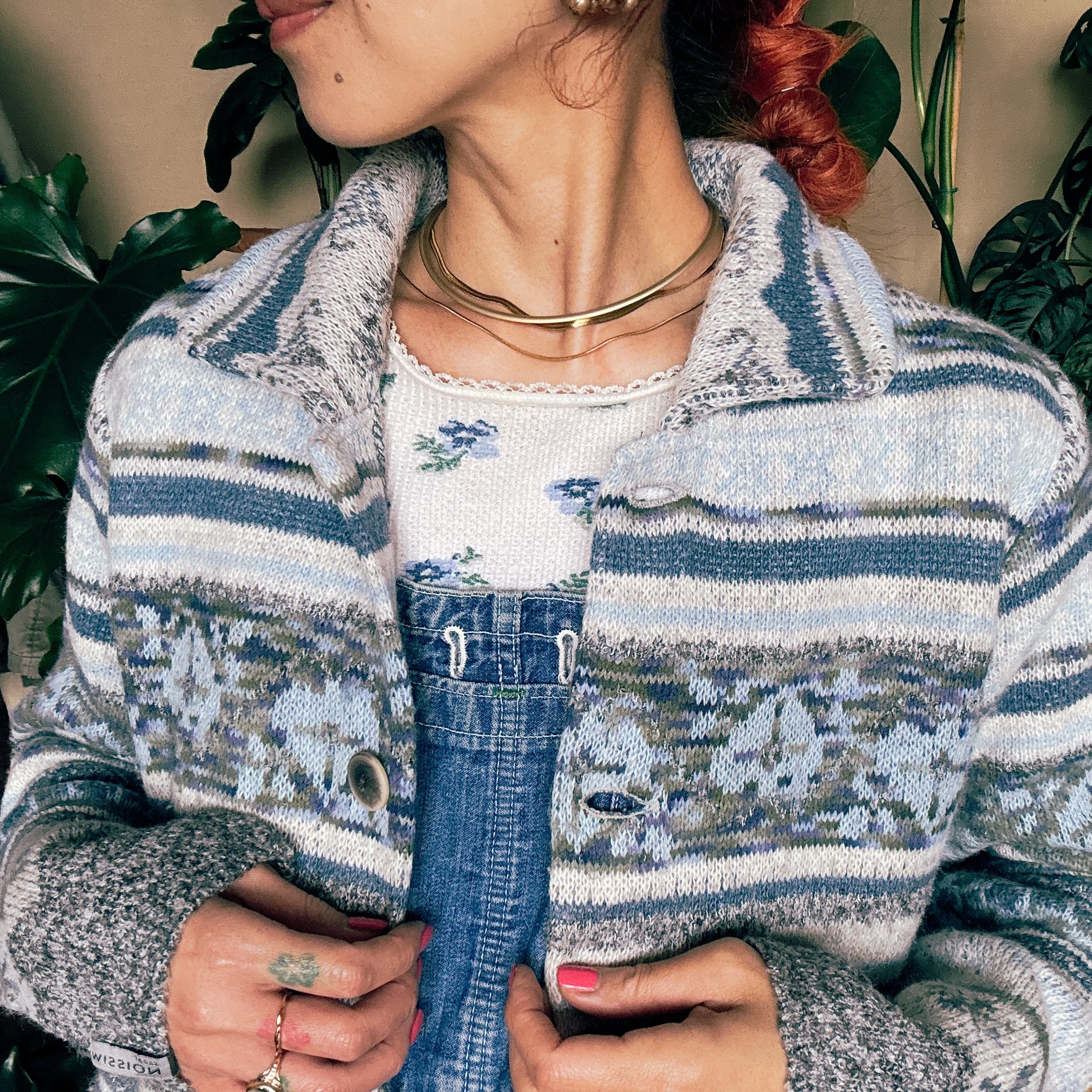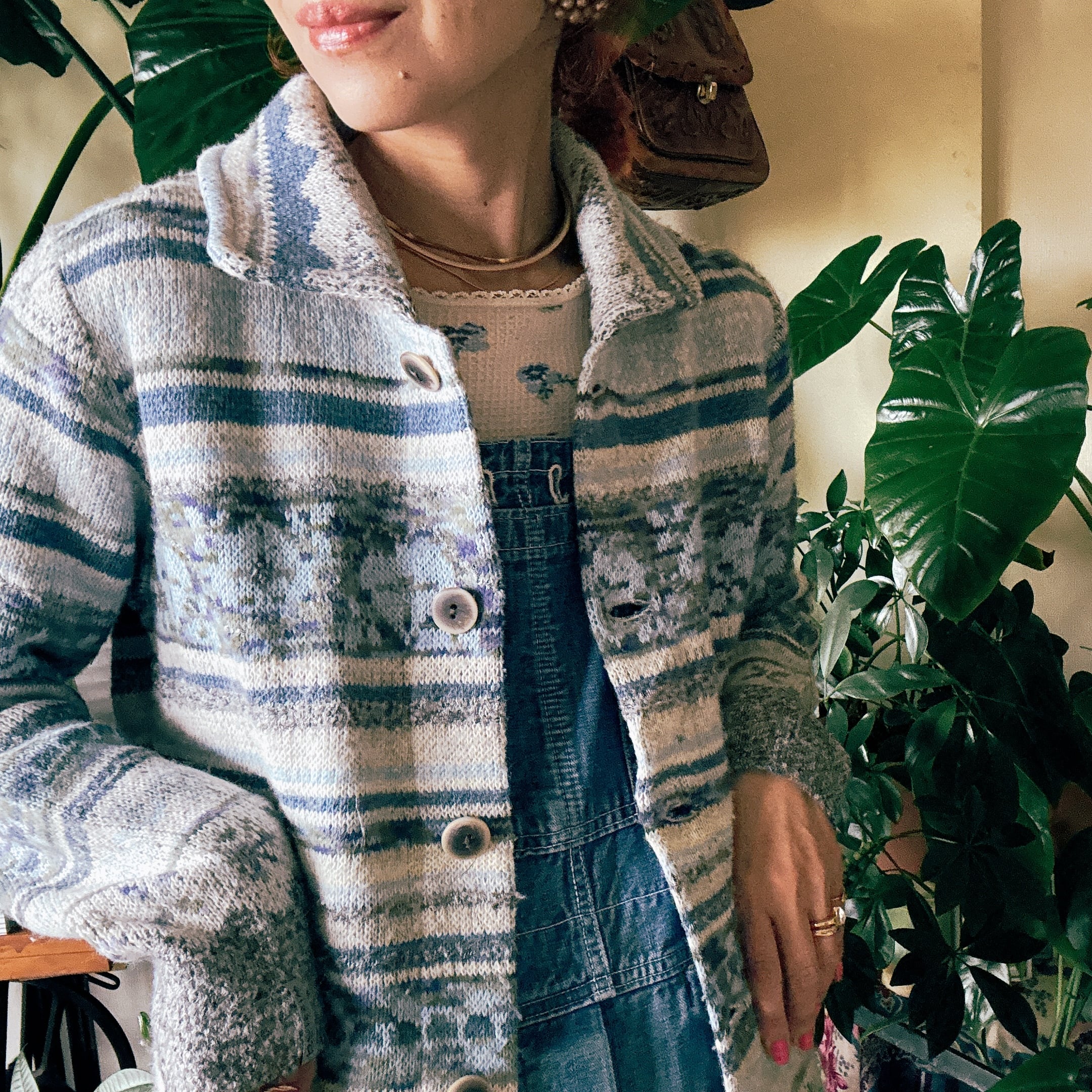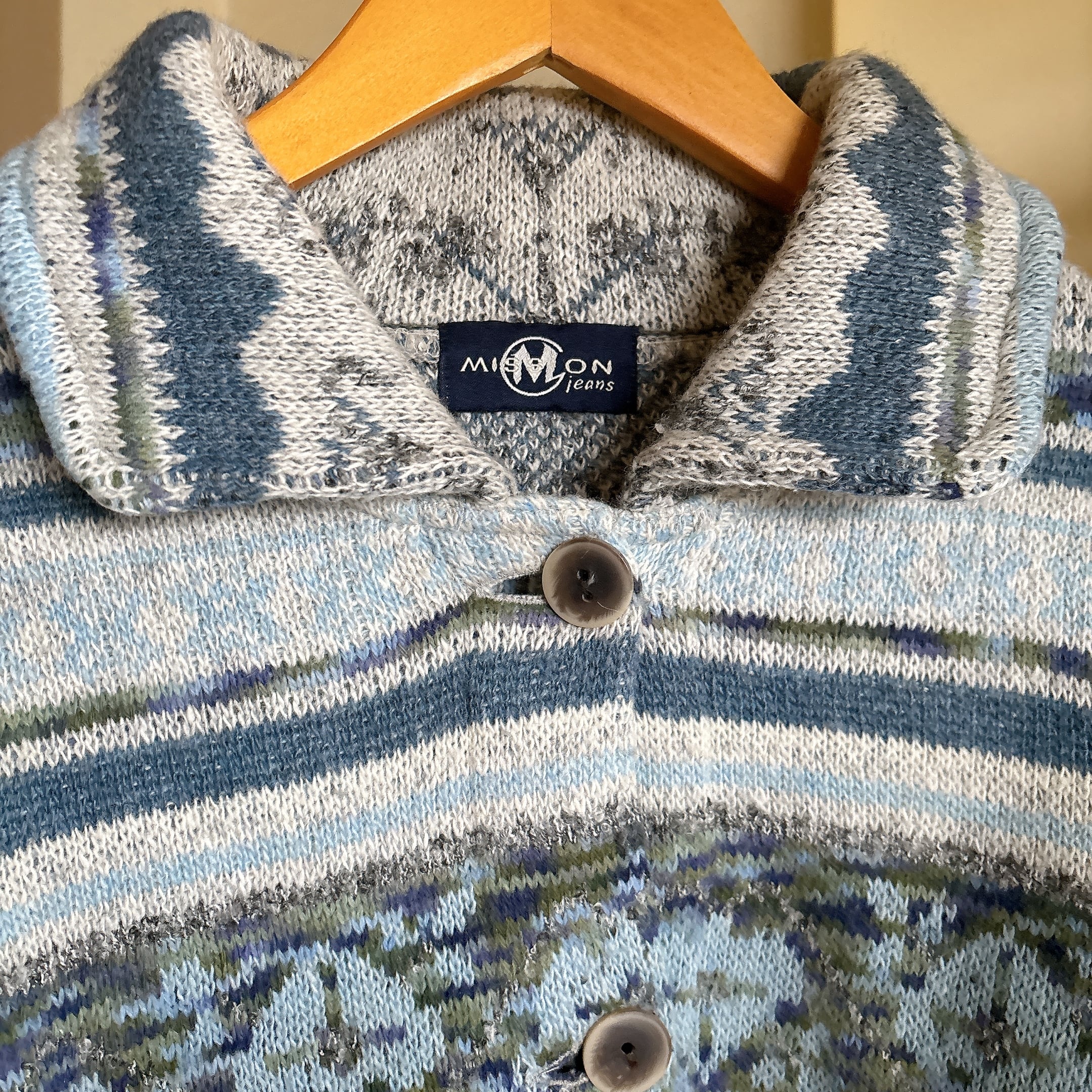 ◾️サウスウエスタン調の柄が印象的な、ヴィンテージライクなニットジャケット。