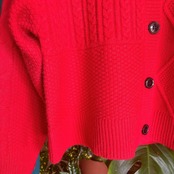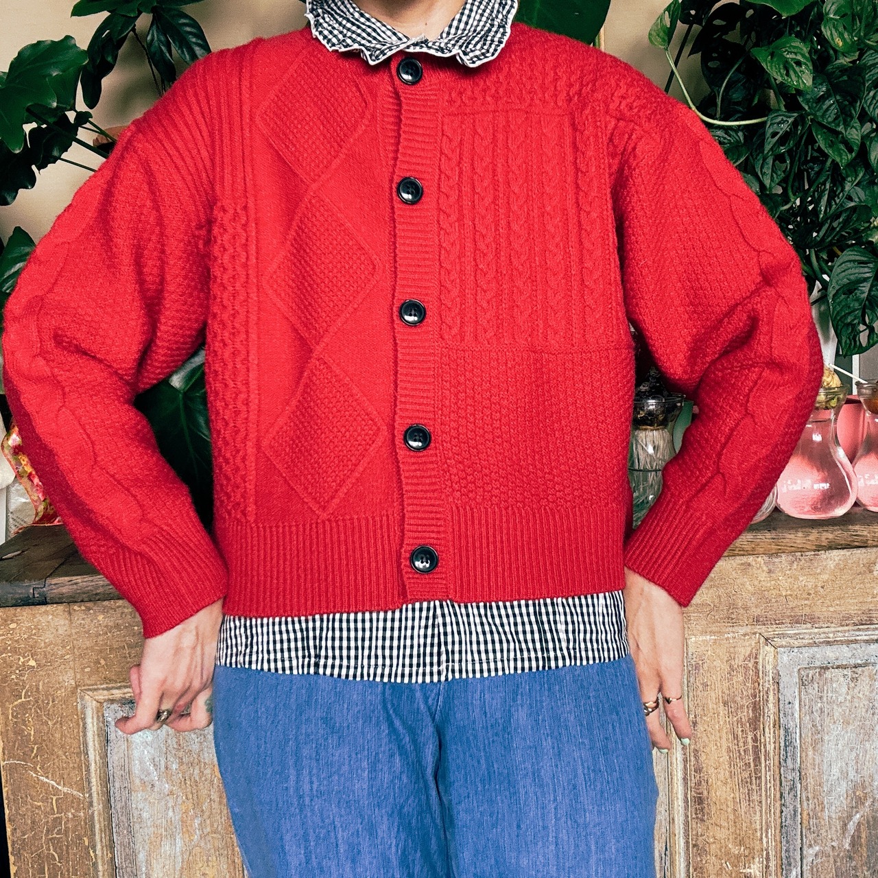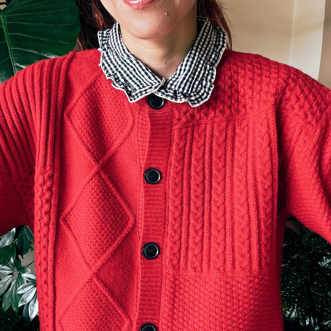 ▪️ケーブルやタック柄がパッチワーク状に入った、一枚できまるカーディガン。