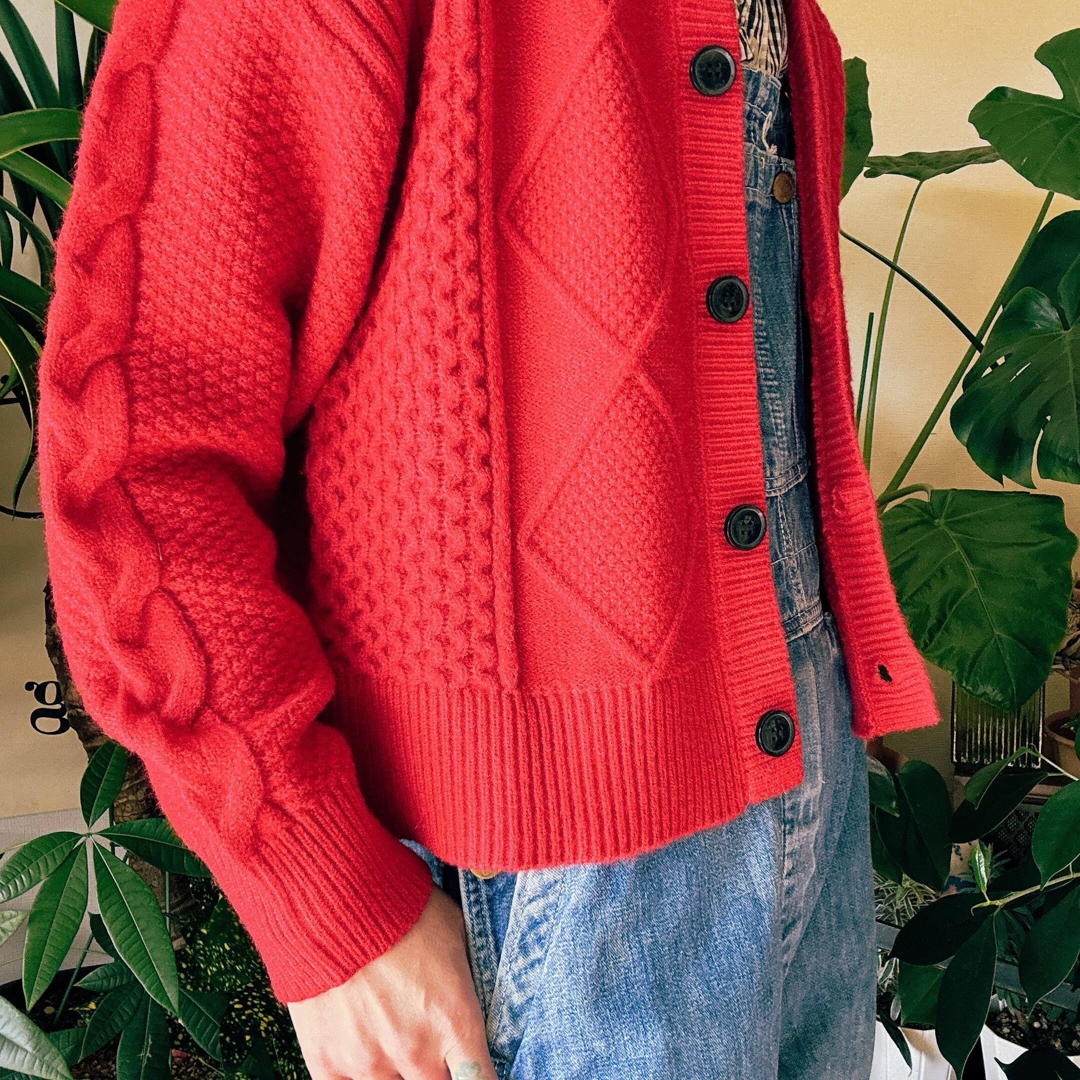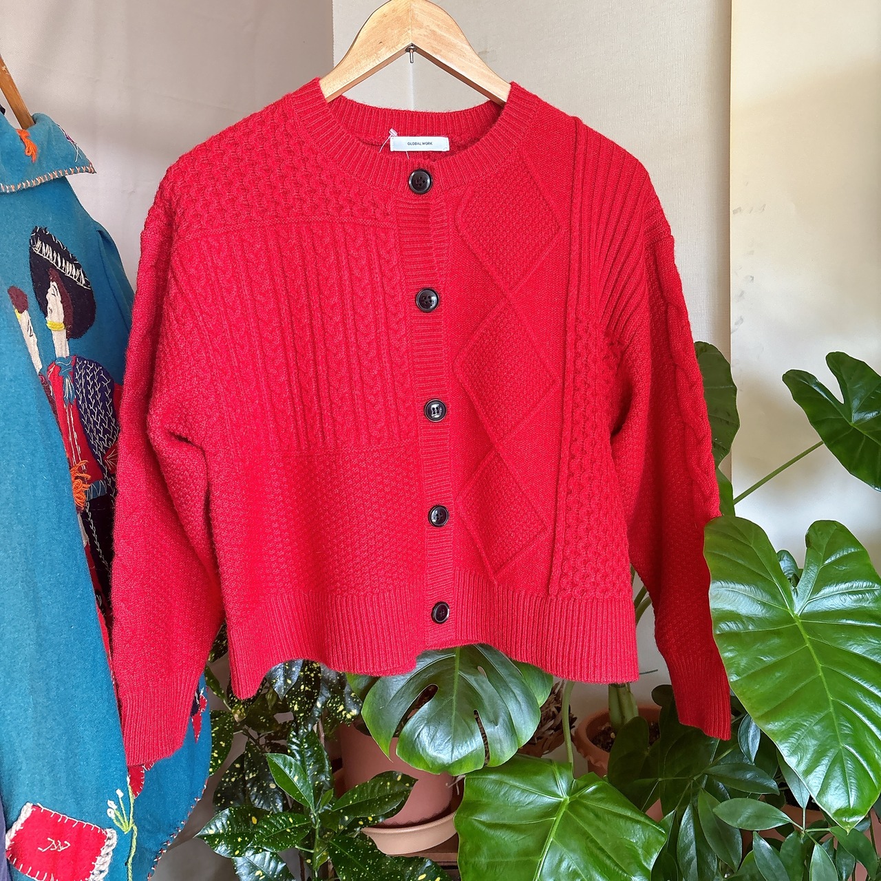 【NEWWITHTAGS】パッチワークモチーフ ケーブルカーディガン