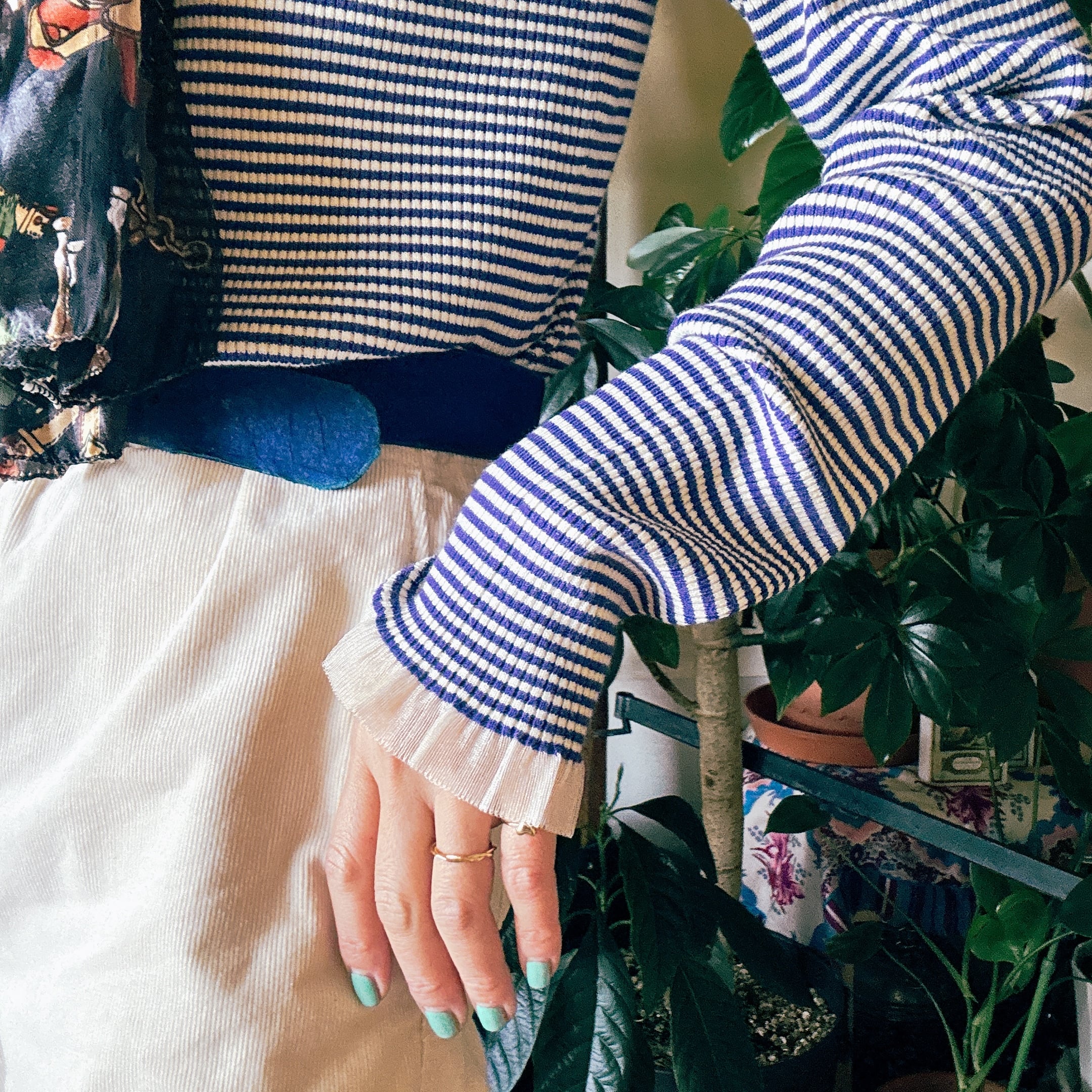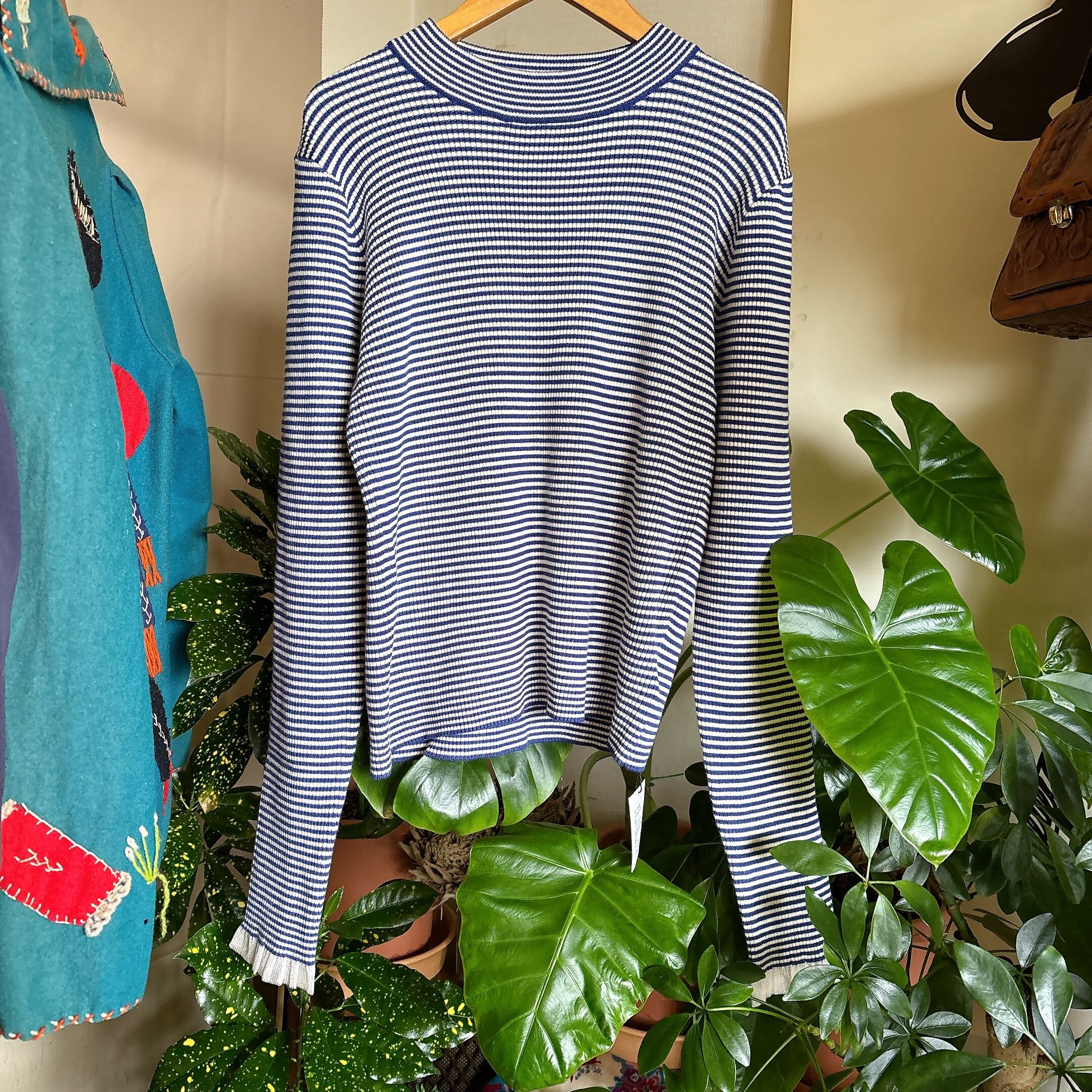 【NEWWITHTAGS】シアーフリルカフス リブニット プルオーバー(青系)