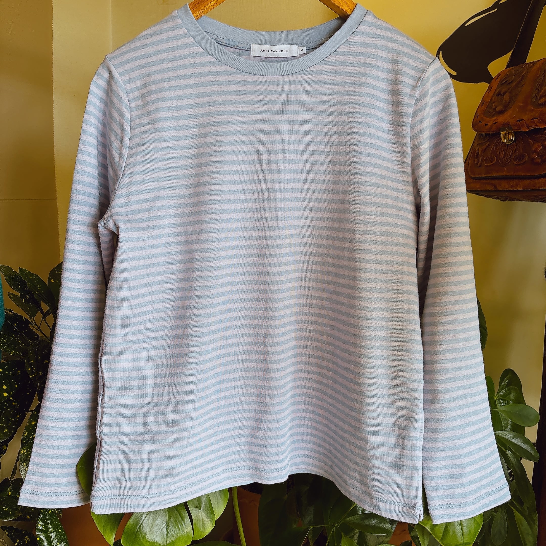 【NEWWITHTAGS】ボーダー クルーネック ロング カットソー【ブルー系】
