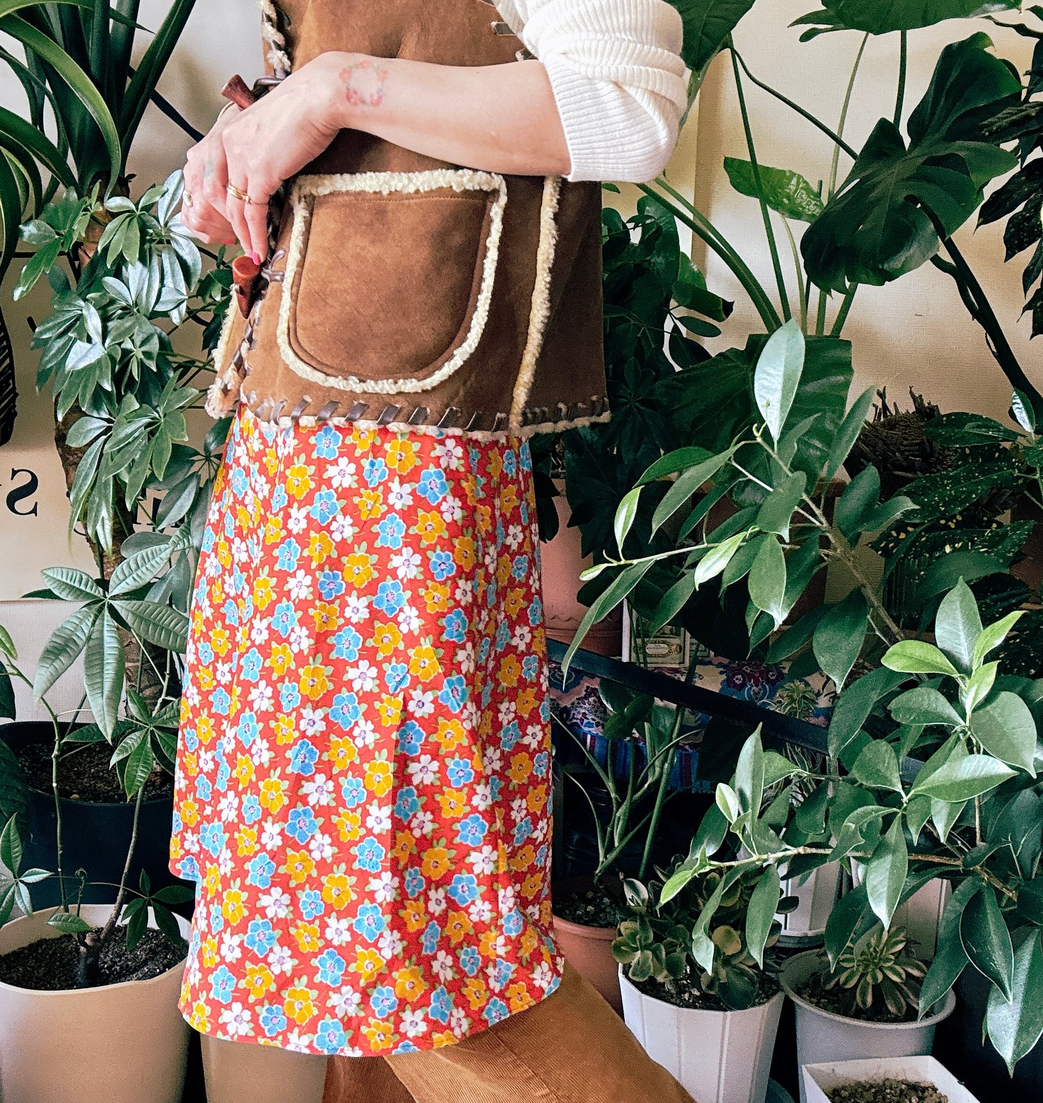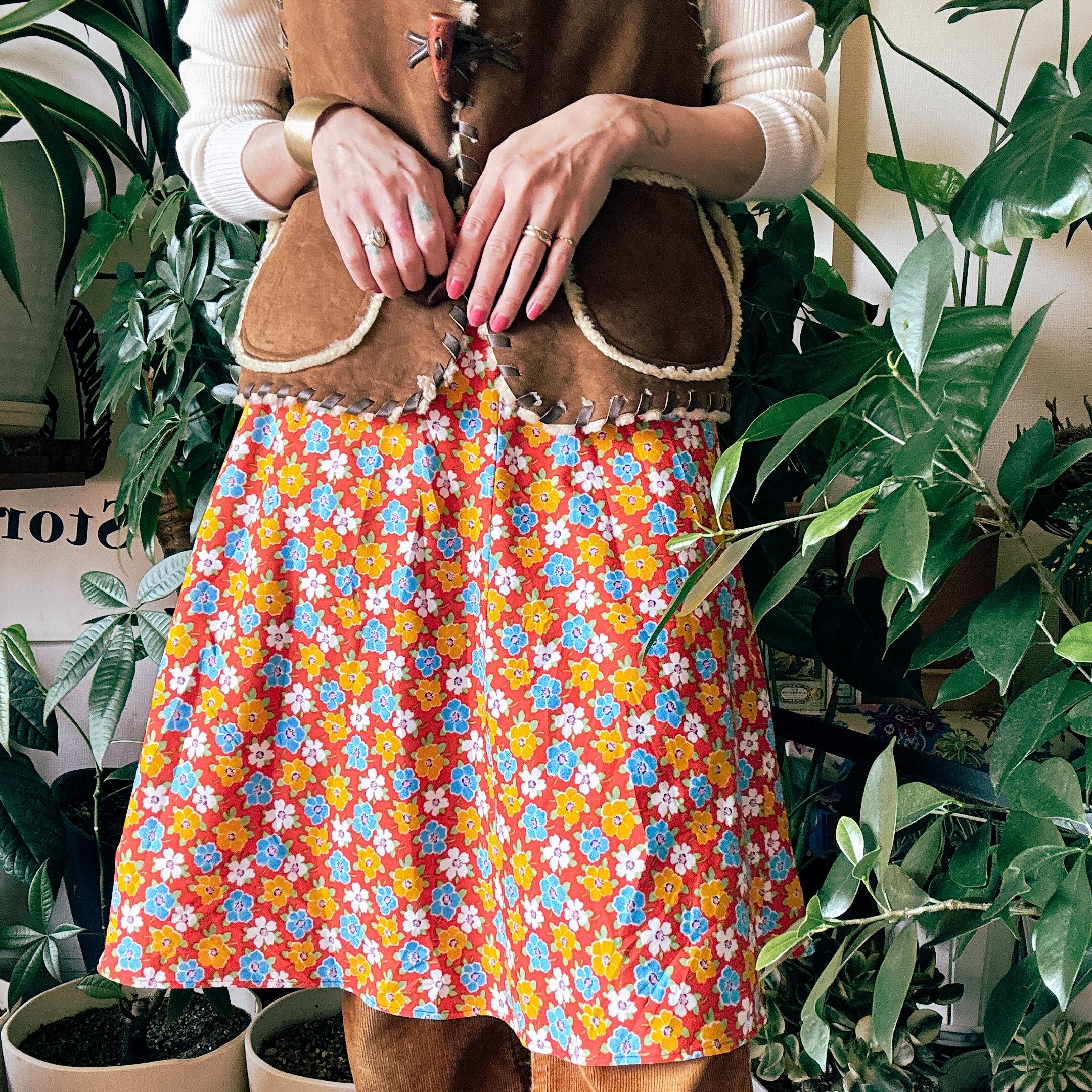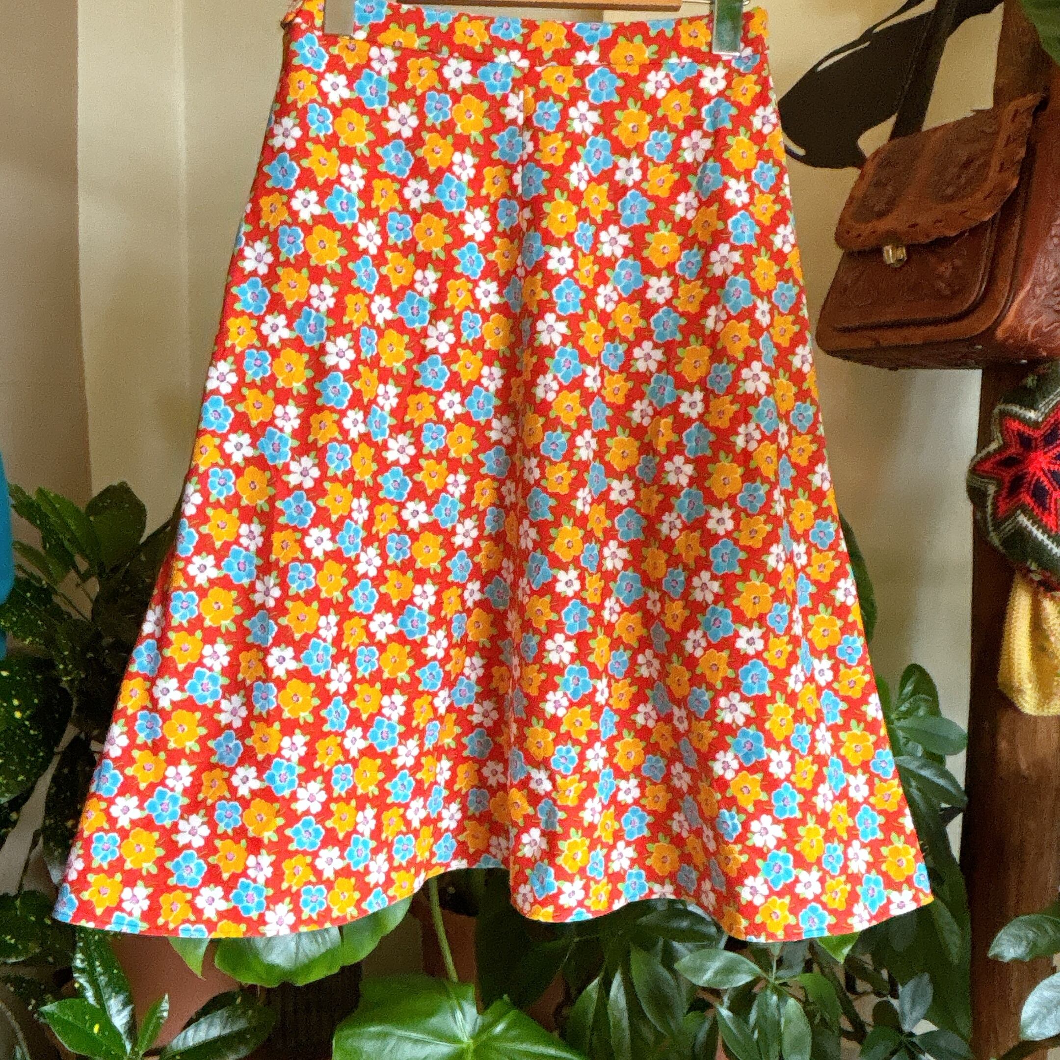 70s 80s ミドル丈 花柄 フレア Aライン スカート