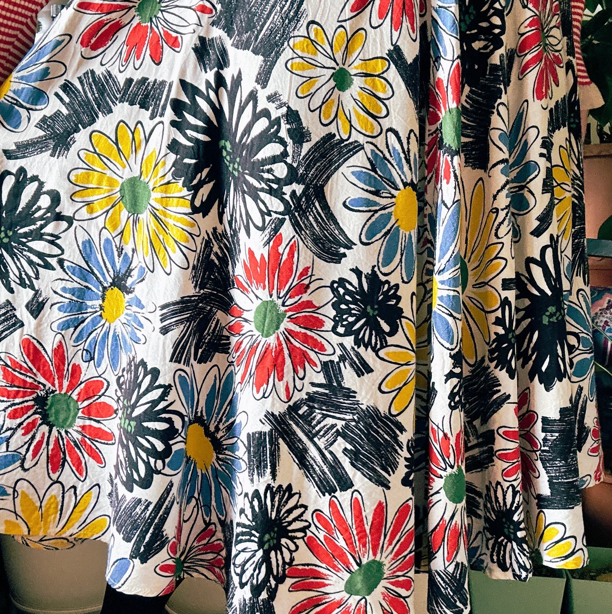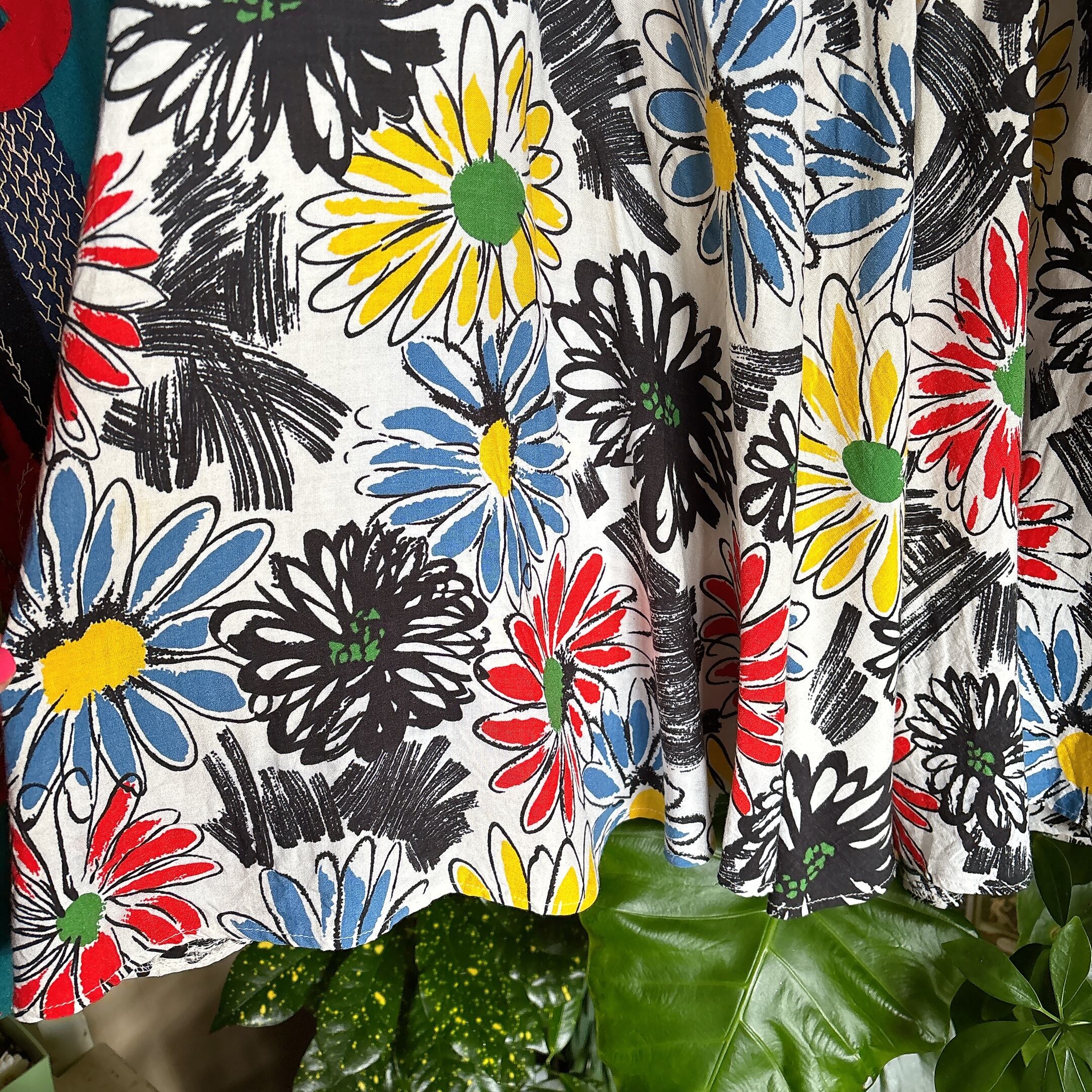 アート感あふれるレトロフレアスカート。