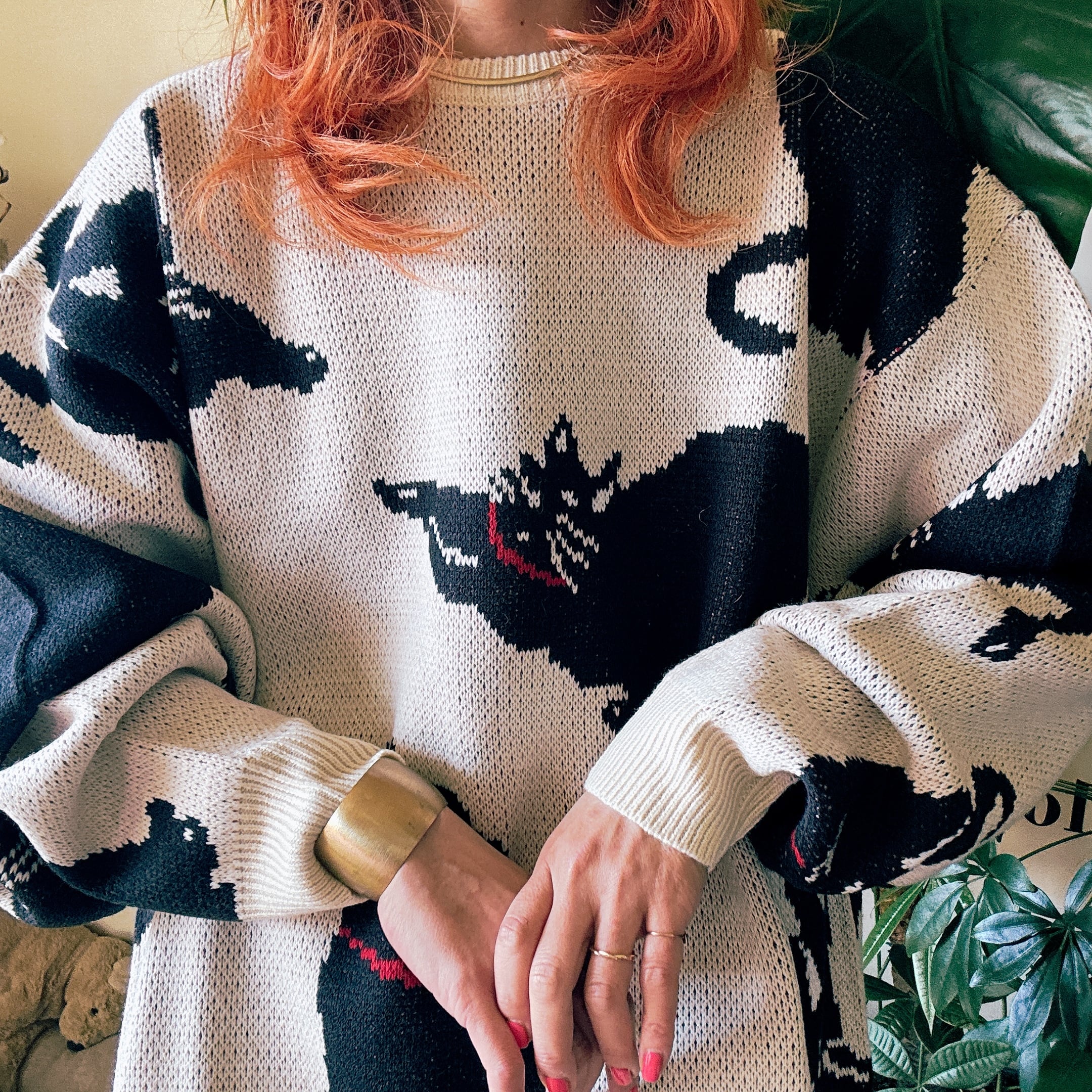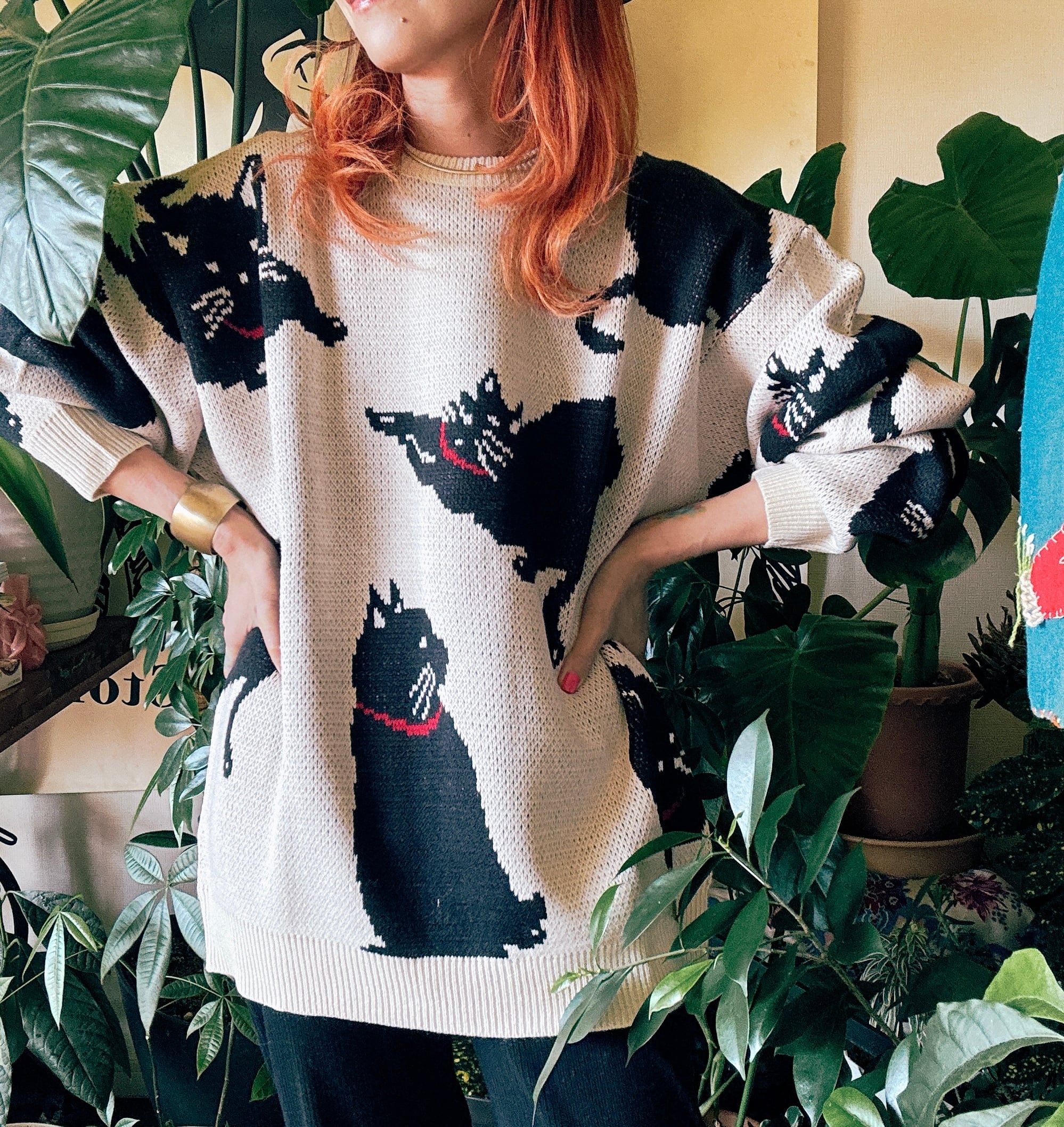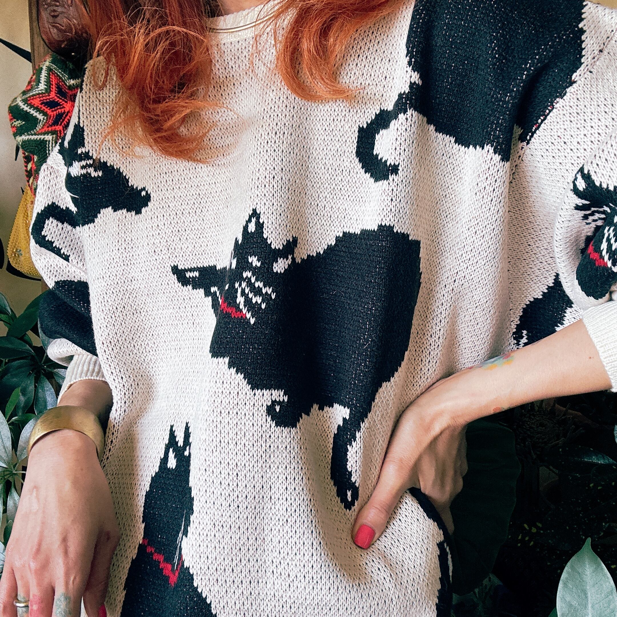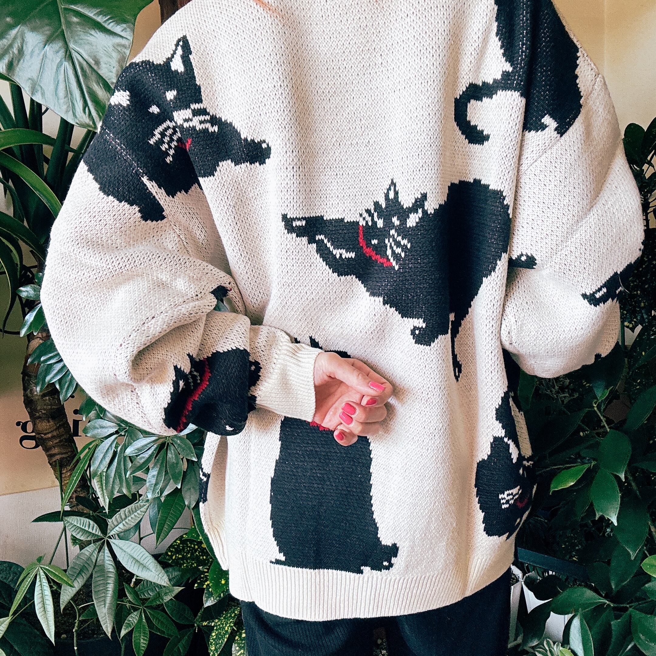 【NEWWITHTAGS】アニマルパターン 総柄 ジャガード プルオーバー ルーズニット