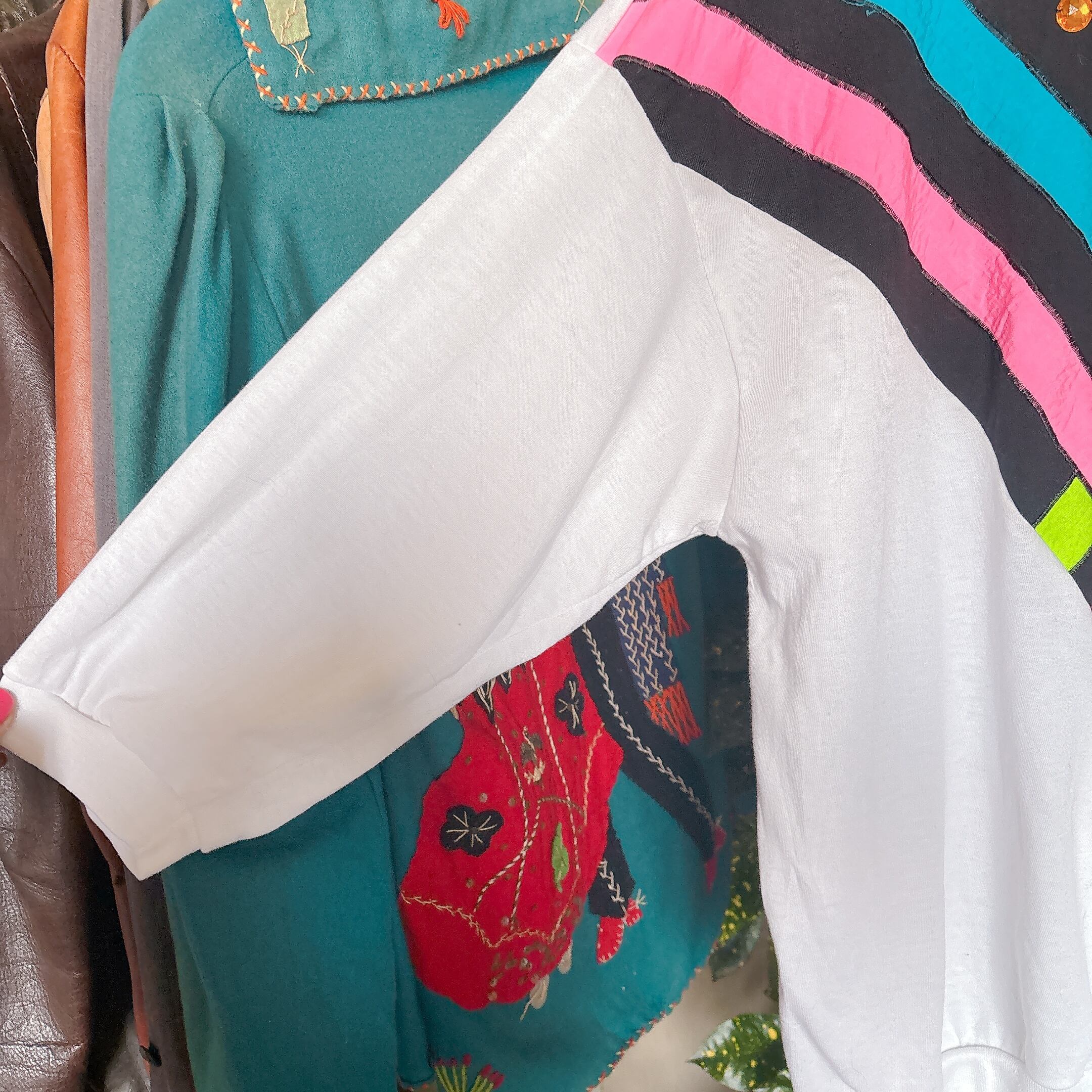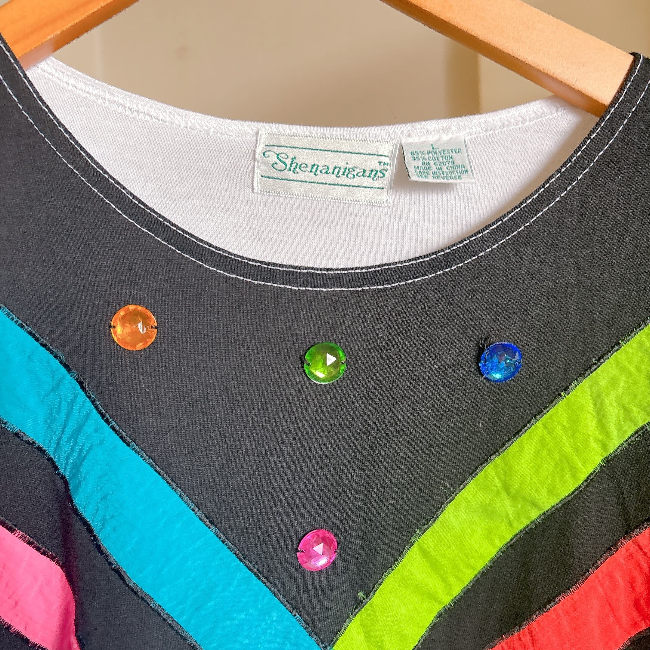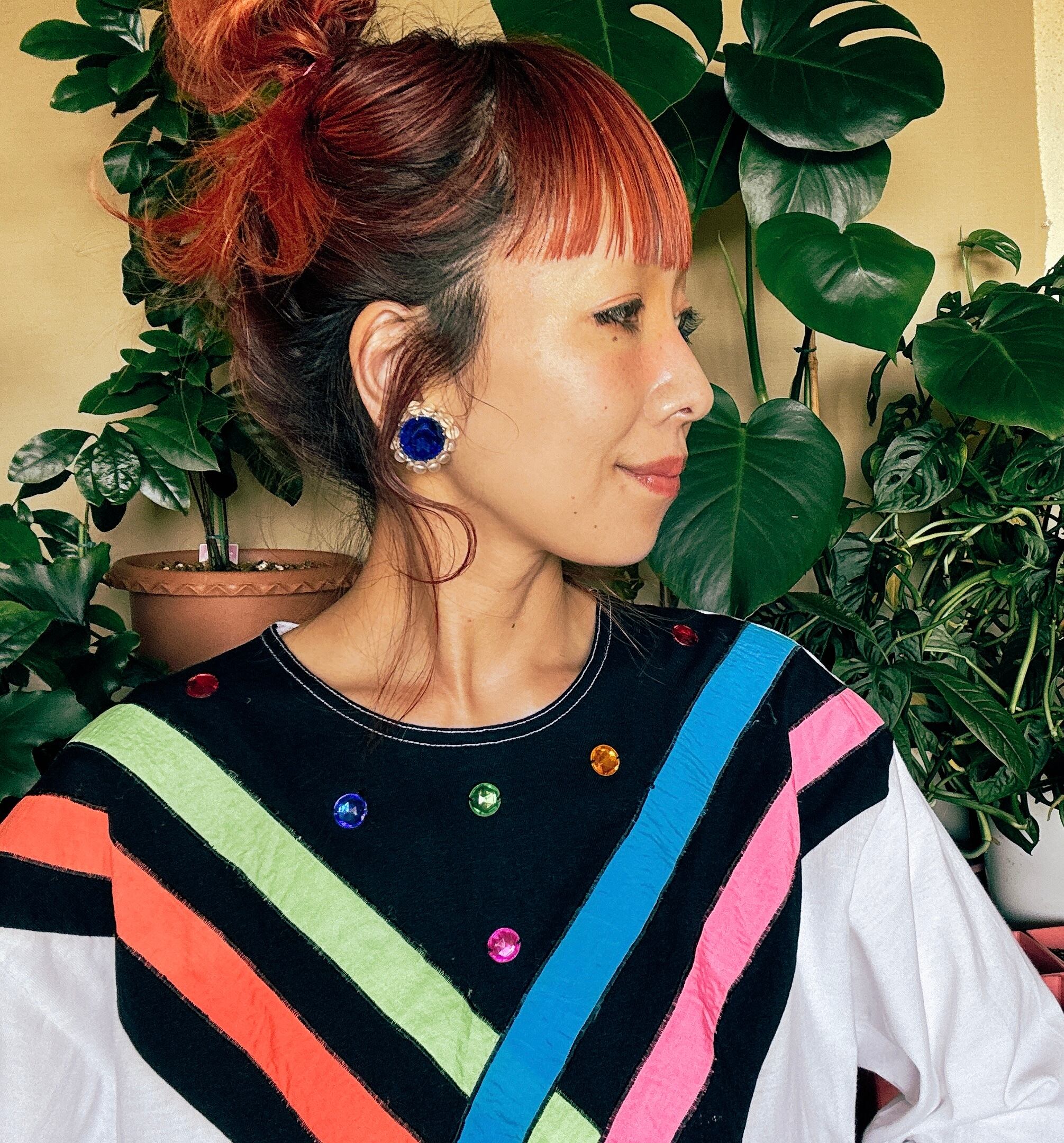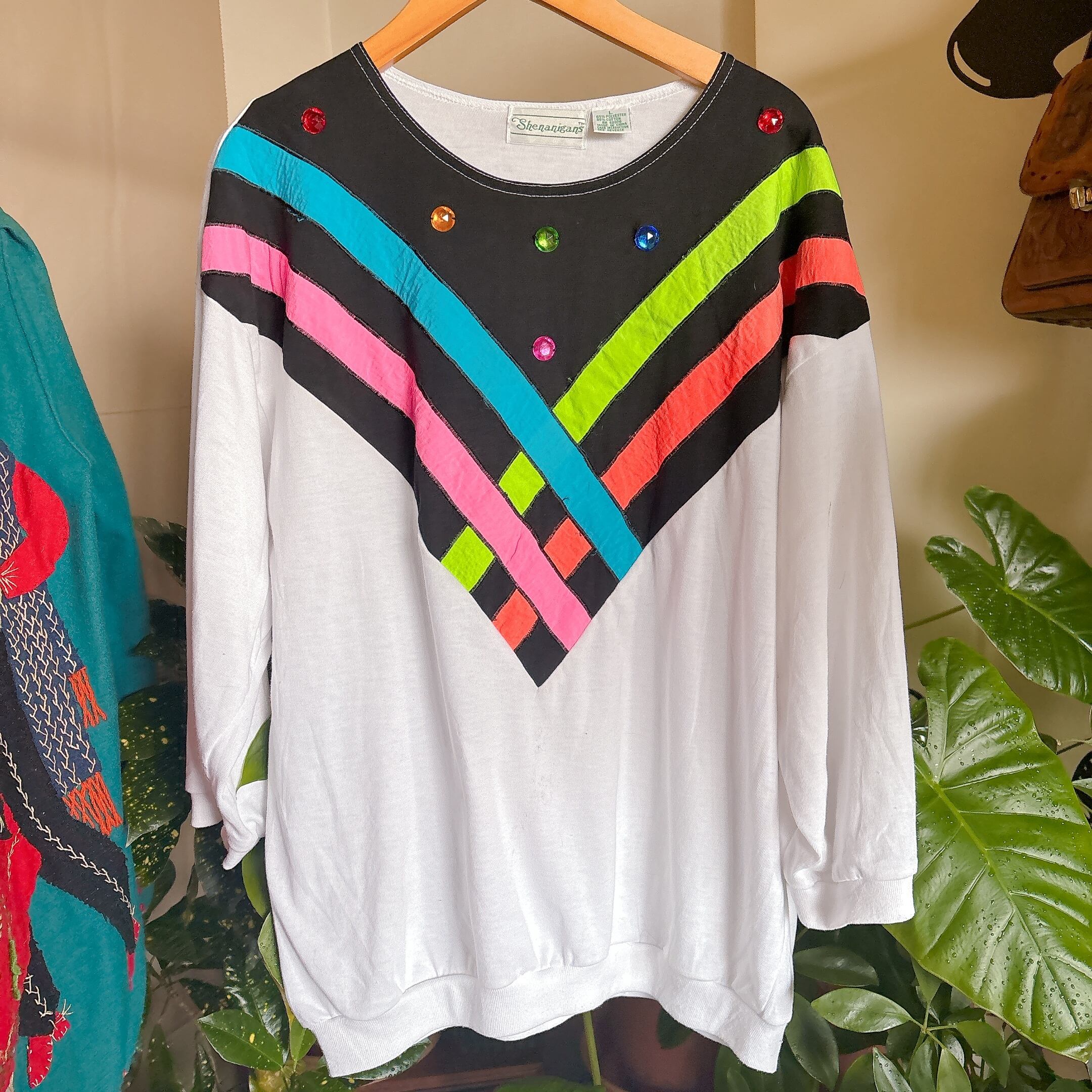 80s カラーストライプ ビジュー デザイン スウェット