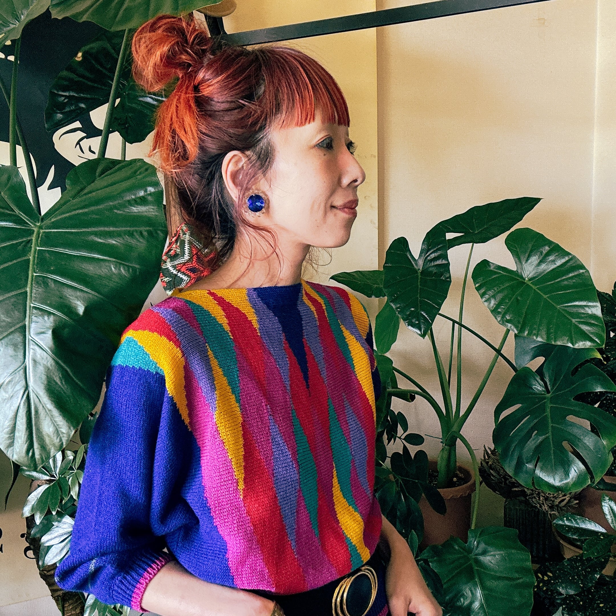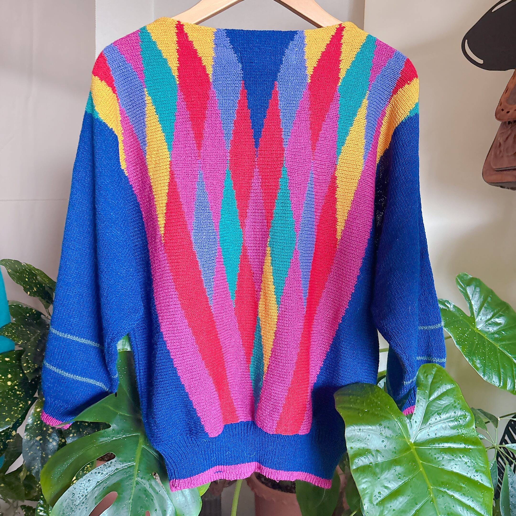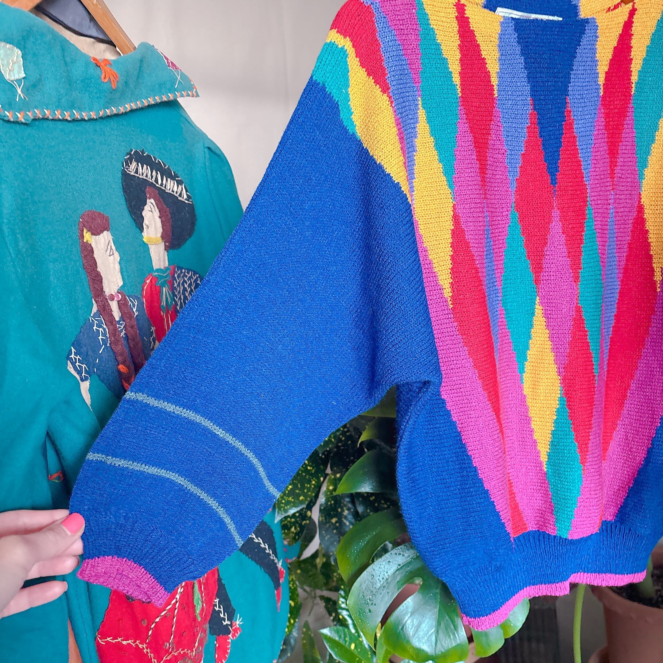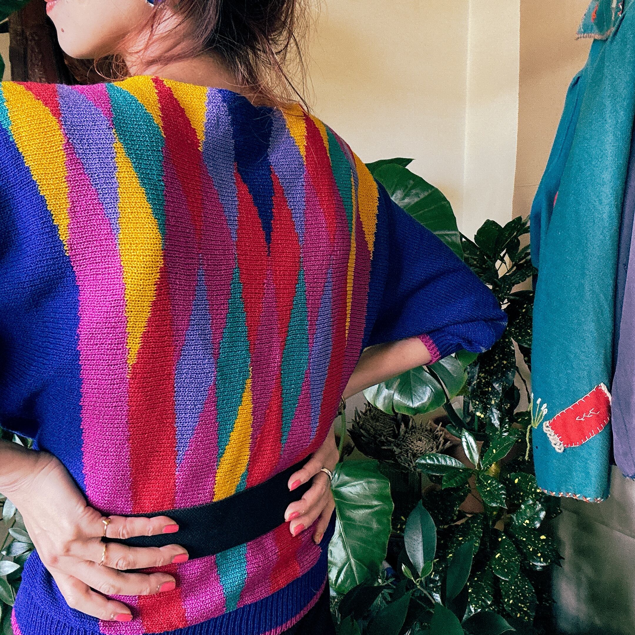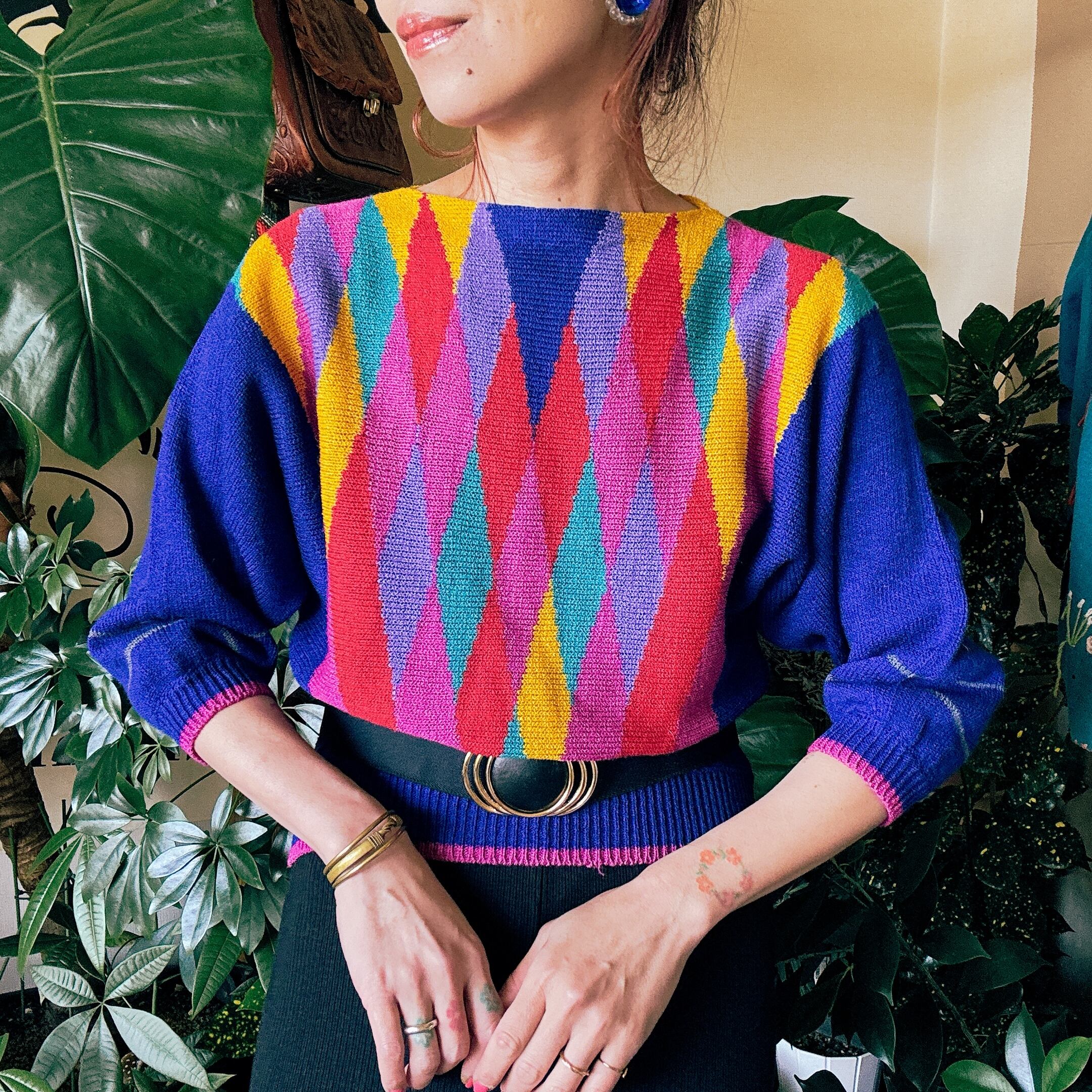 70s 80s マルチカラー ダイヤパターン デザイン ニット