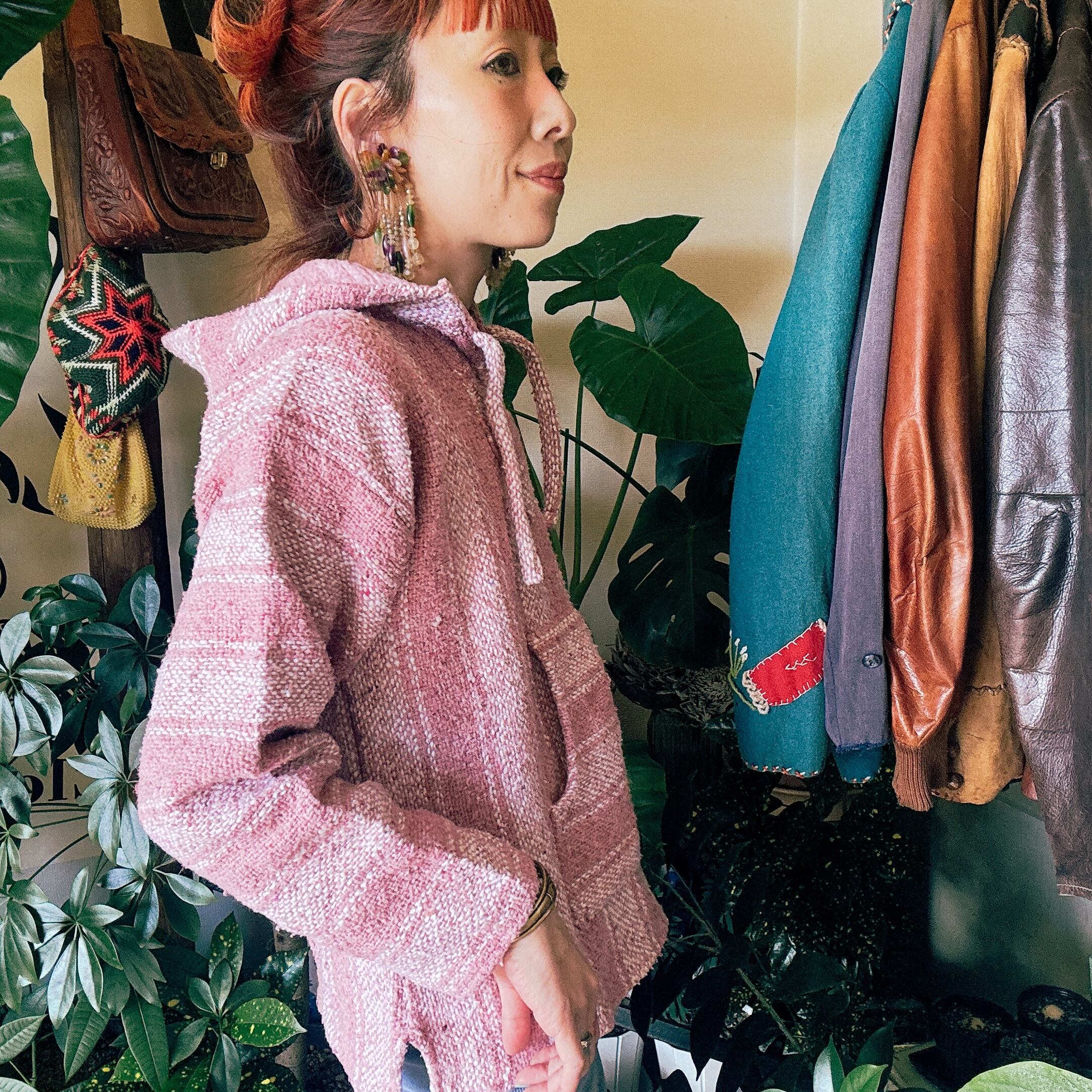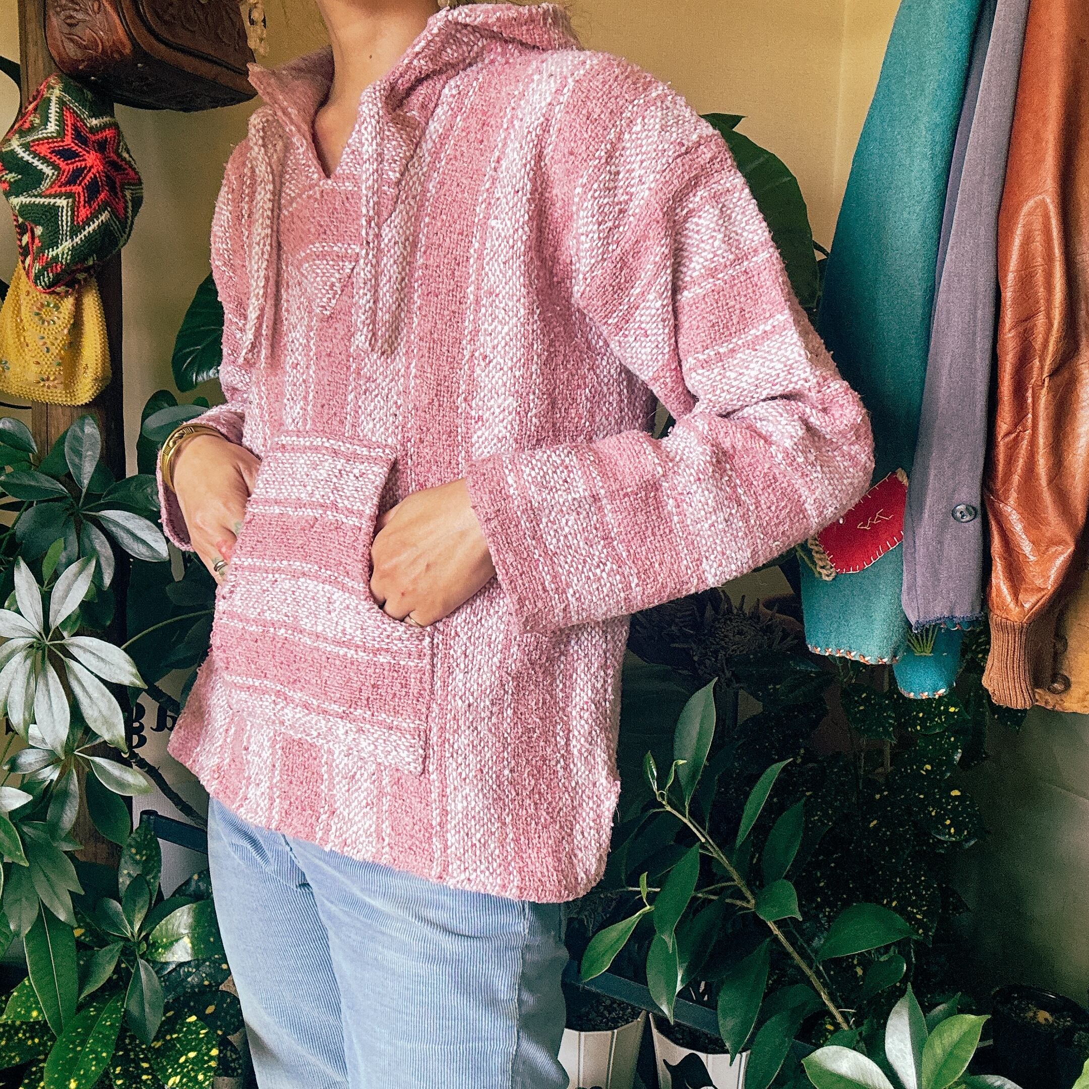 ◾️柔らかなピンクトーンが目を惹く、ビンテージのメキシカンパーカー。