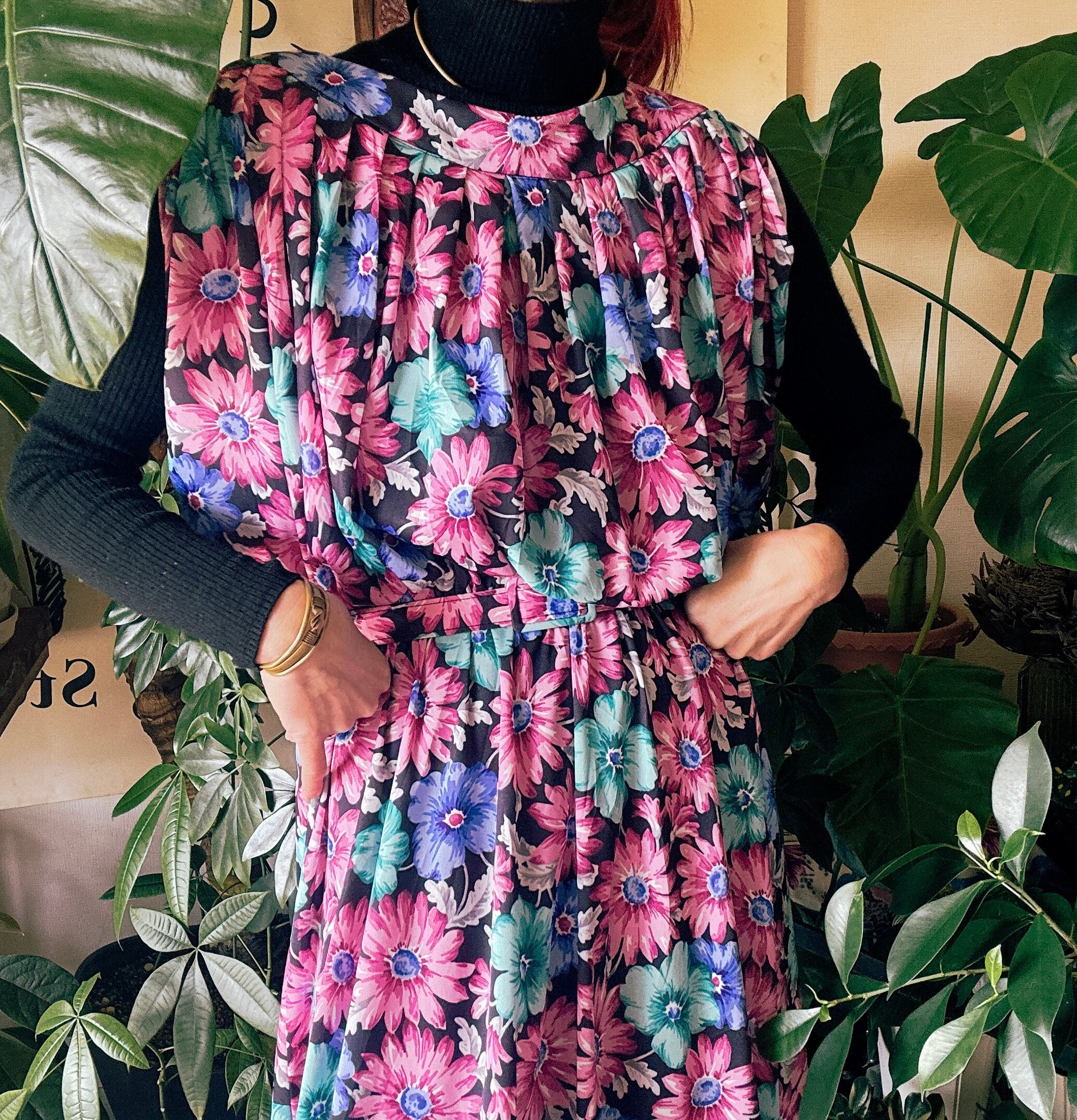 80s C&A 花柄 マキシ丈 ドレス
