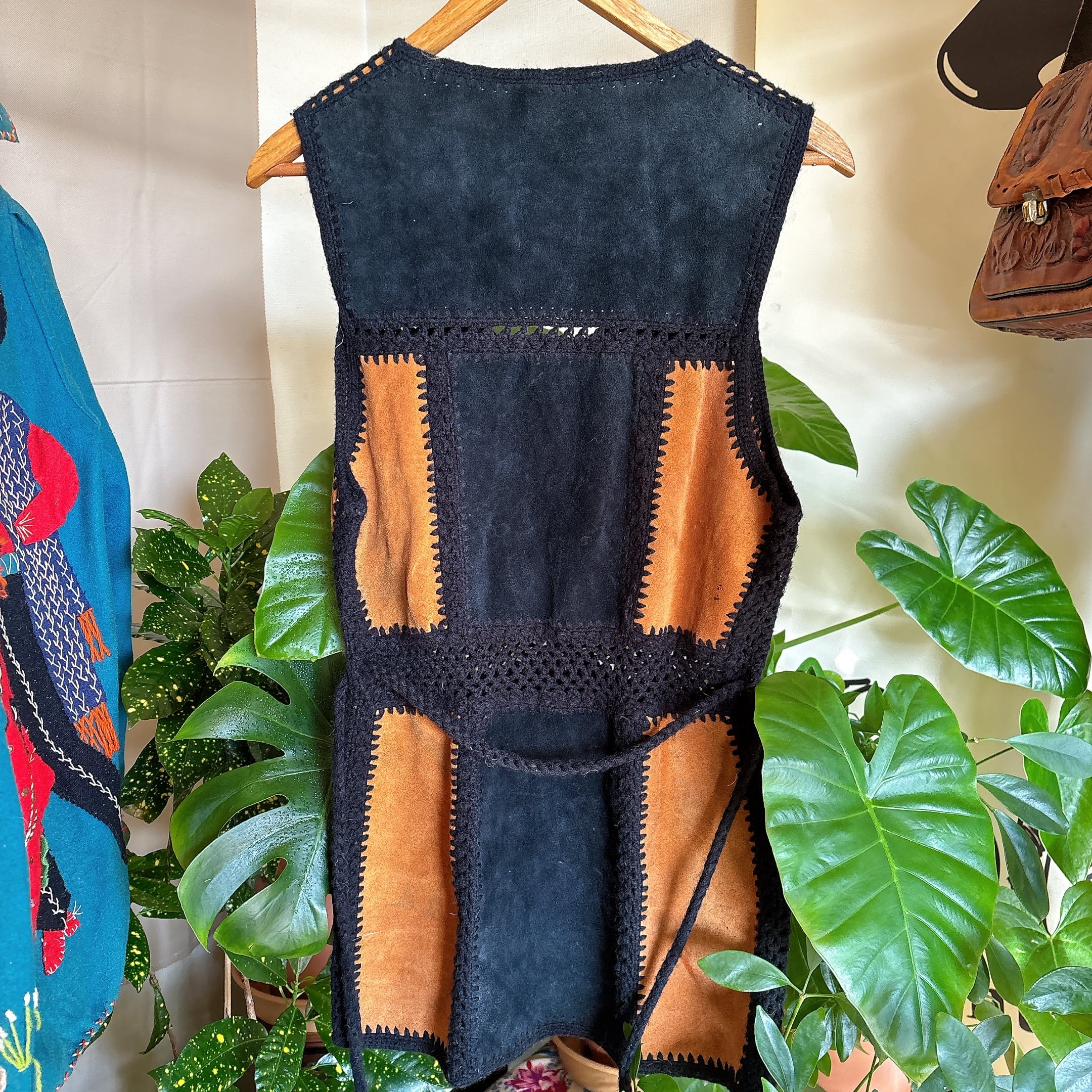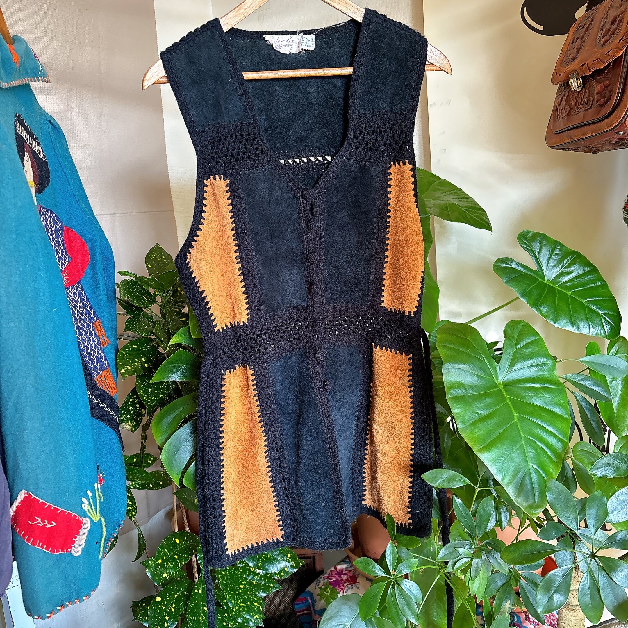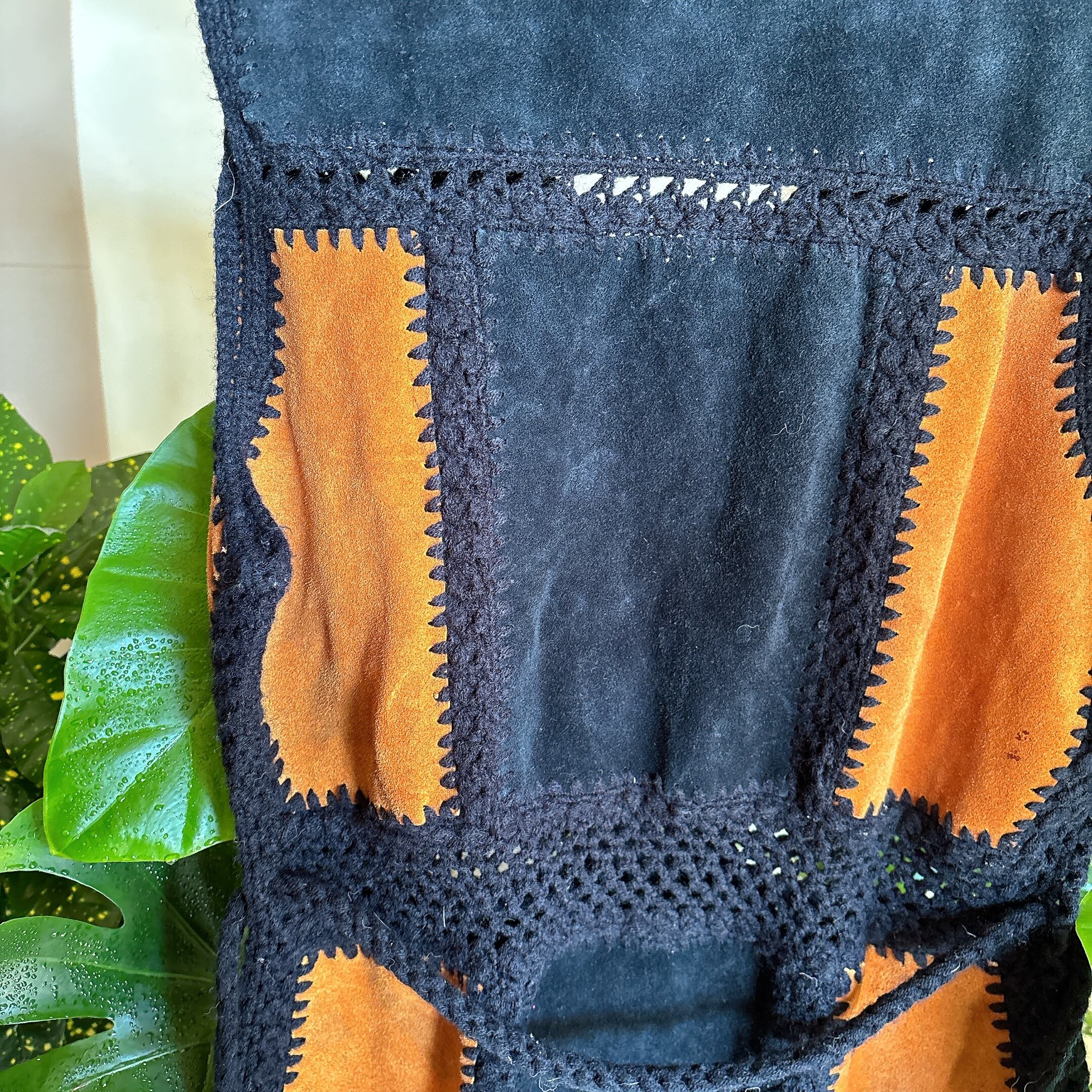 ◾️70s Shana Lee スエード レザー クロシェ切り替え パッチワーク ベスト