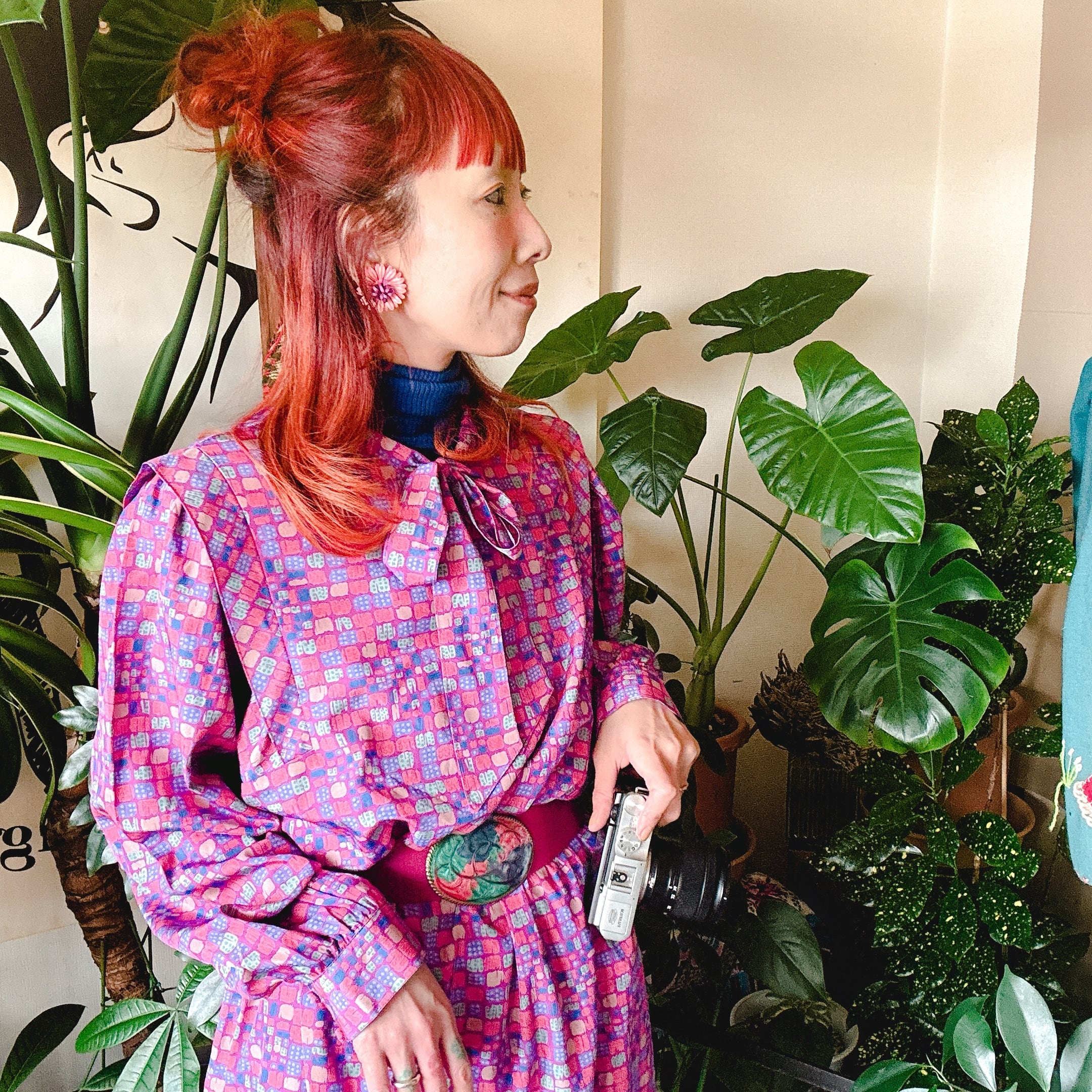 70s特有のロマンティックさとレトロポップな空気感を楽しめる、特別感のあるヴィンテージドレスです。