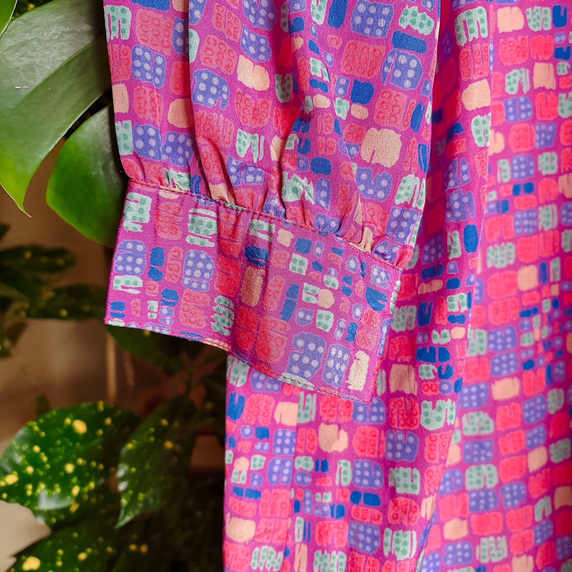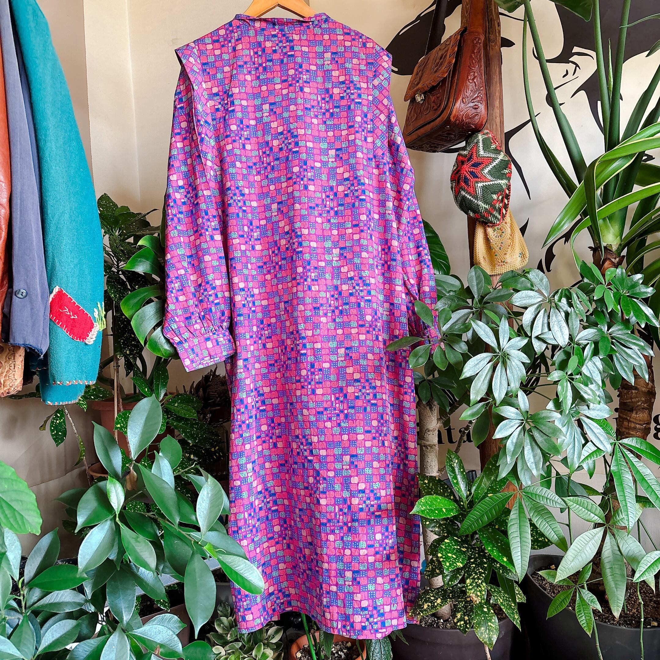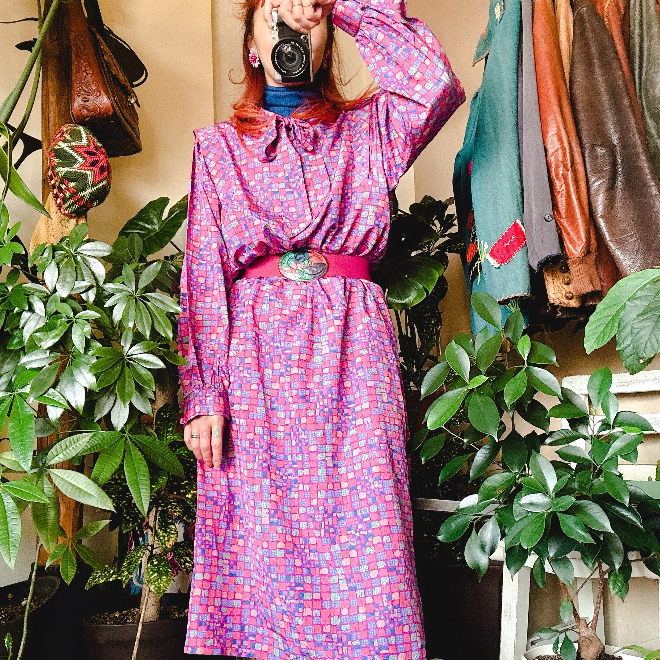 ◾️1970年代らしいムードたっぷりの、ジオメトリック柄ヴィンテージドレス。