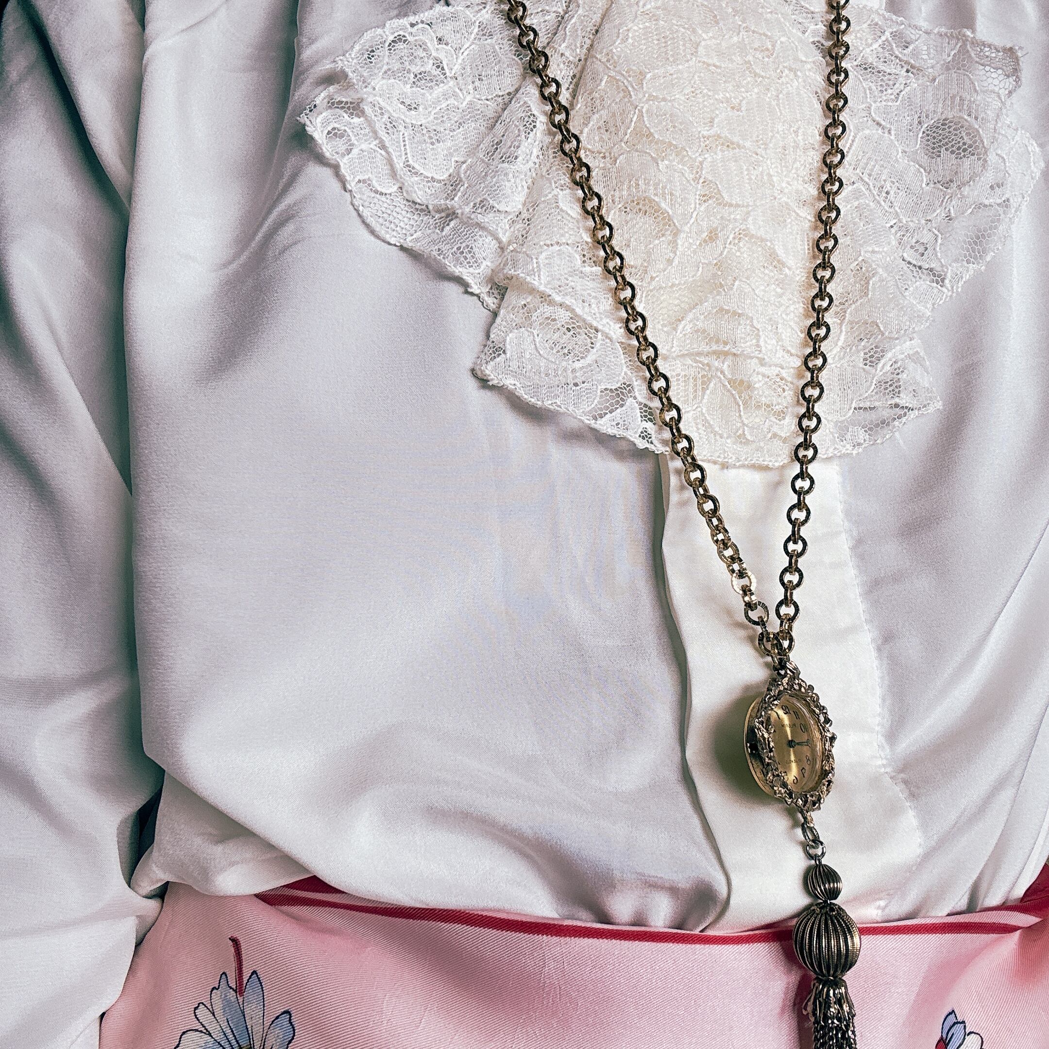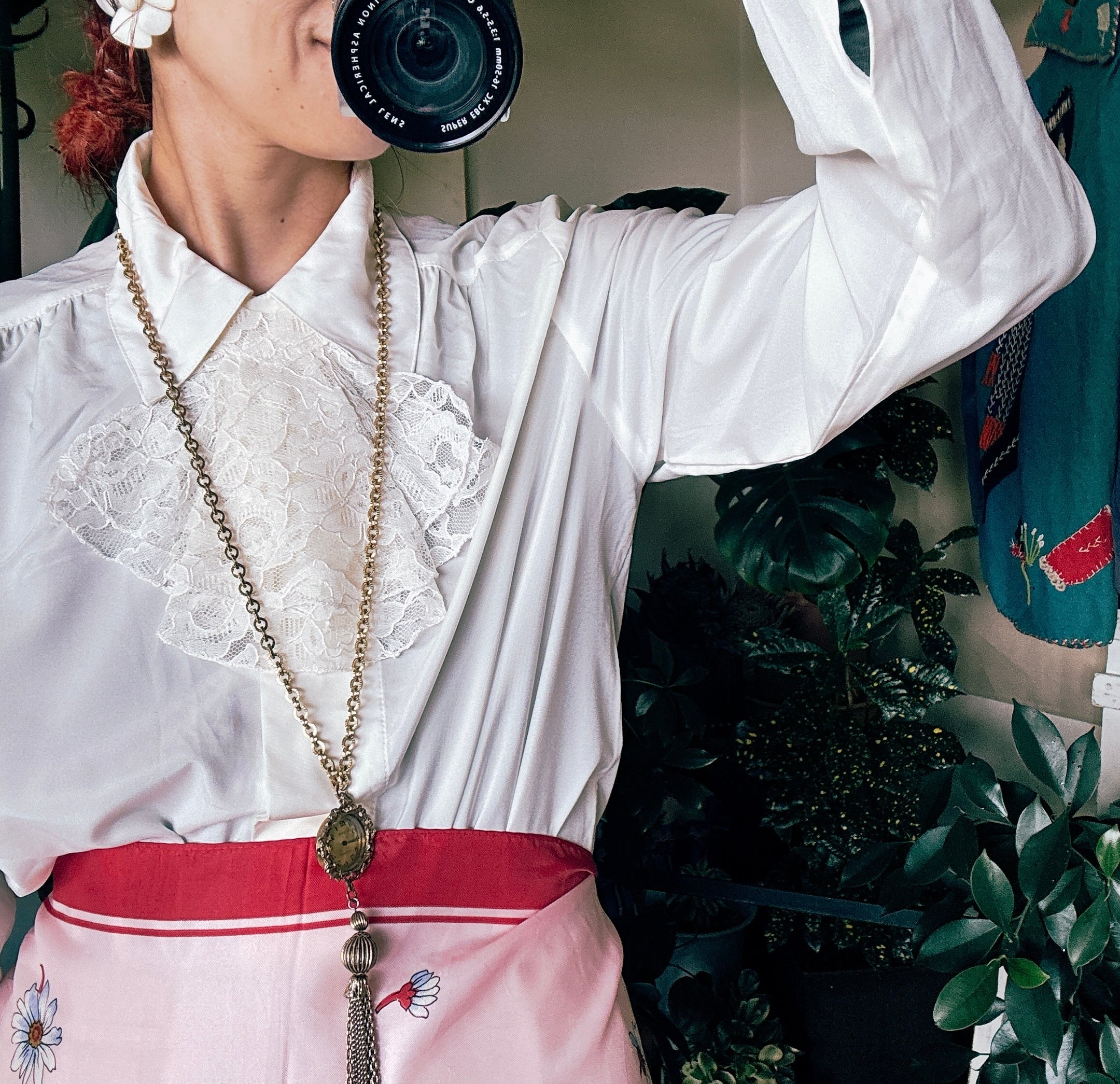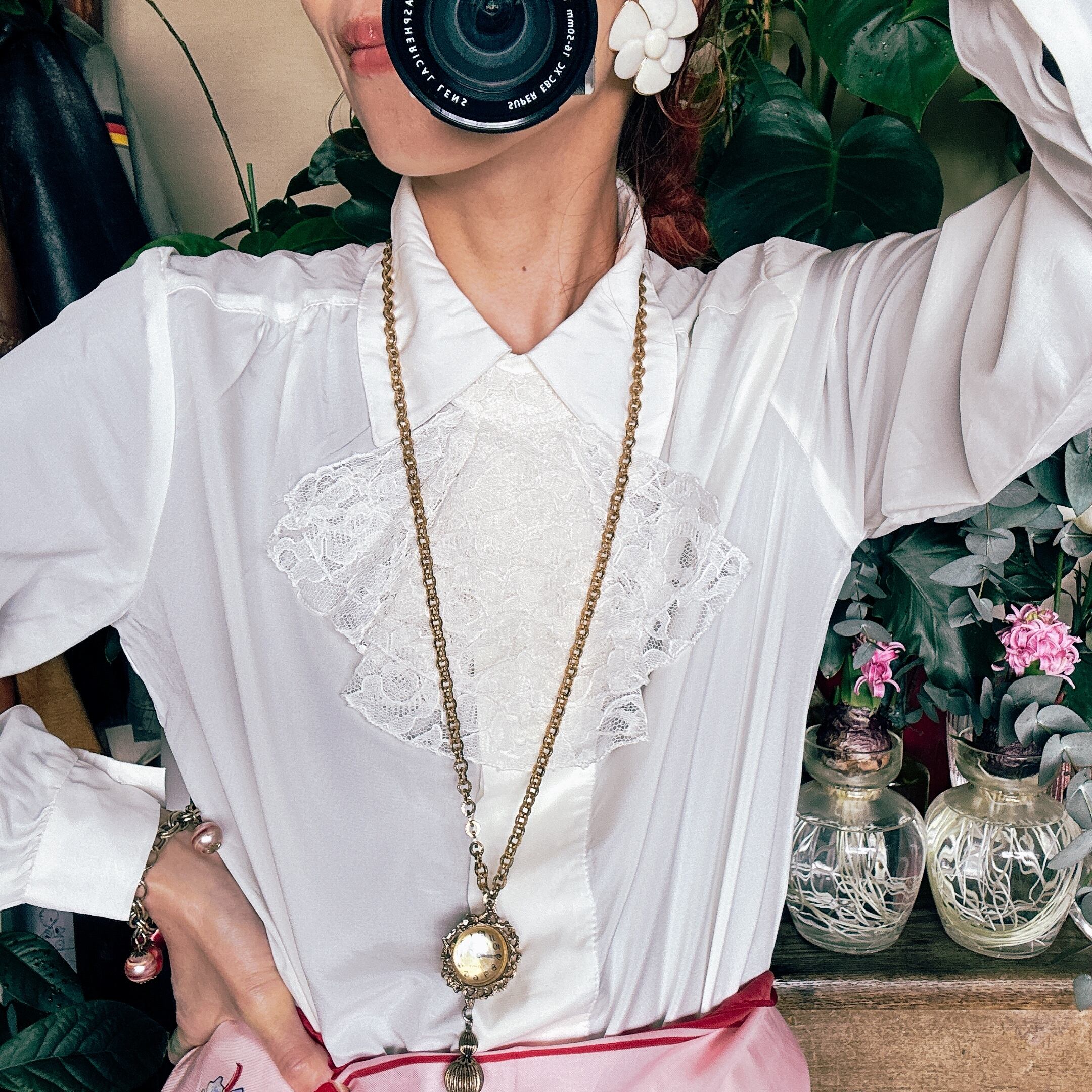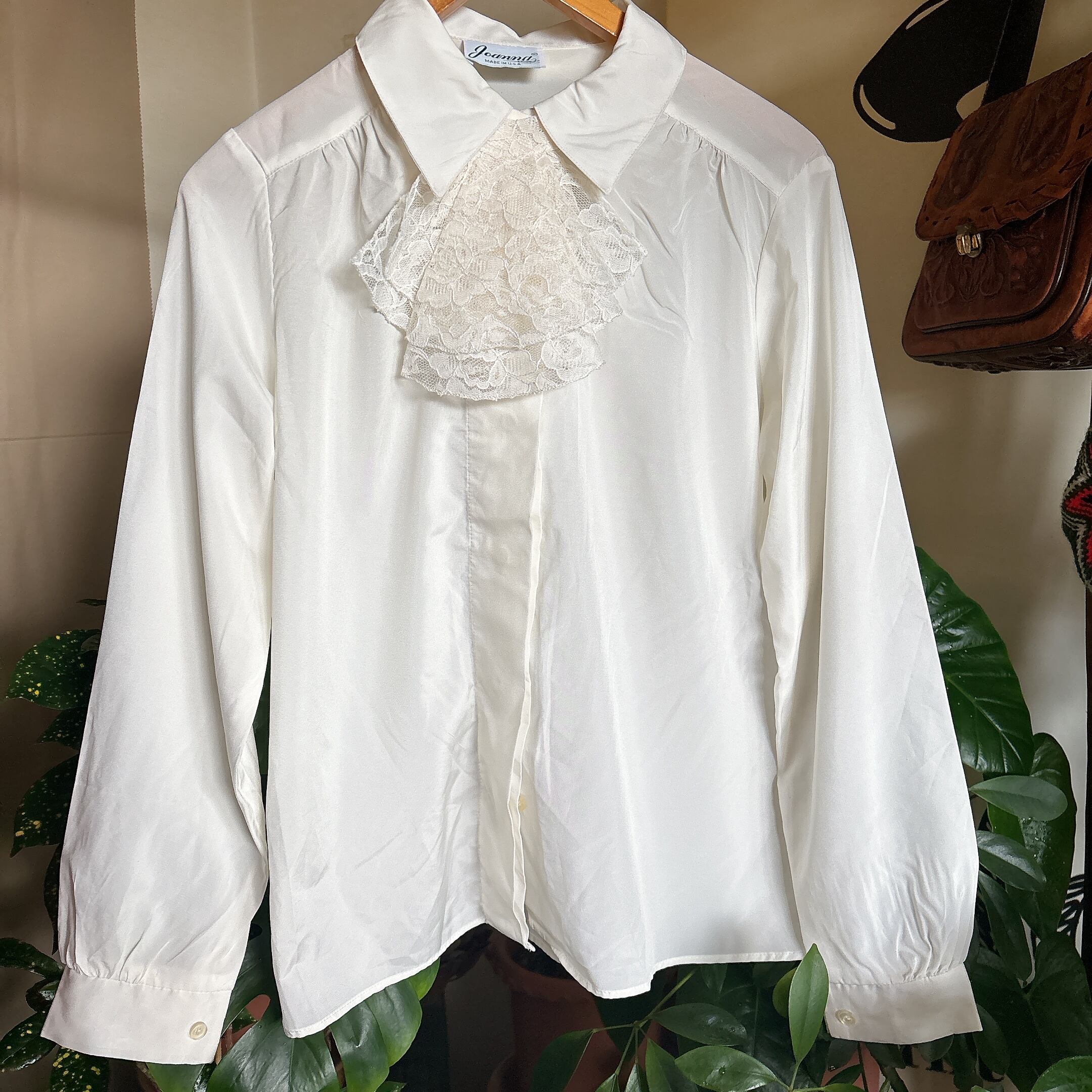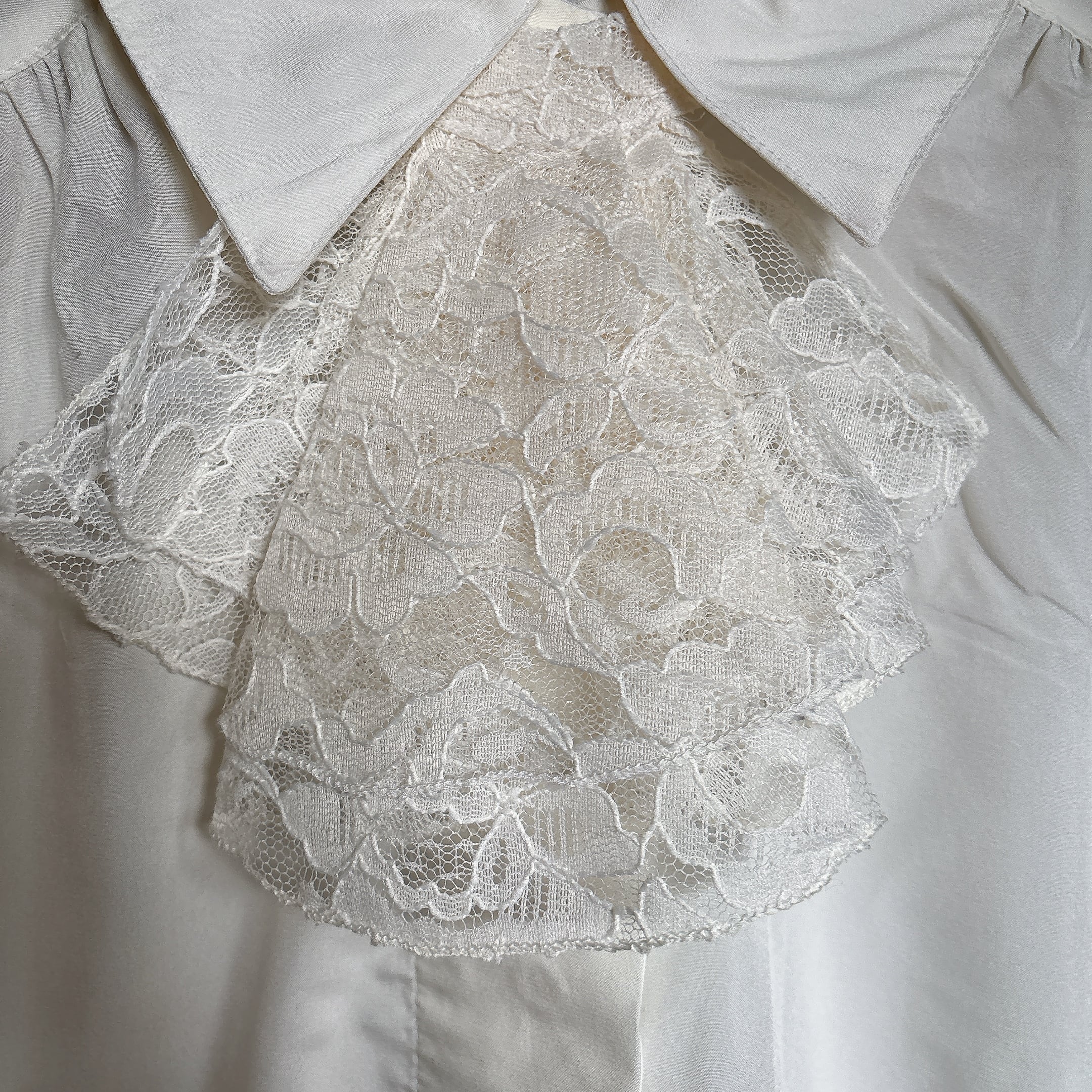 70s–80s USA製 レースジャボ付き ヴィンテージ ホワイトブラウス