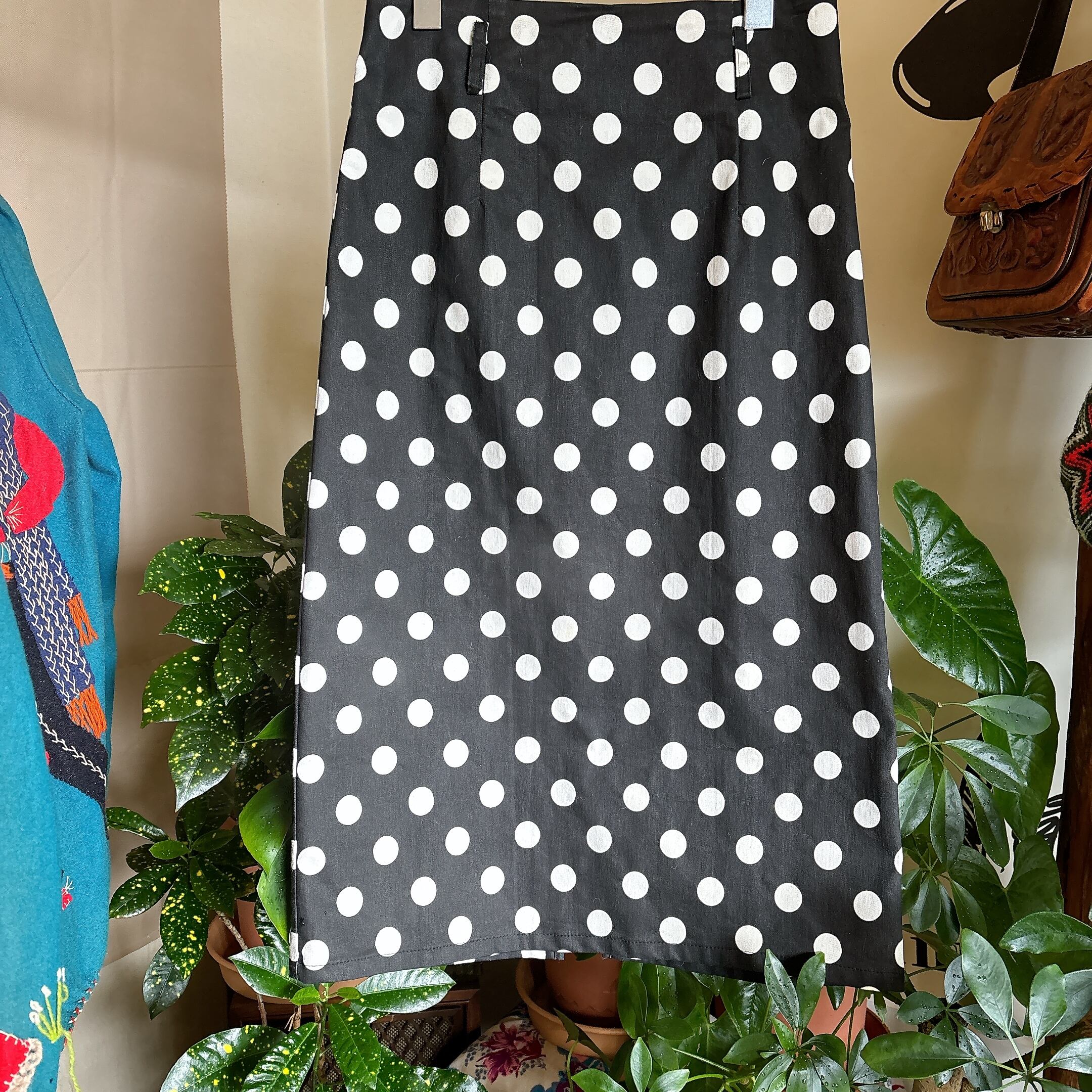 used ブラック ホワイト ドット柄 セミタイト スカート
