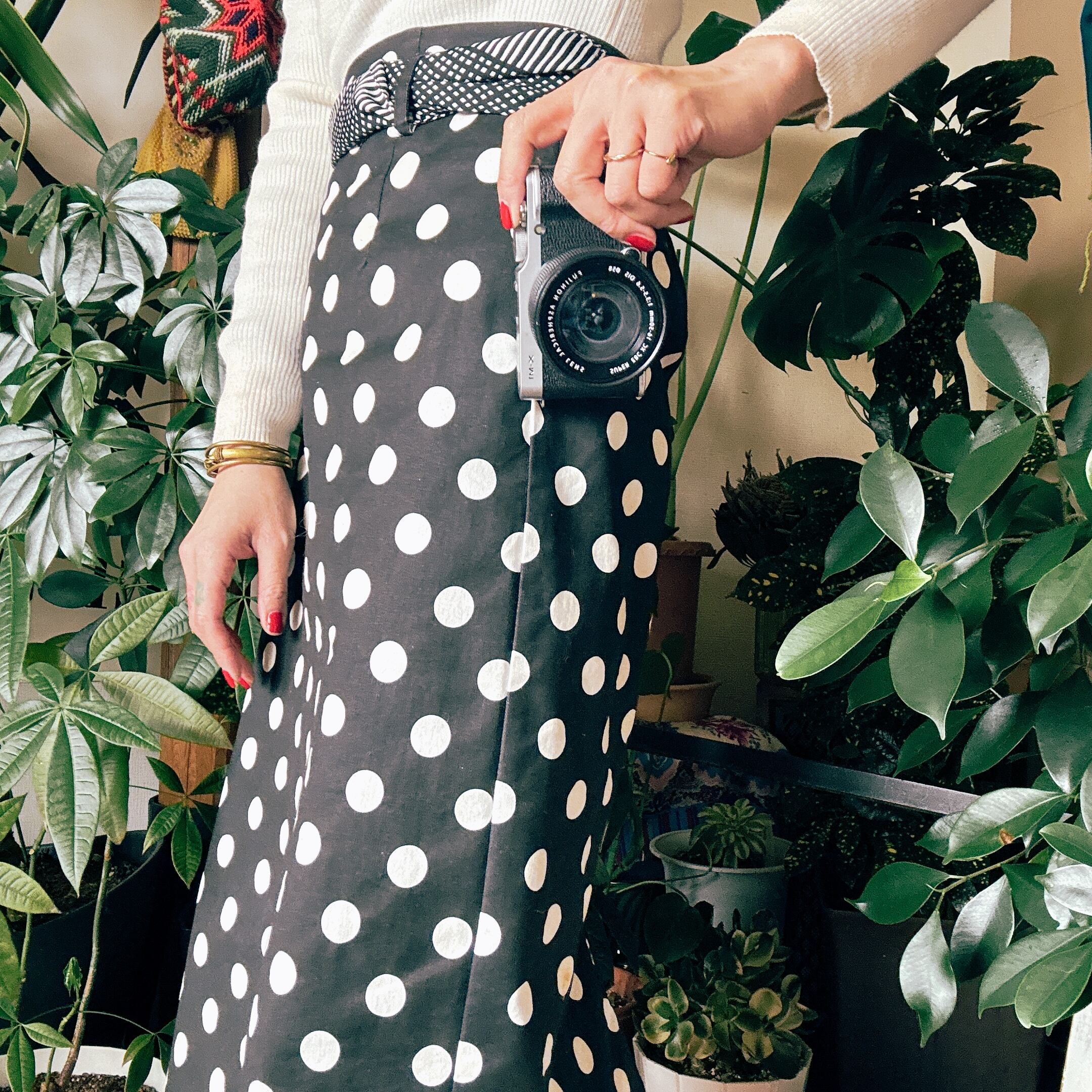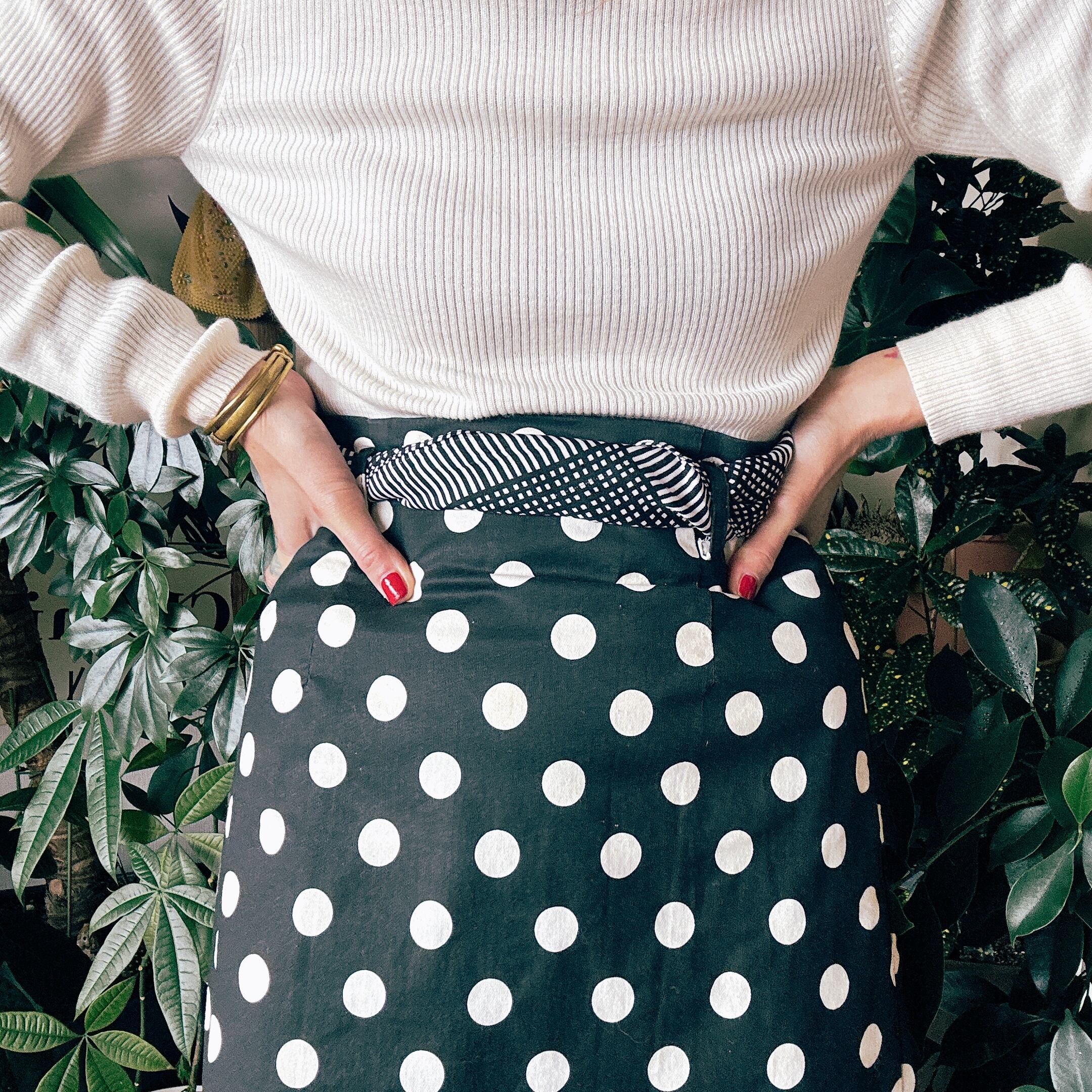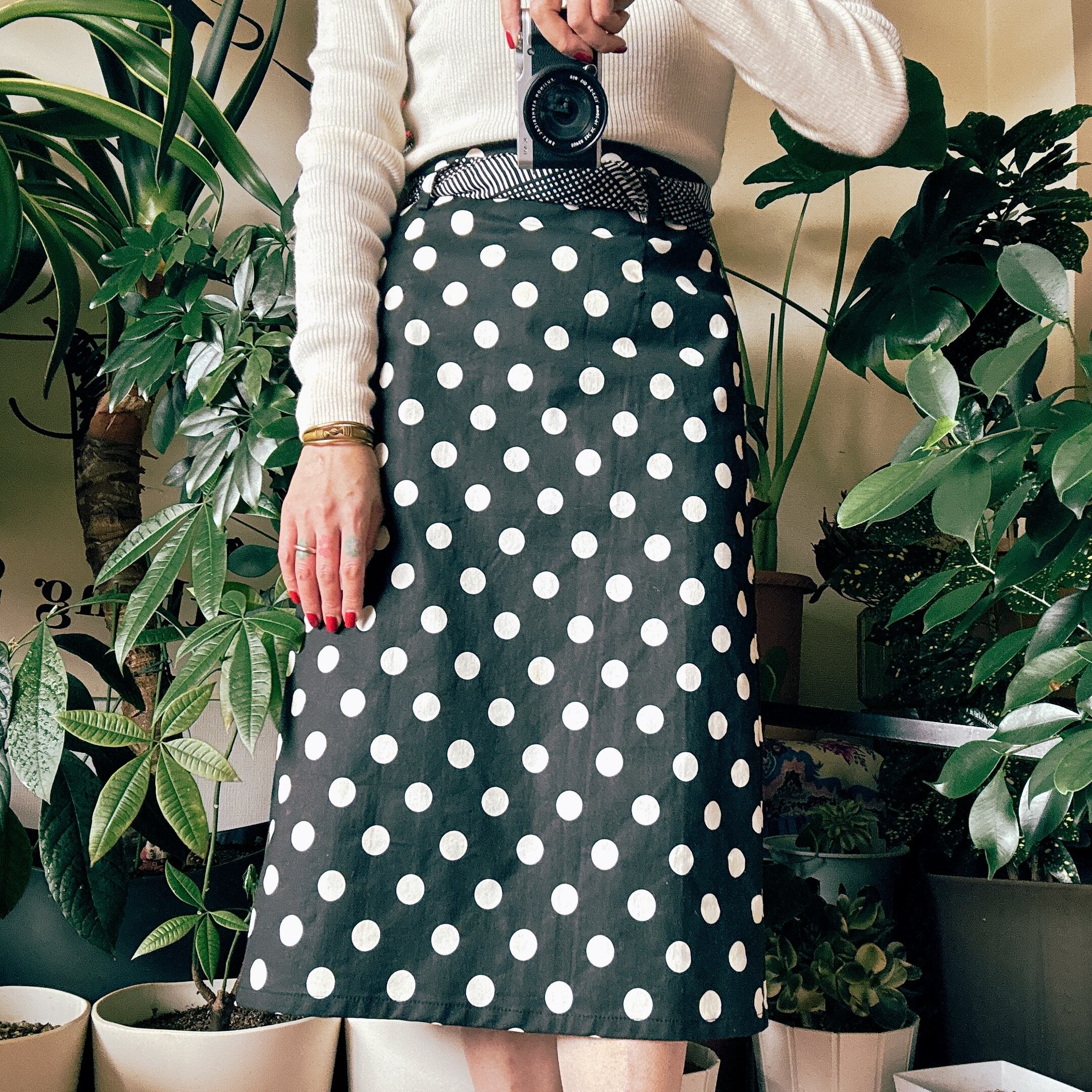 モノトーンの大きめドットが印象的な、USEDスカート。