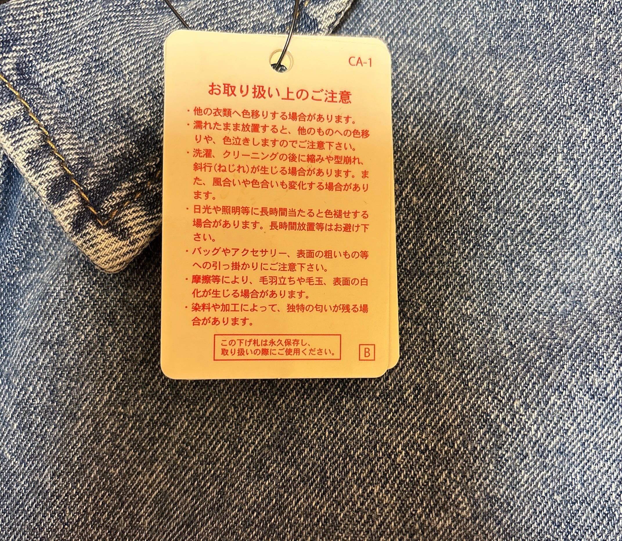 注意点:素材の特性上、色落ちが避けられません。淡色系との組み合わせはご注意下さい。また、洗濯などにより色や風合いが変化します。必ず単独で洗濯して下さい。