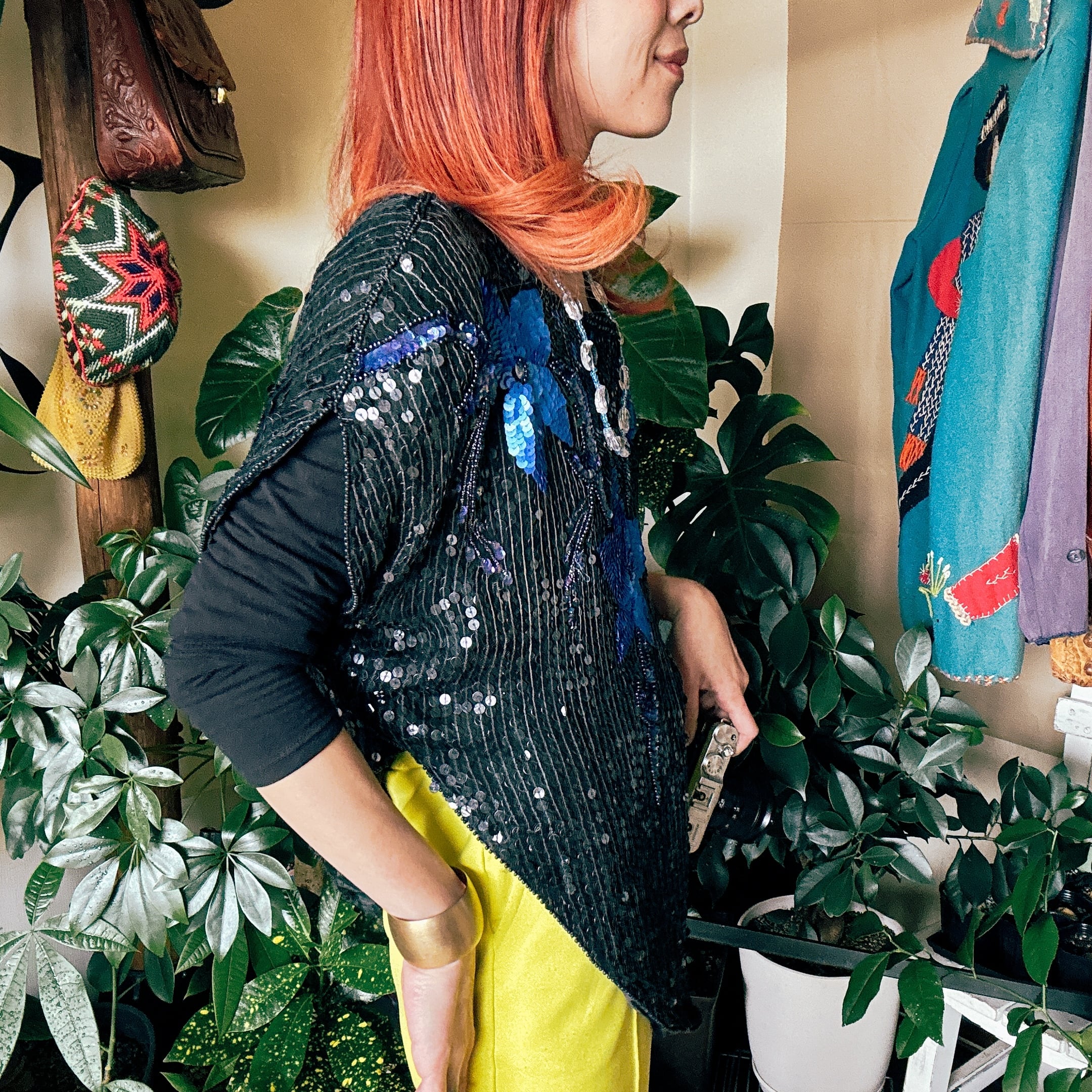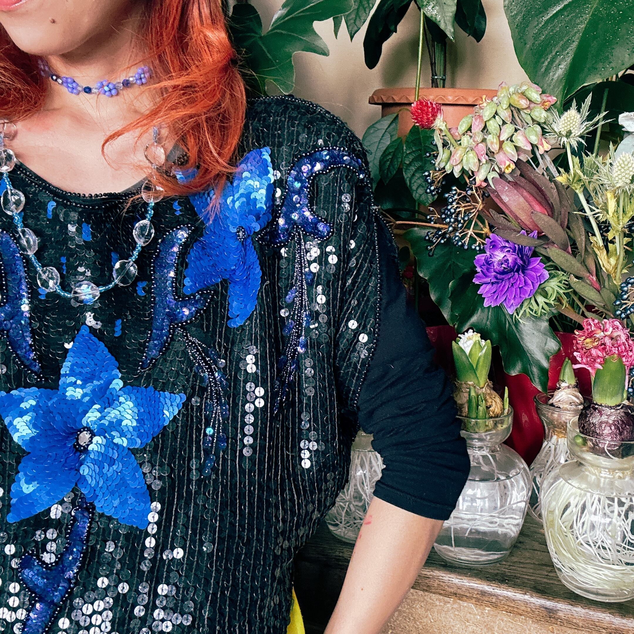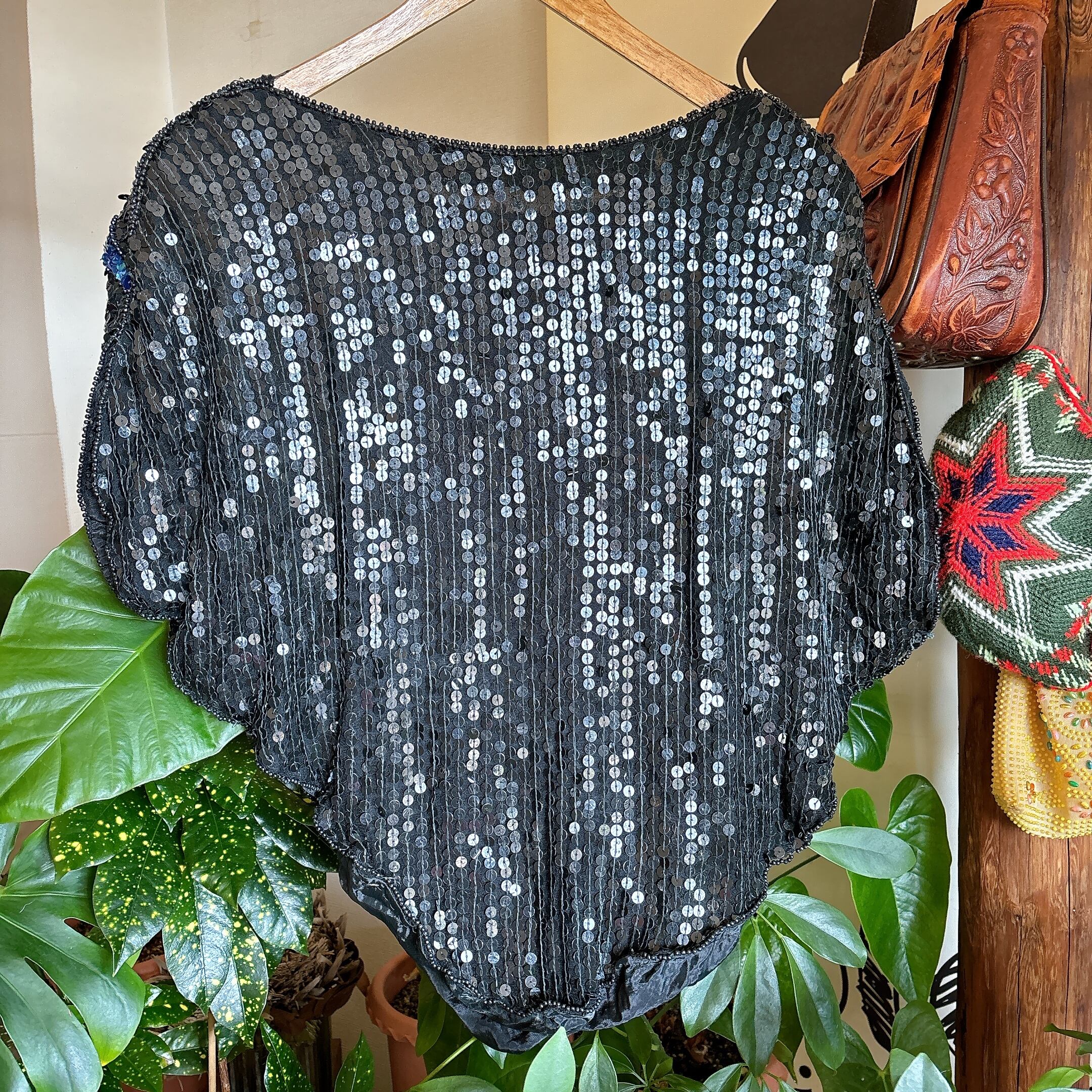 ◾️ブラックベースに無数のスパンコールを贅沢にあしらった、80年代ヴィンテージトップス。