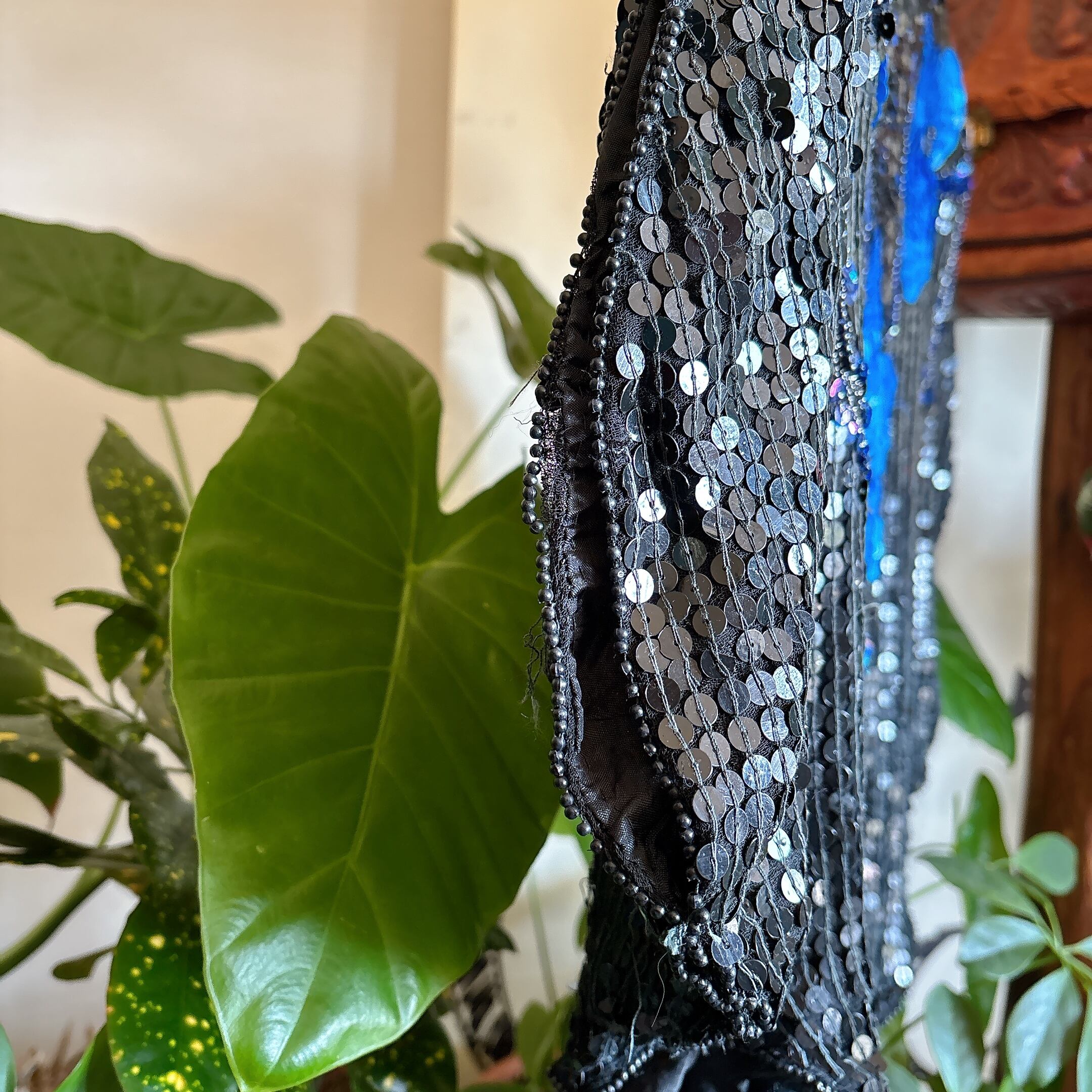 グラデーションのスパンコールが光の角度で輝き、ステージ衣装のような存在感を放ちます。