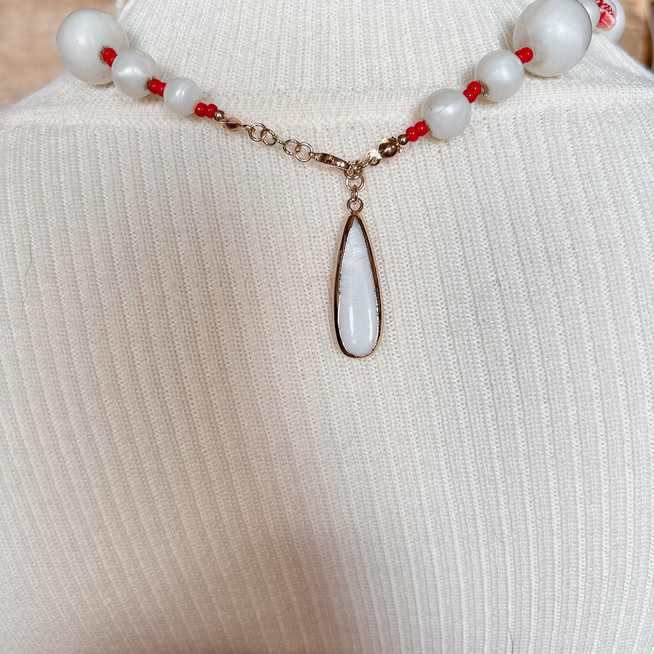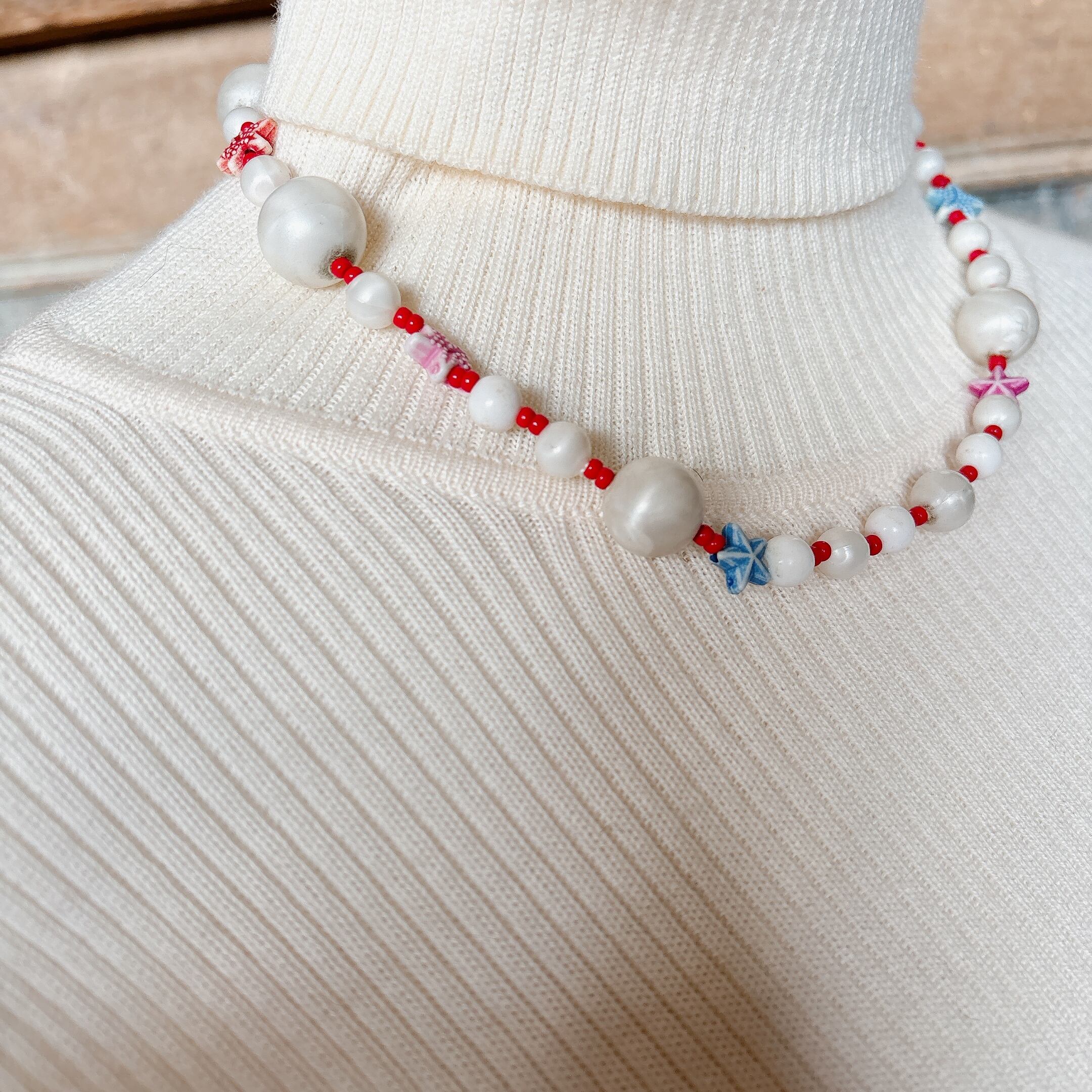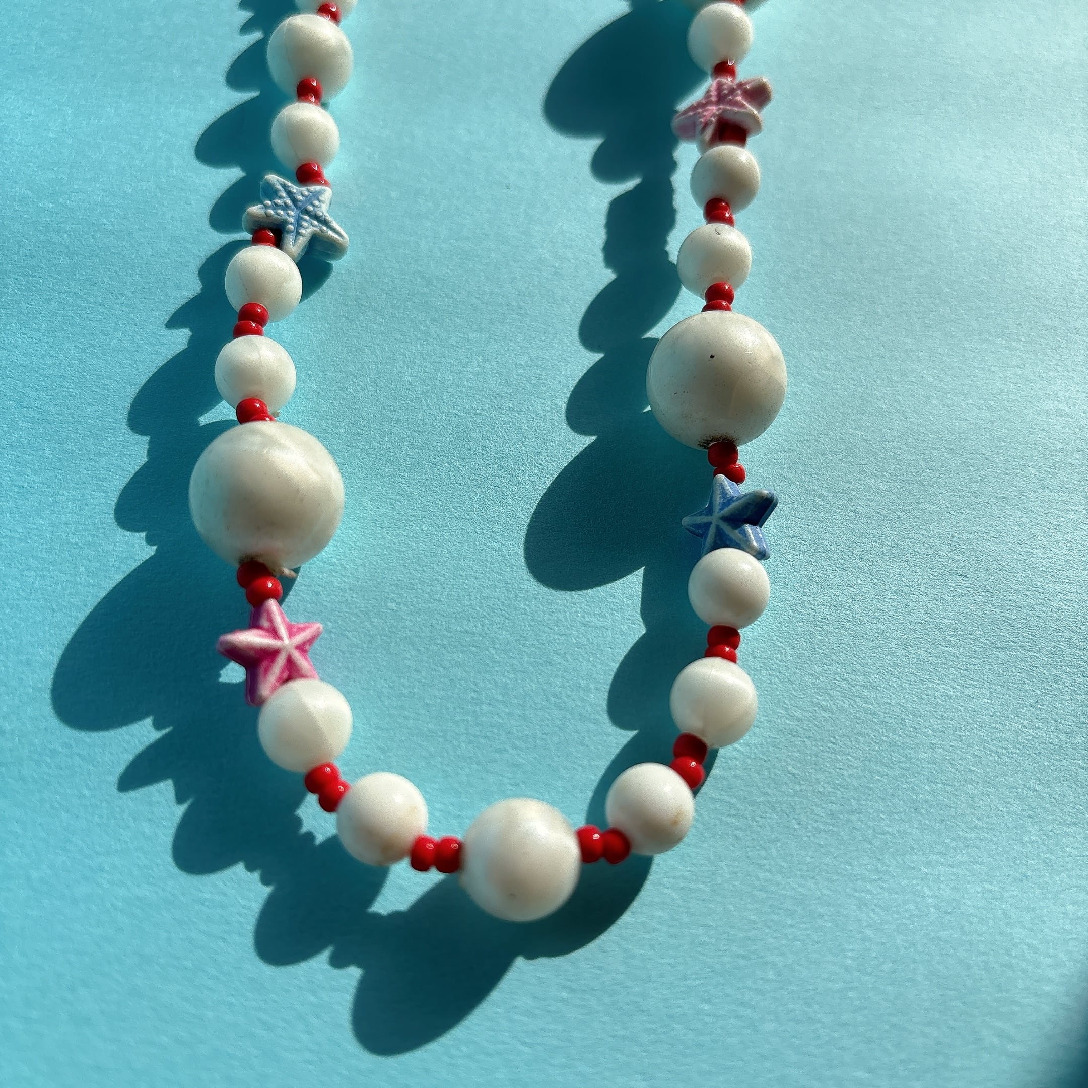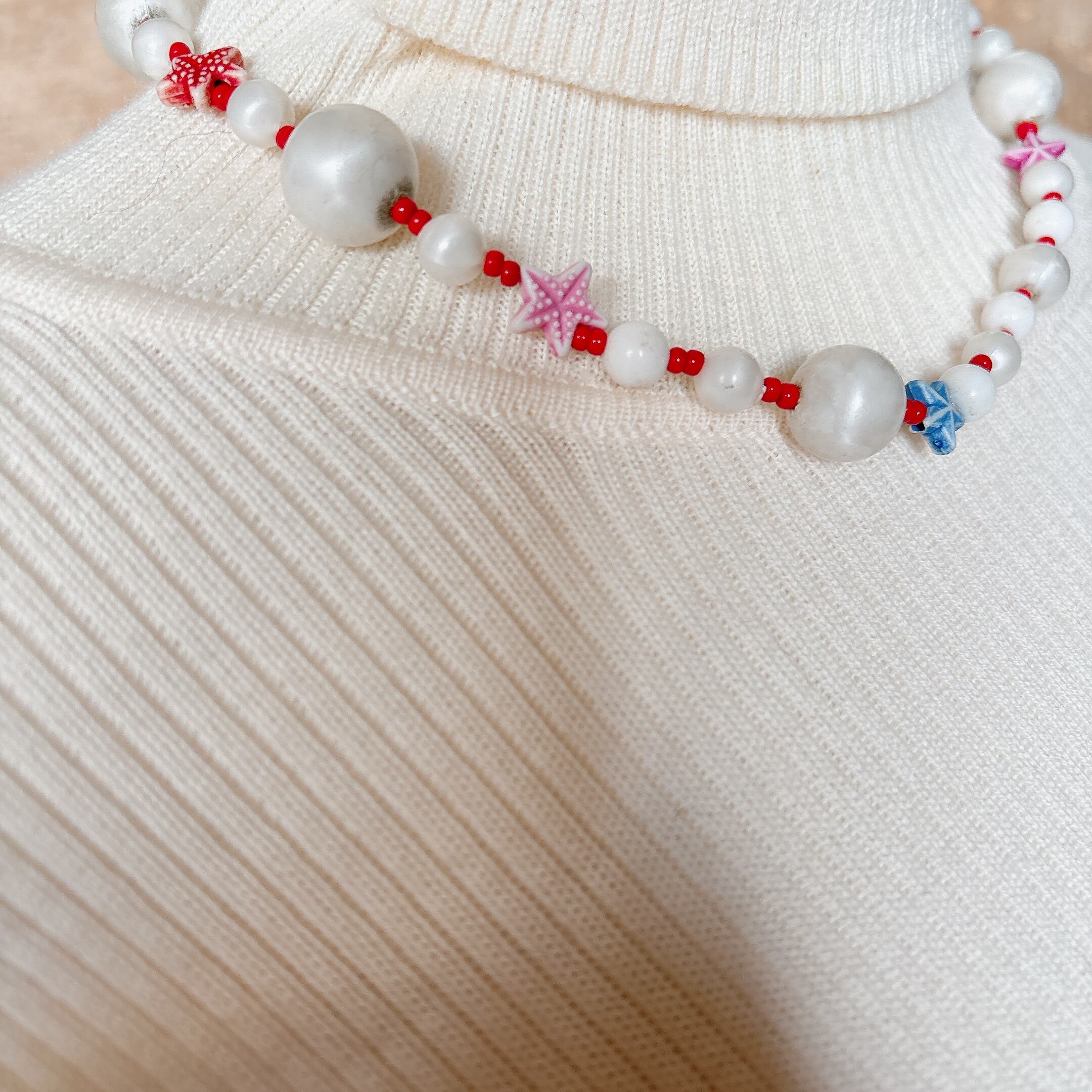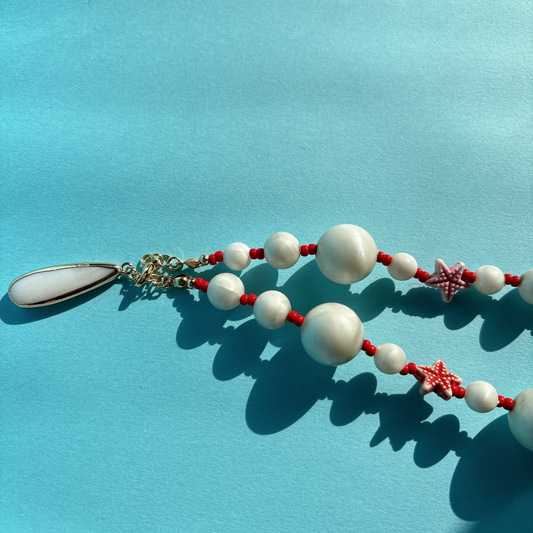 ◾️ ホワイトを基調に、海のモチーフを散りばめた爽やかなネックレス。