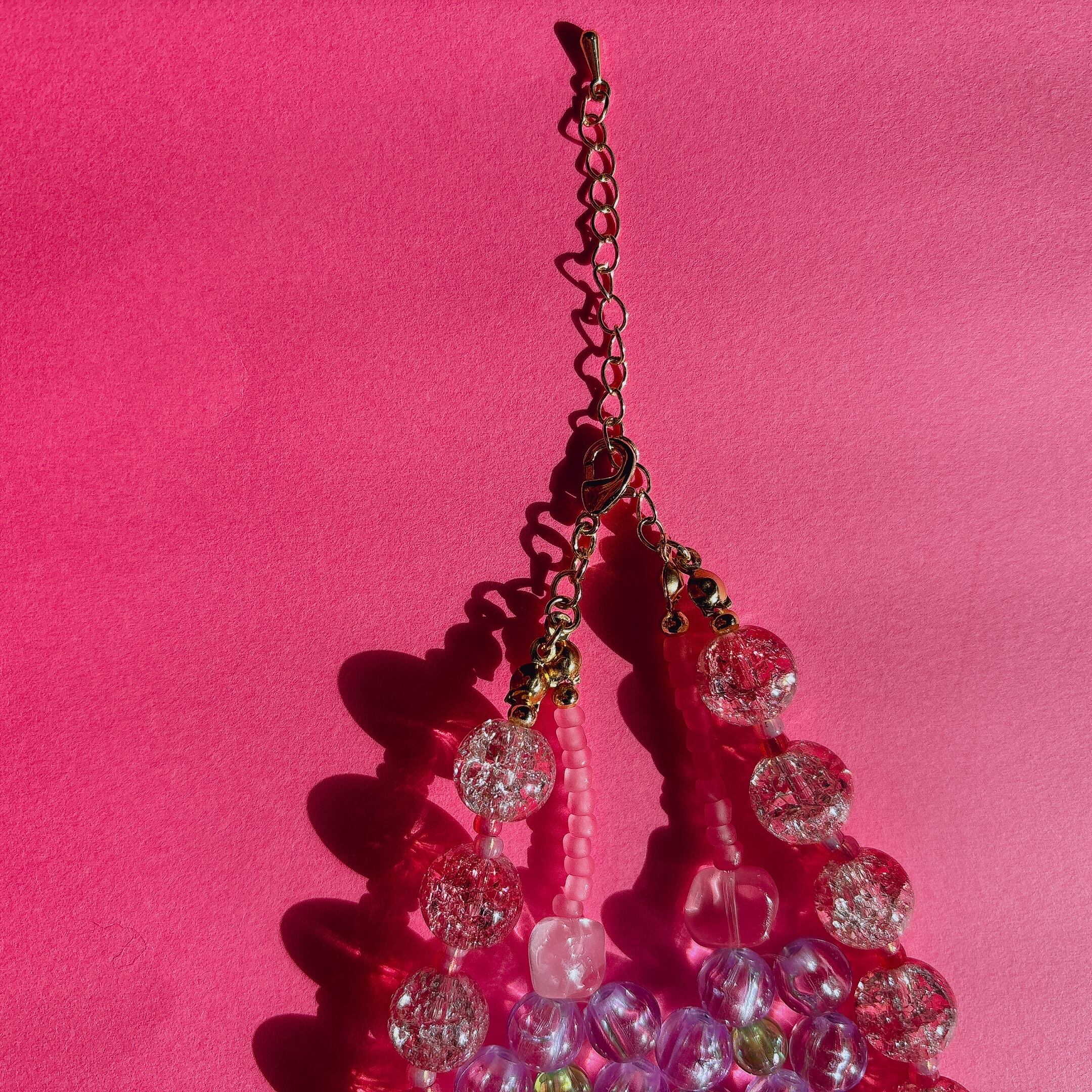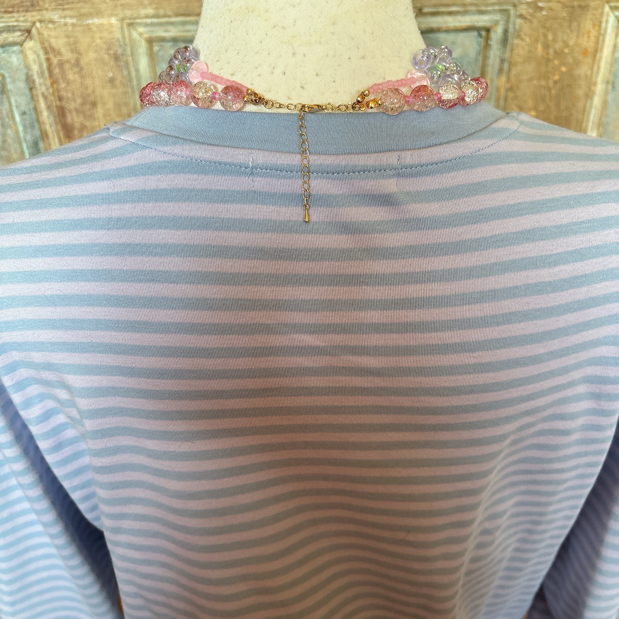 ◾️淡いラベンダーとピンクのグラデーションが優しく彩る、二連デザインのネックレス。
