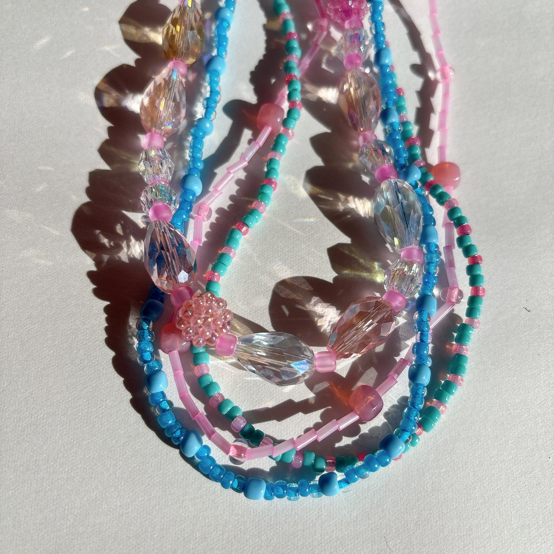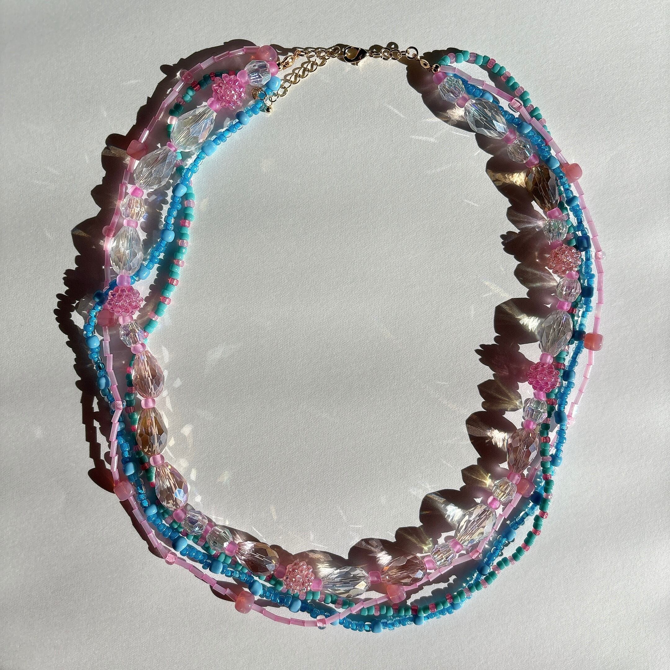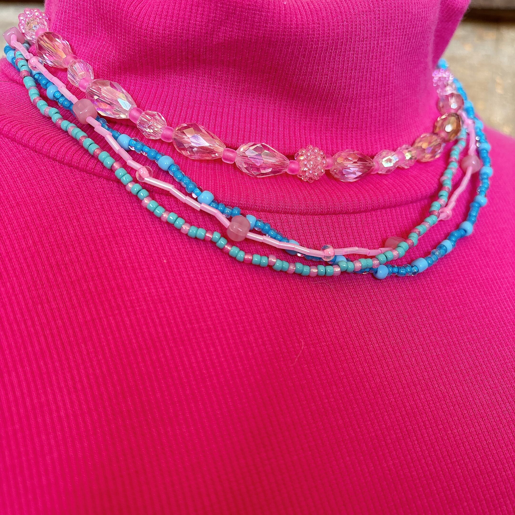 ◾️4連デザインのビーズネックレス。