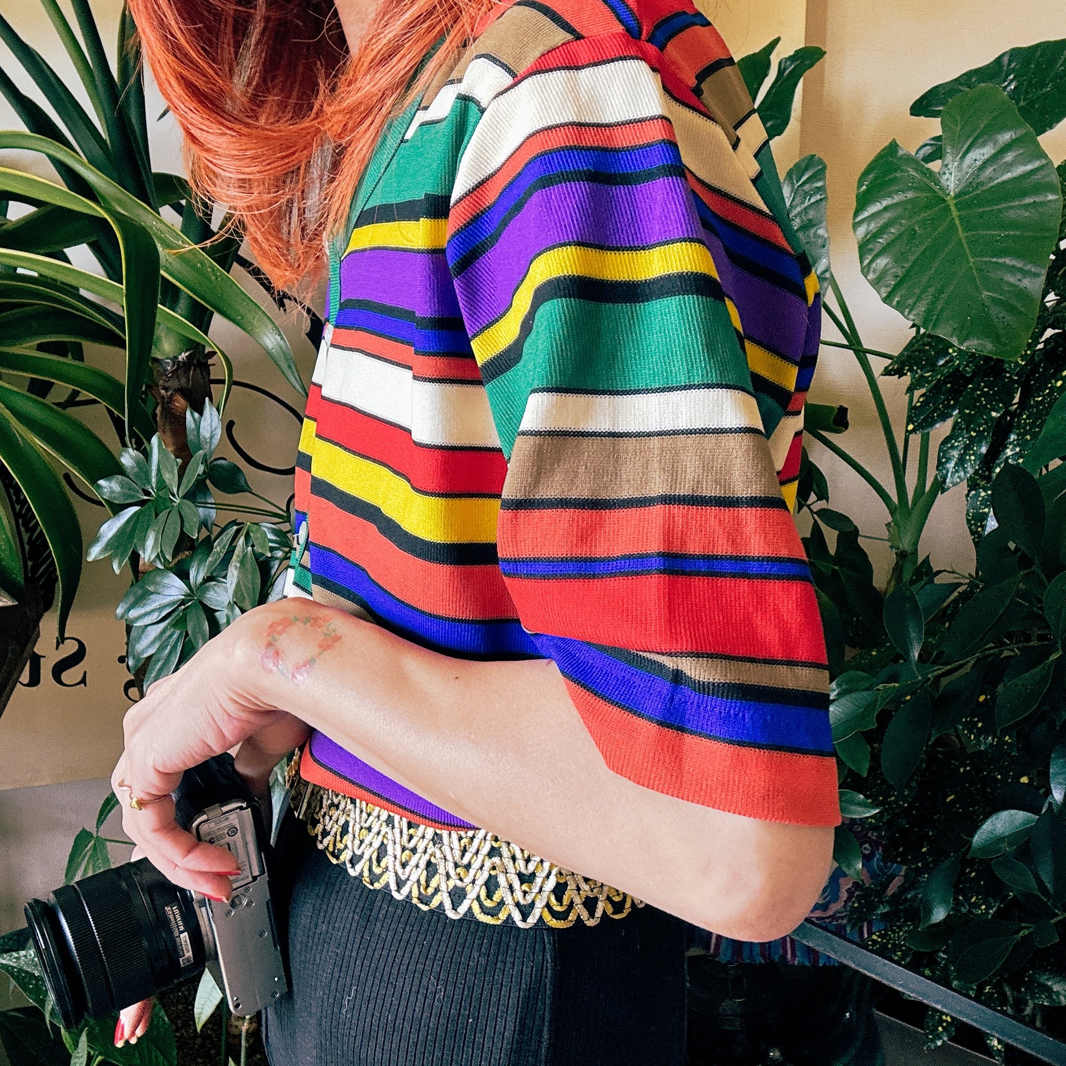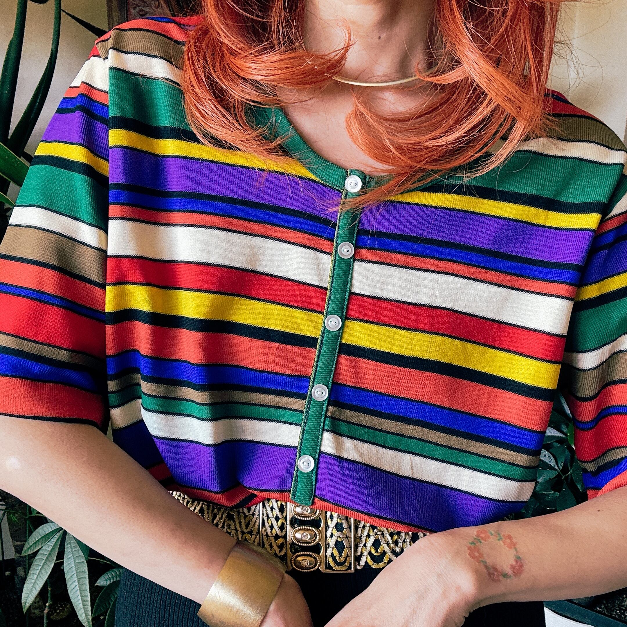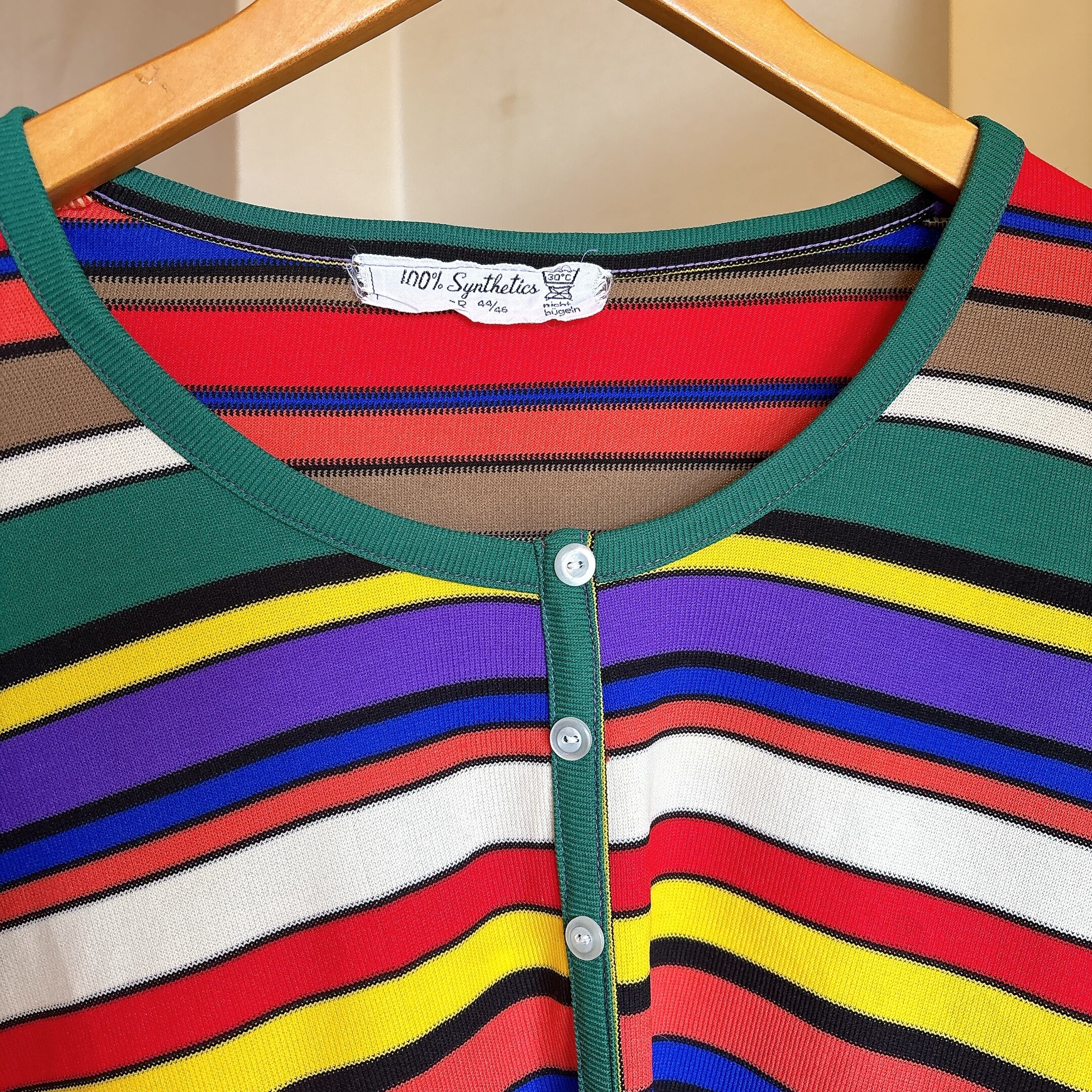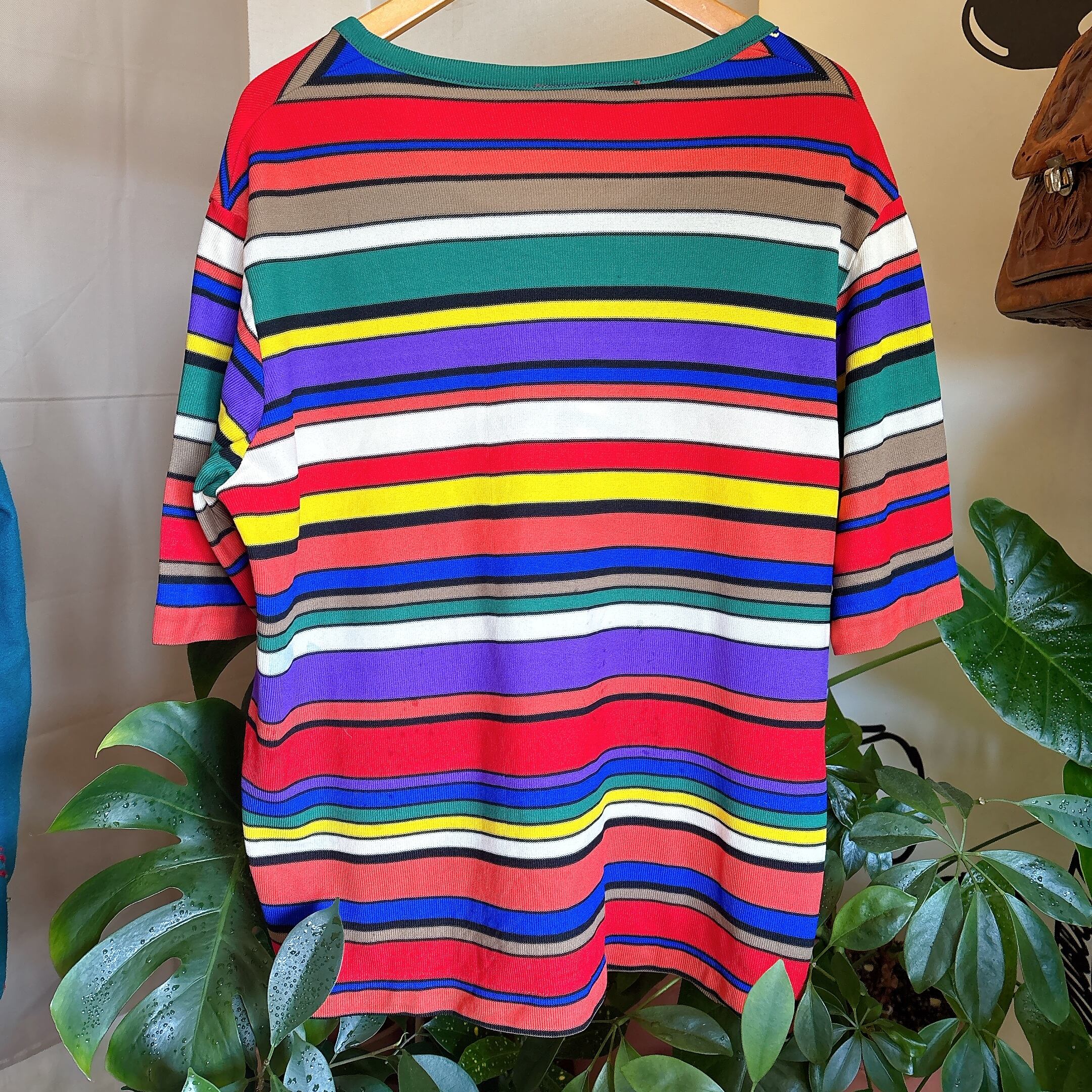 ◾️鮮やかなマルチカラーのボーダーが目を惹く、ヴィンテージニットトップス。