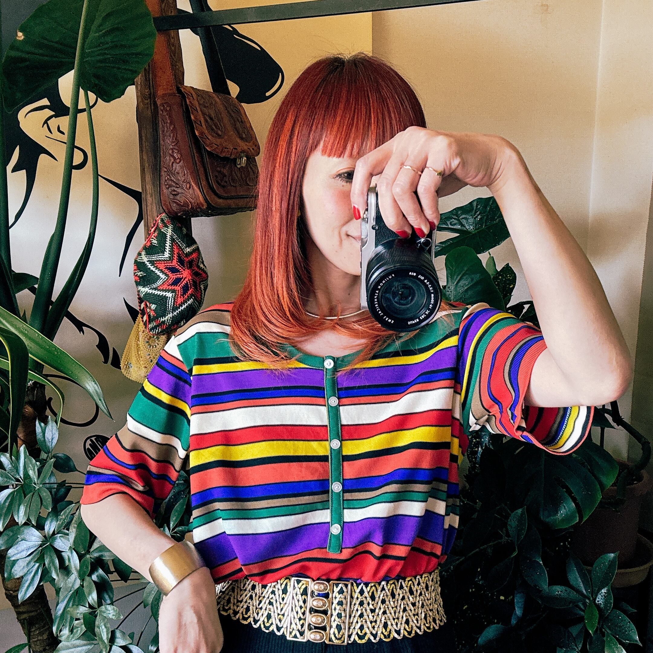 発色の良い赤・パープル・イエロー・グリーンの配色は、80年代らしい大胆さがあります。