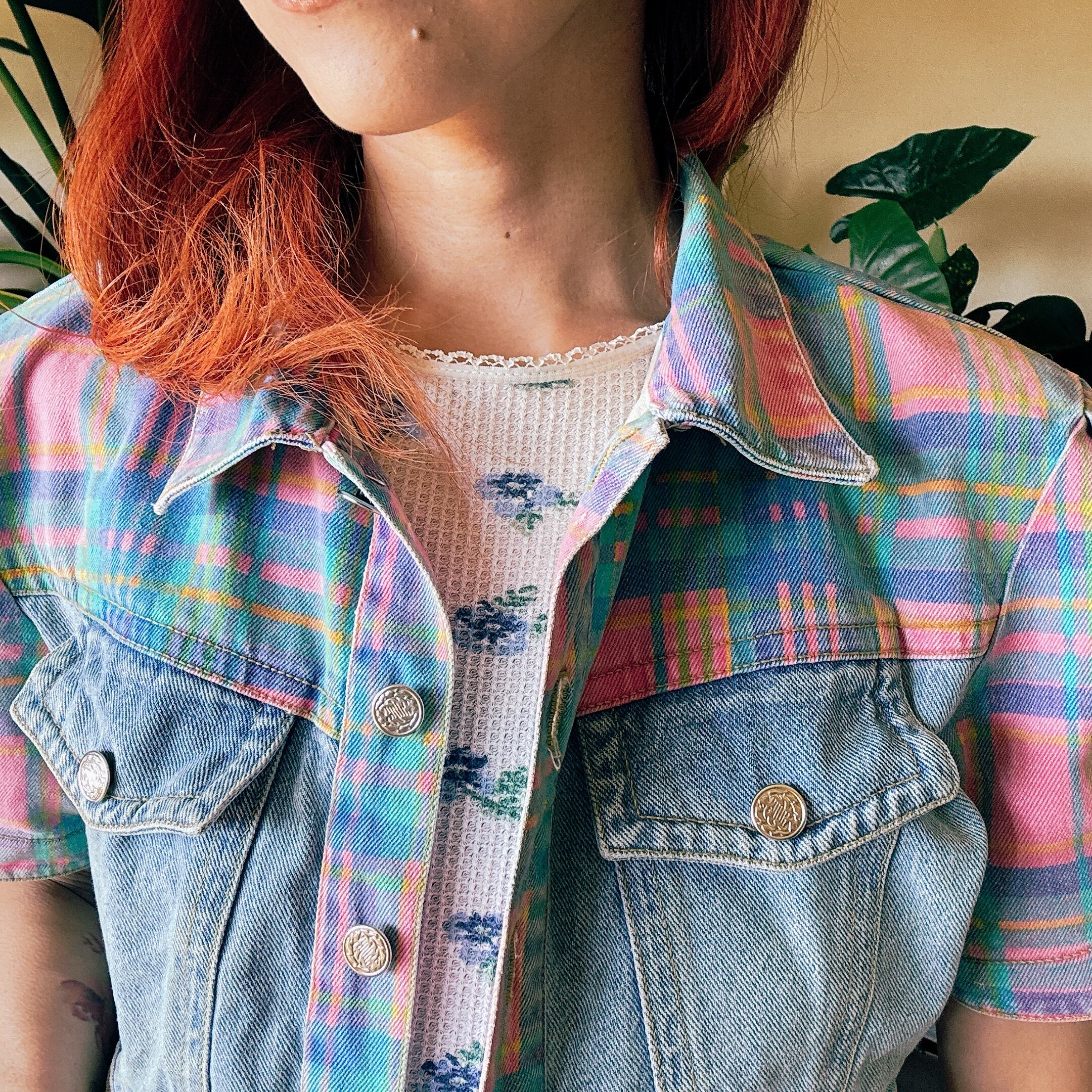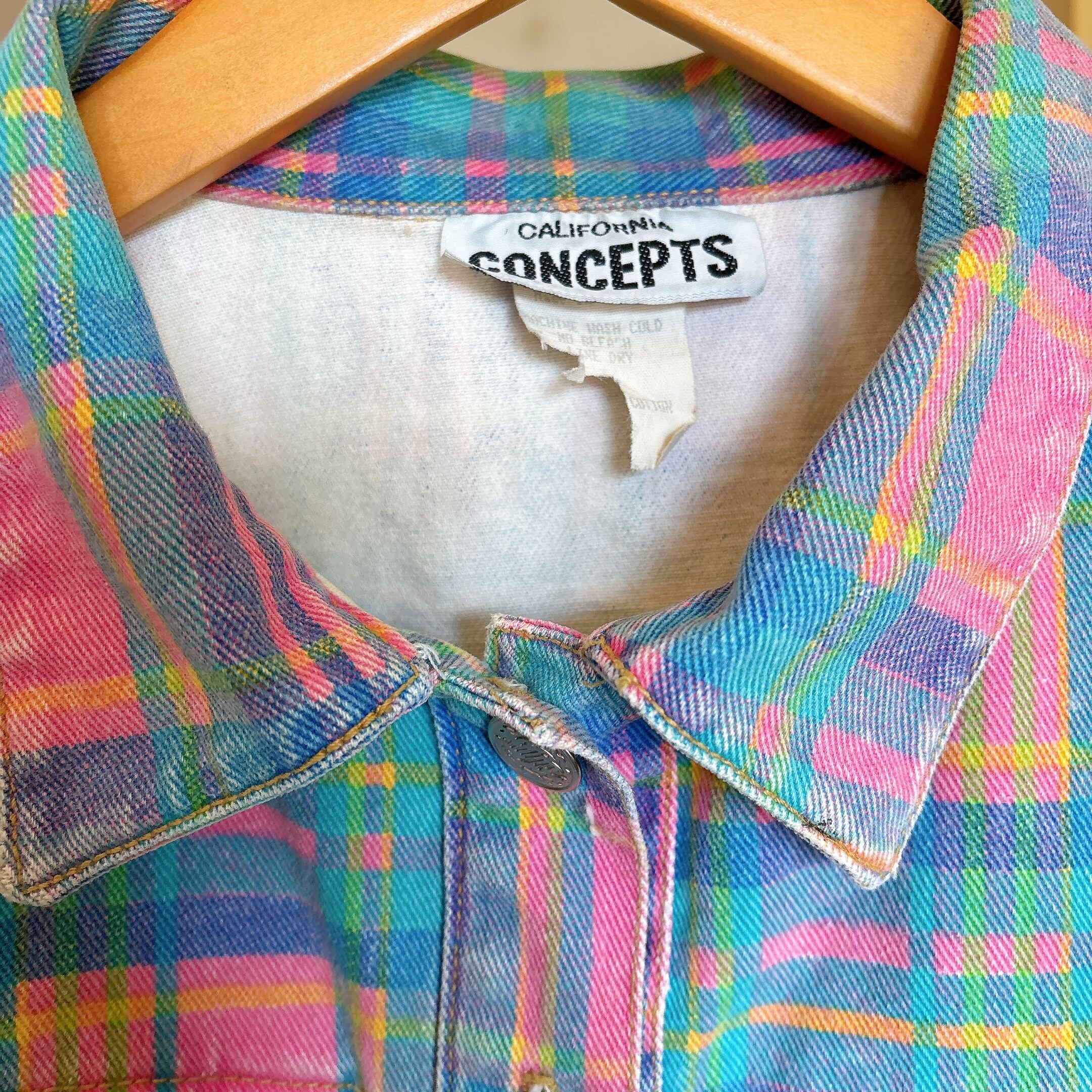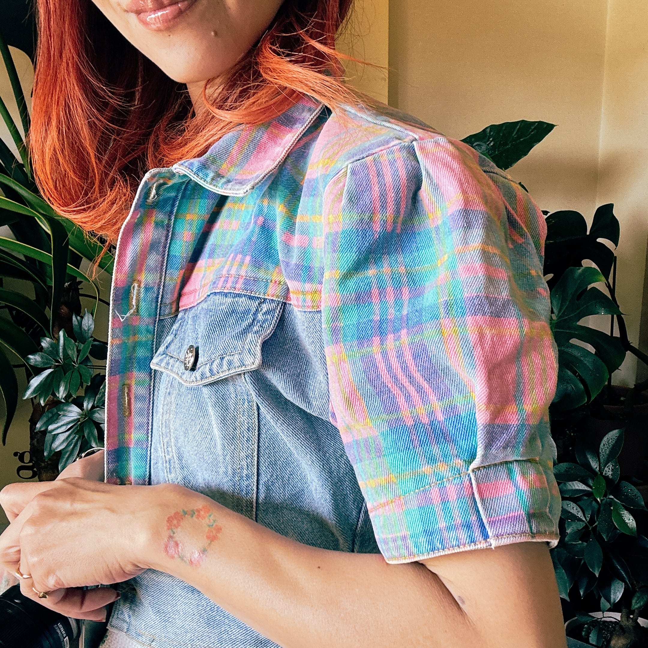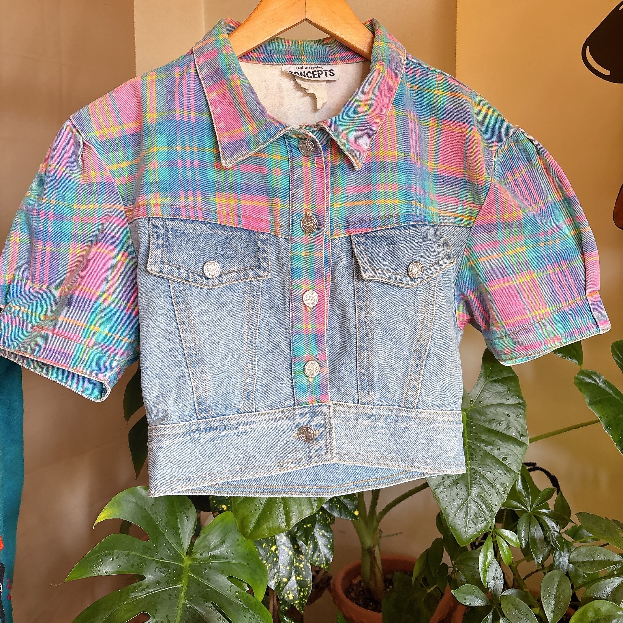 80s CALIFORNIA CONCEPTS パステルチェック切替 デニムジャケット