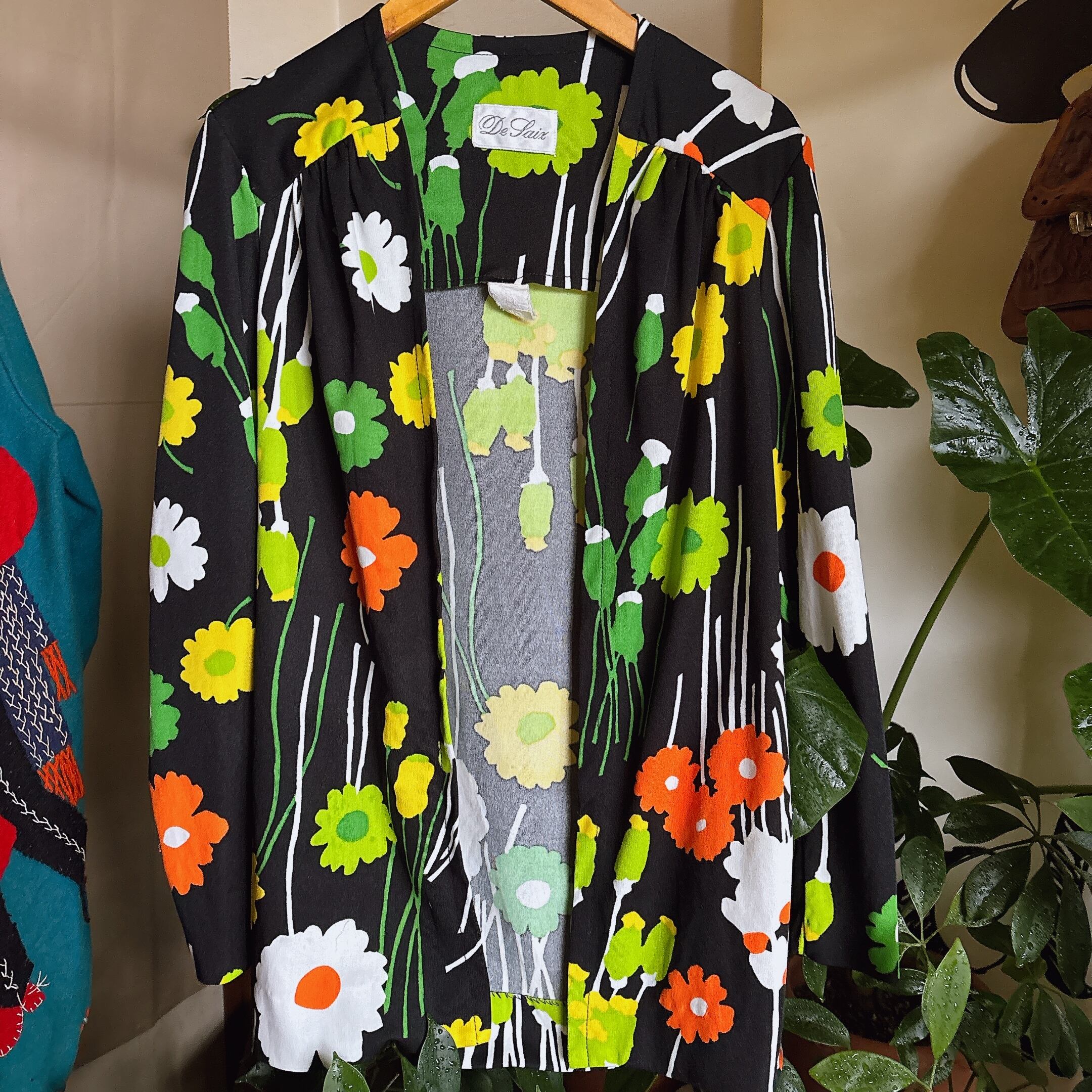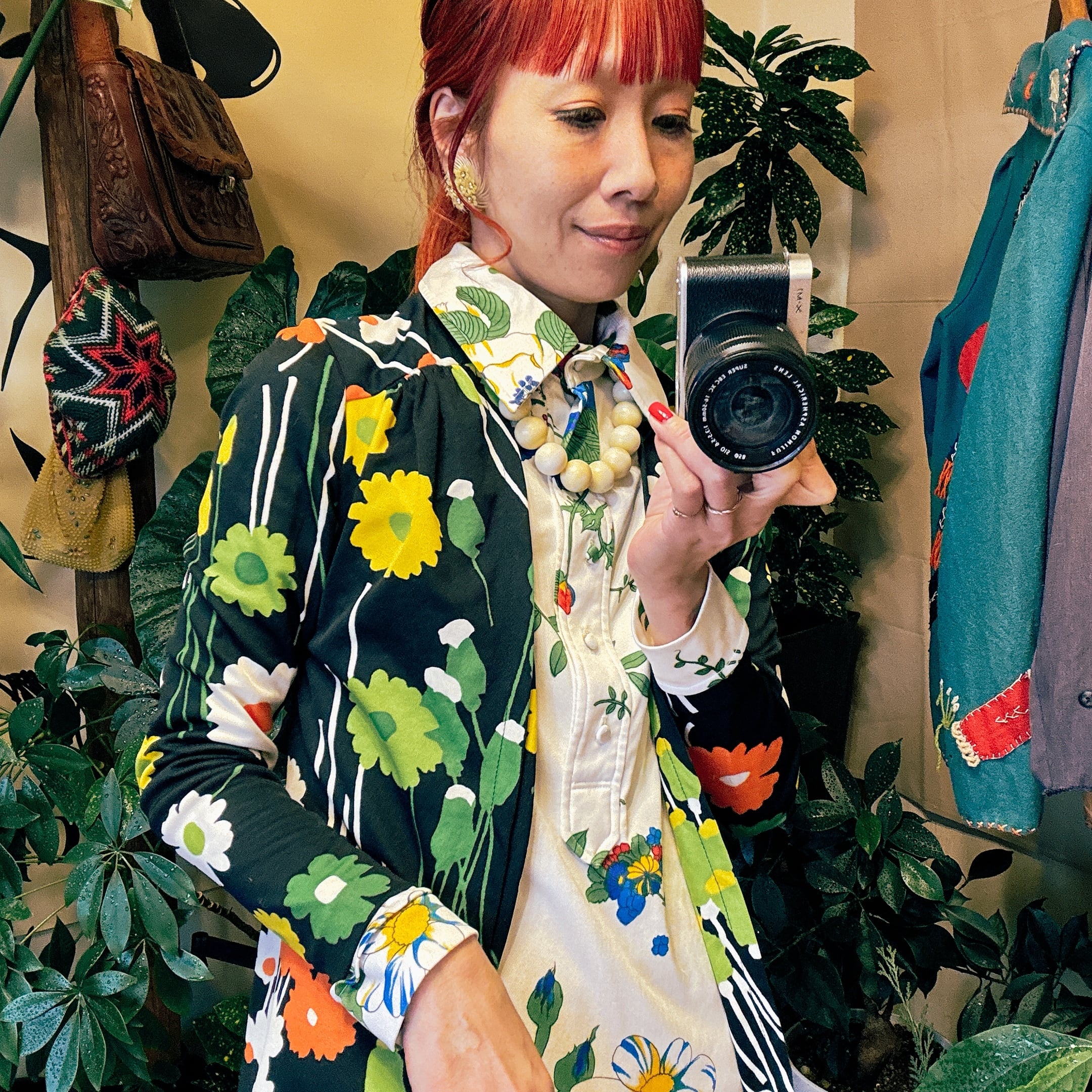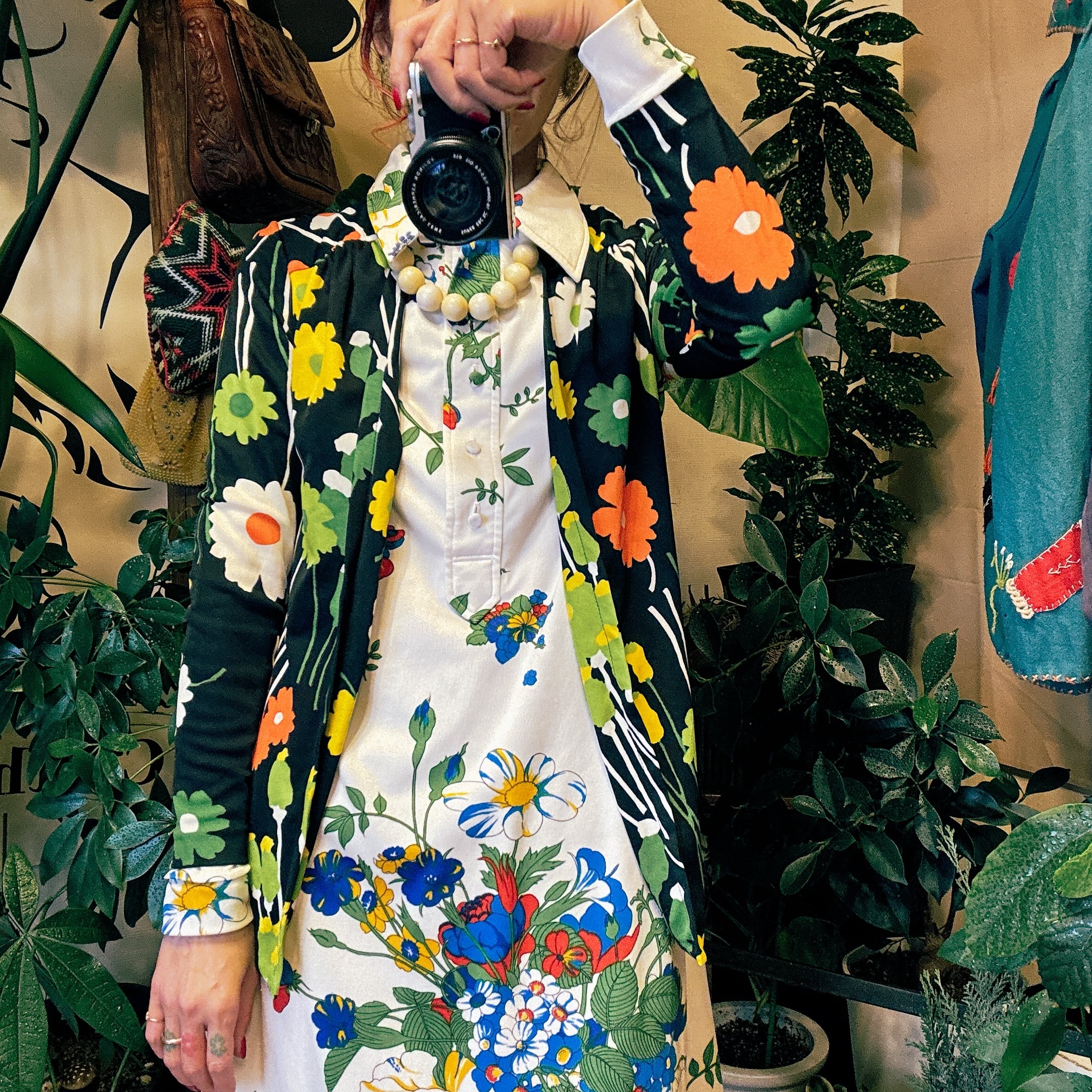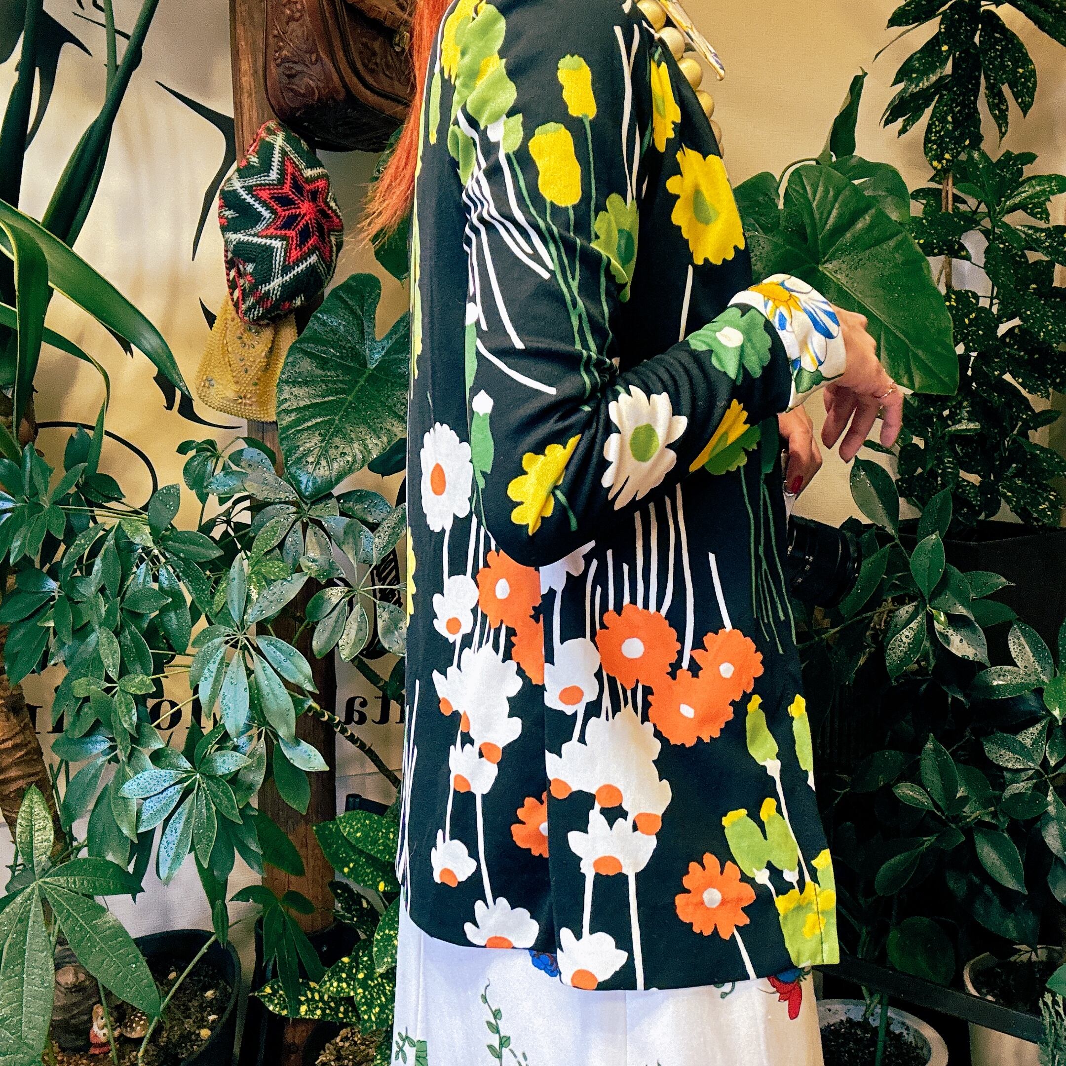 60s 70s 花柄 シャツ ノーカラー ライトアウター