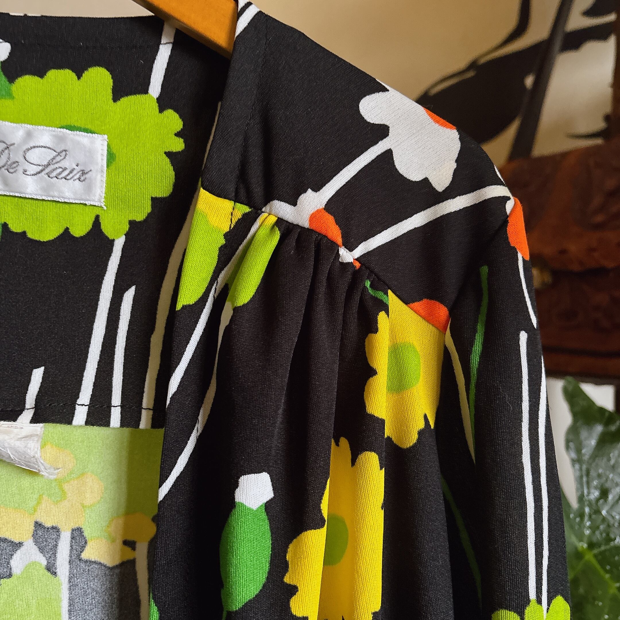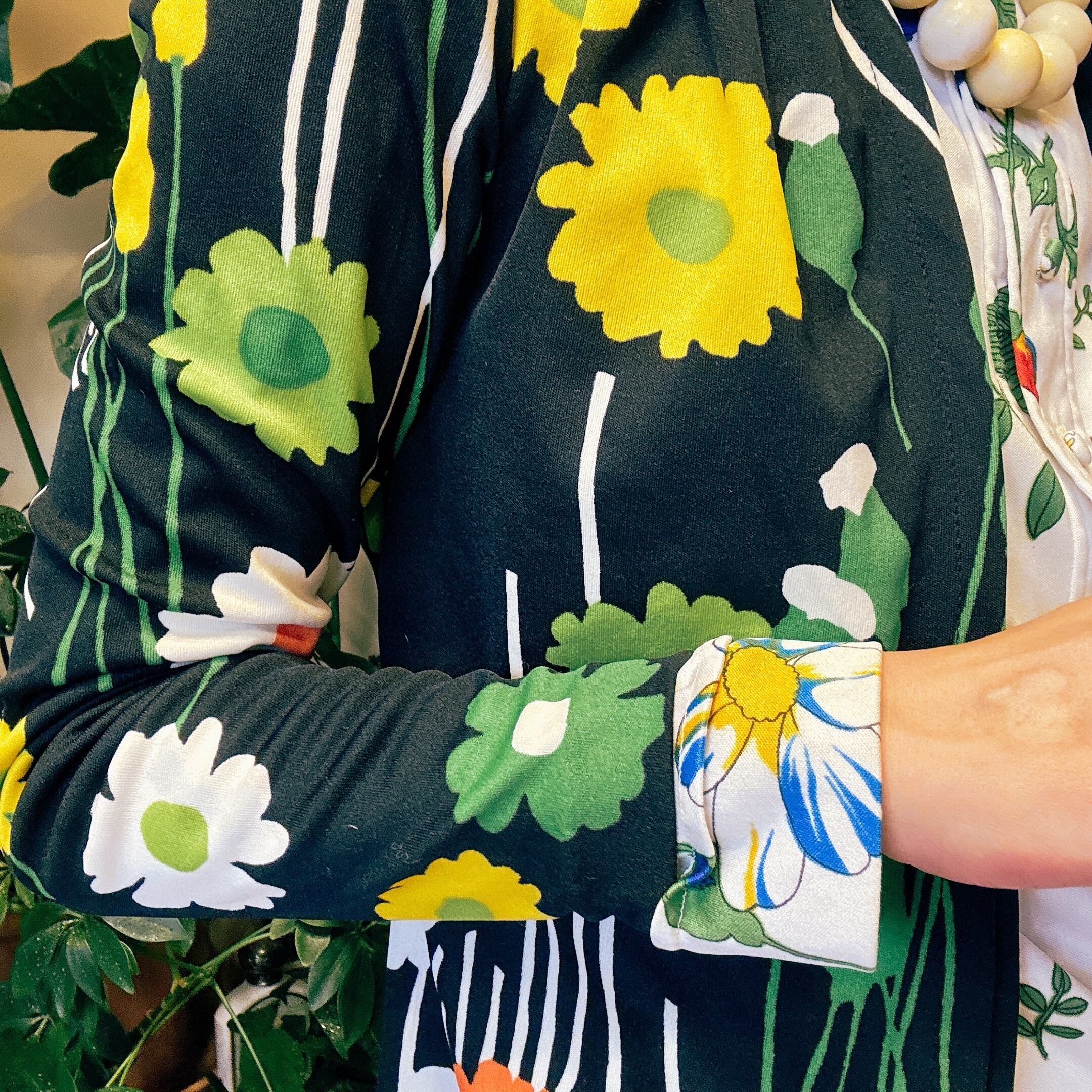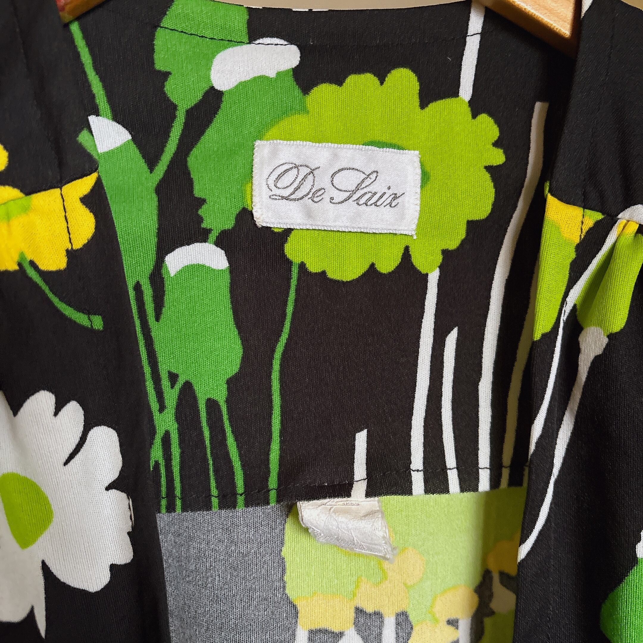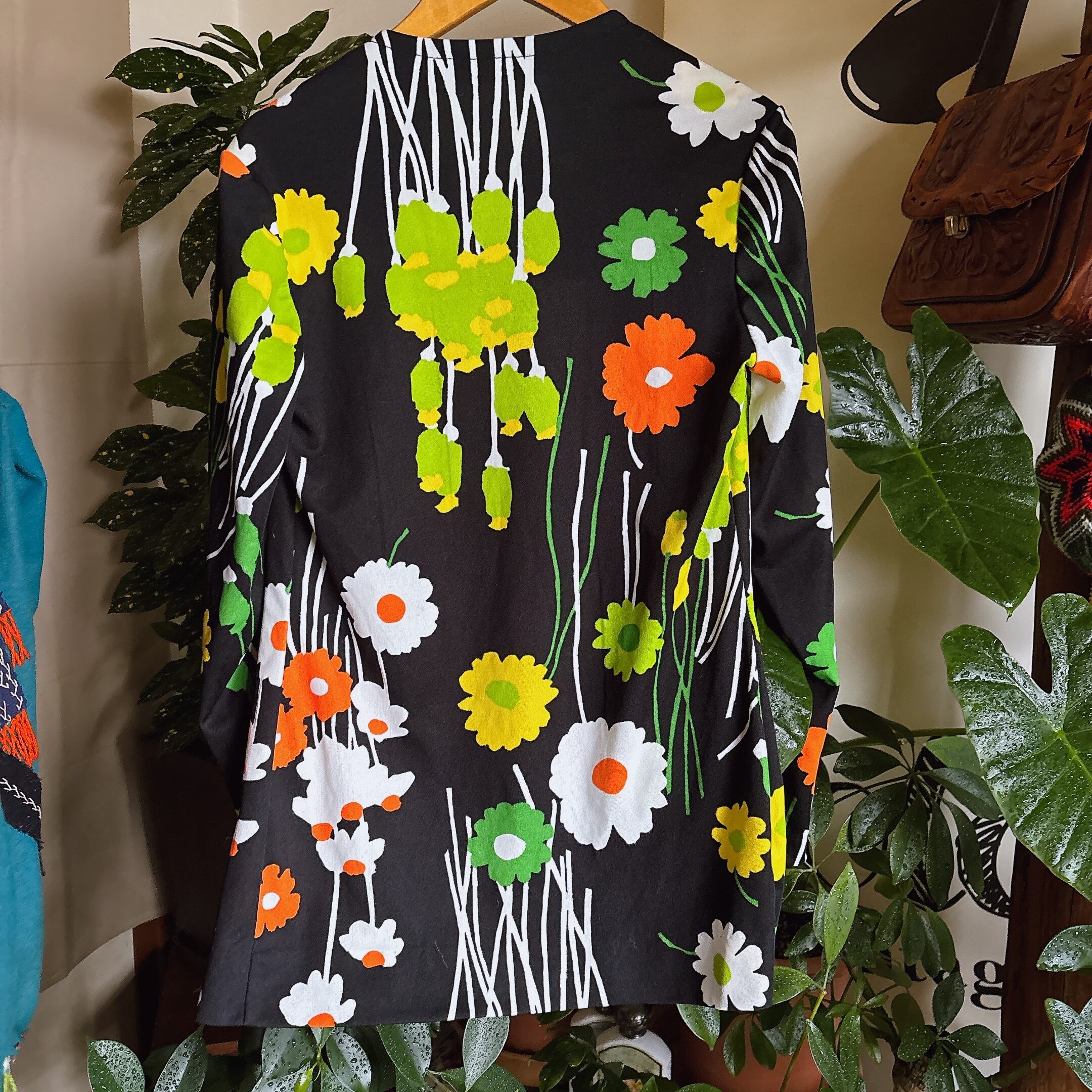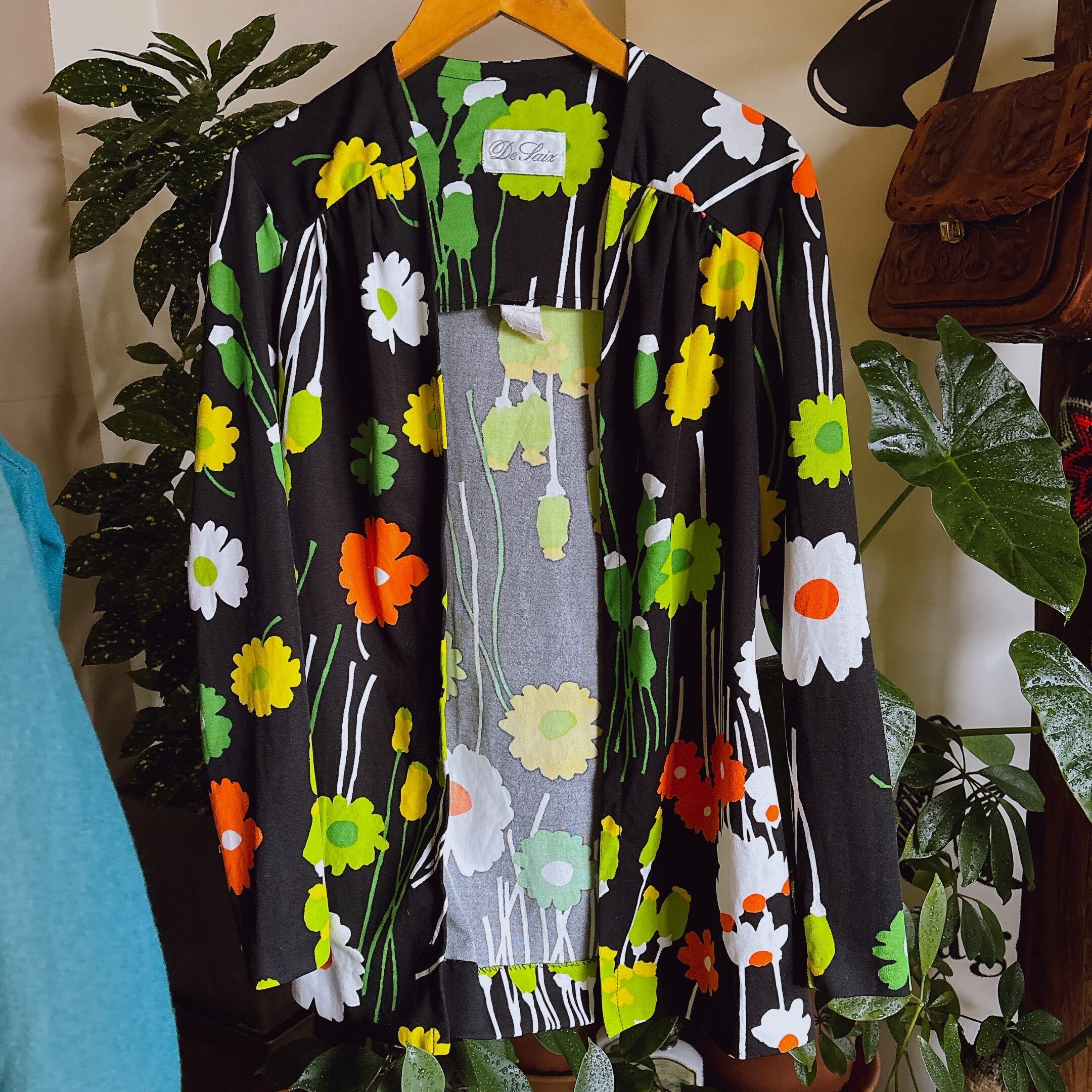 60s 70s 花柄 シャツ ノーカラー ライトアウター