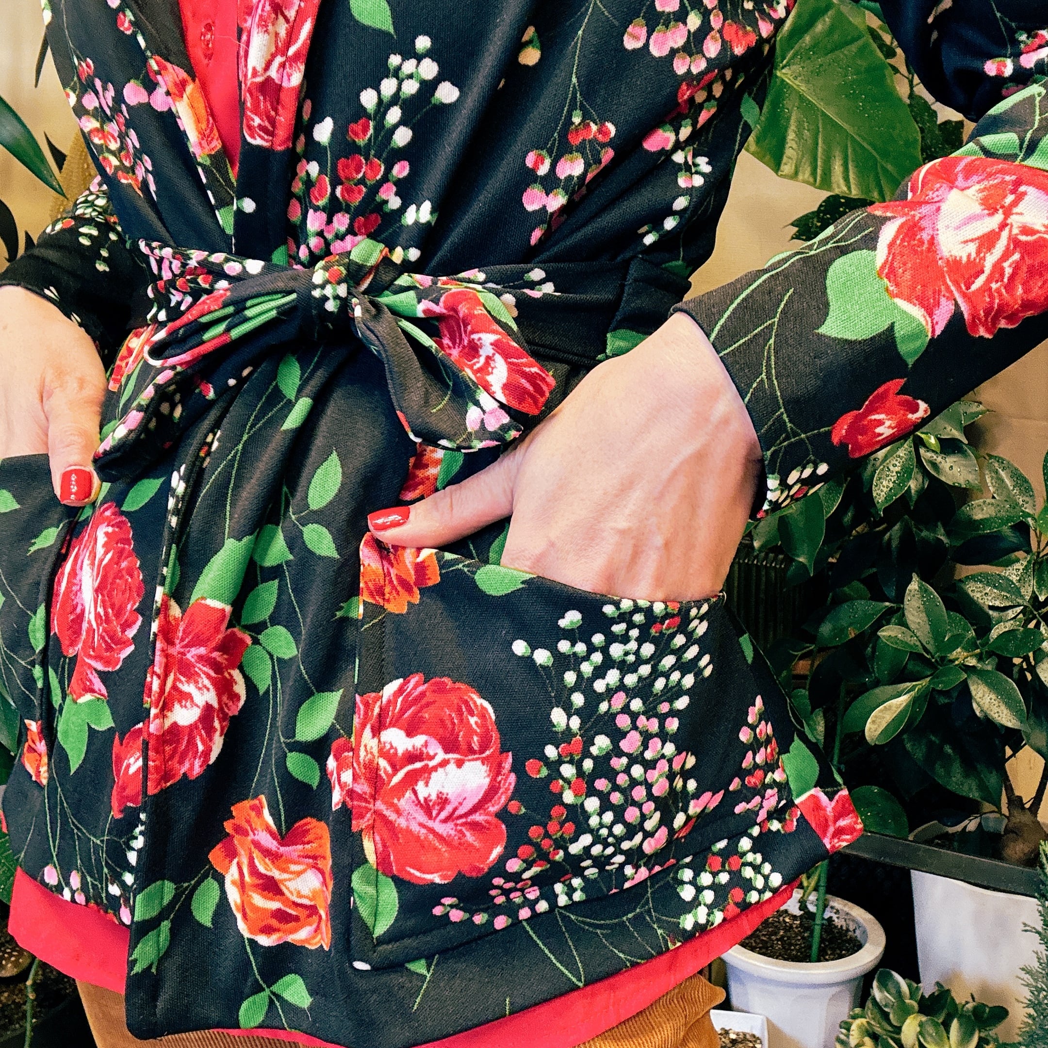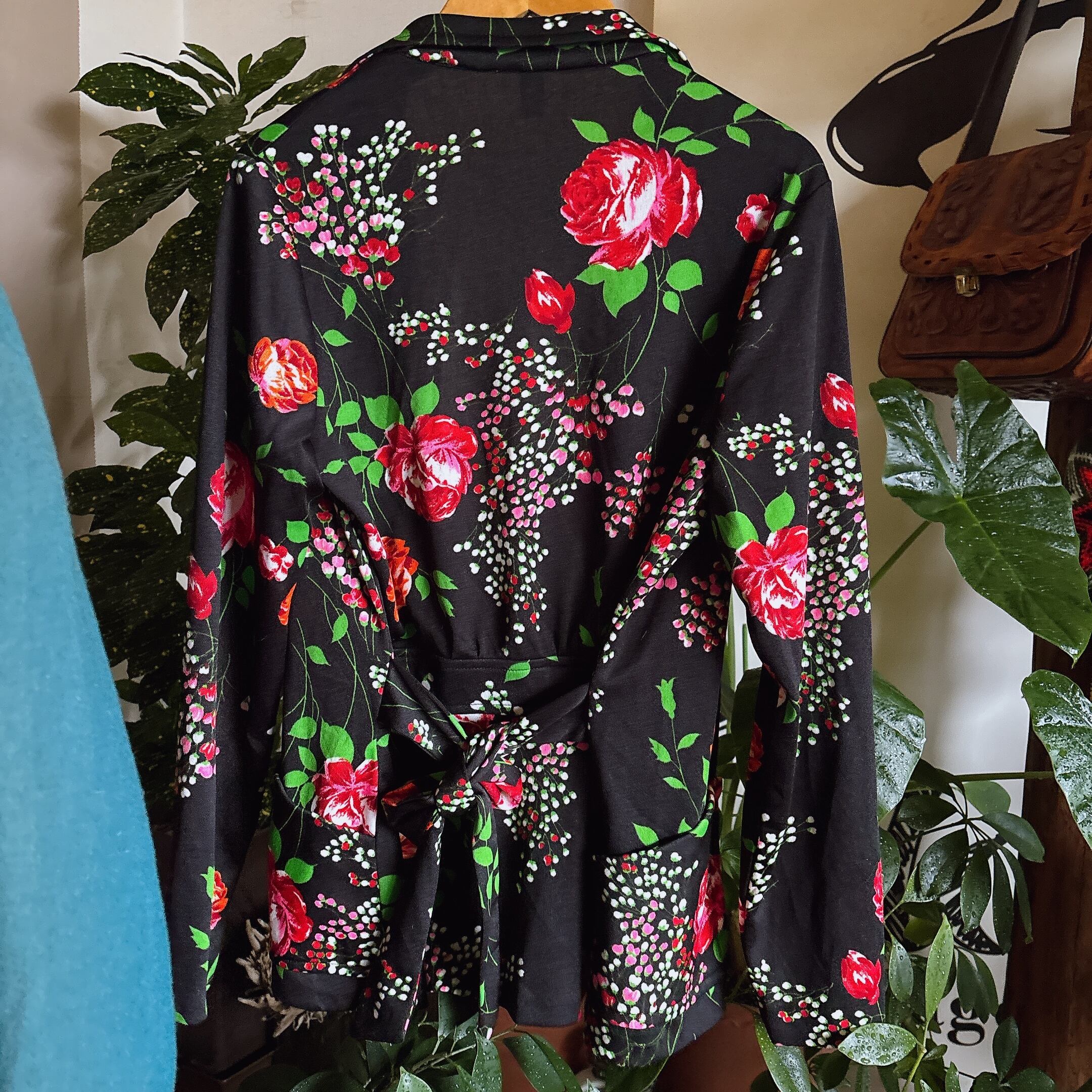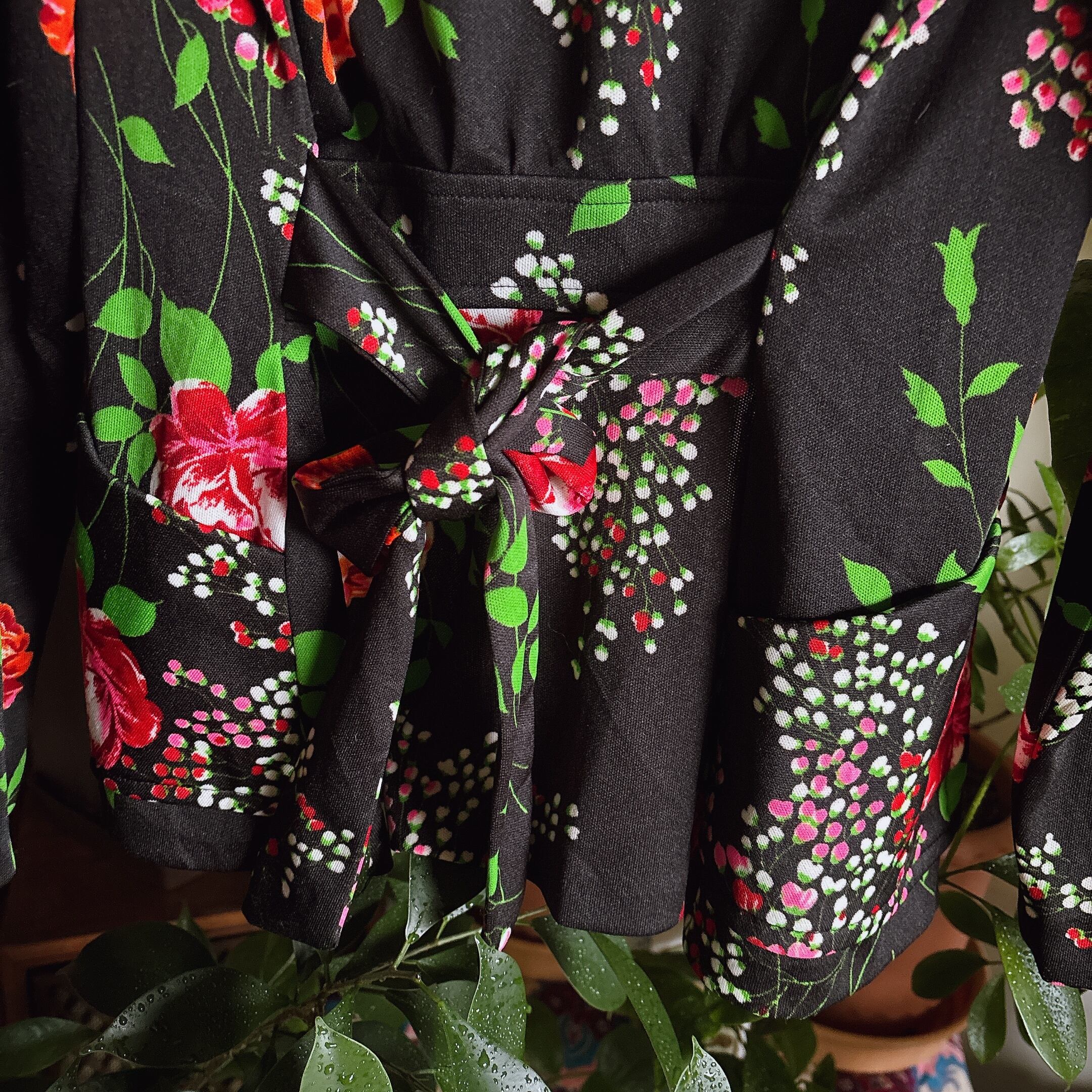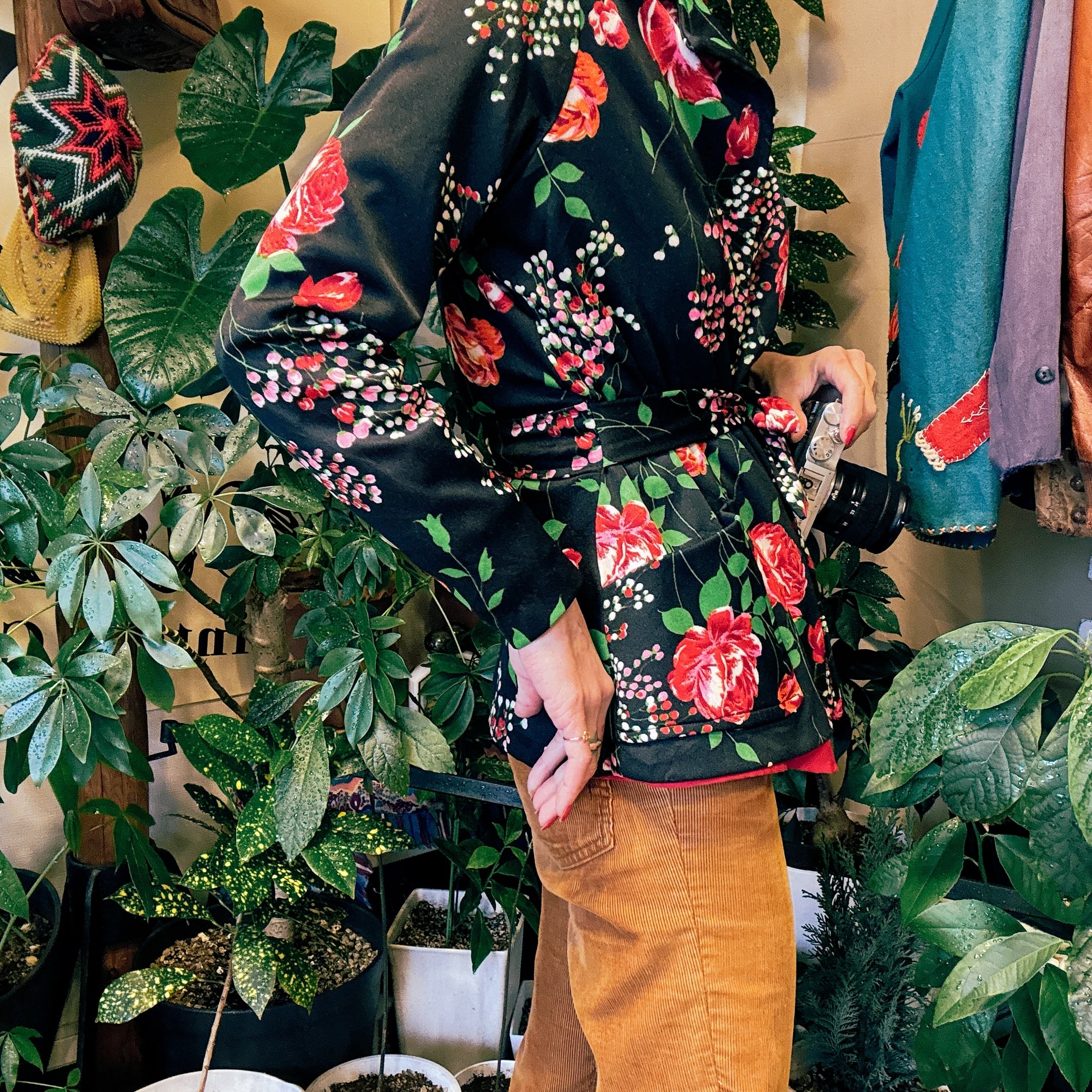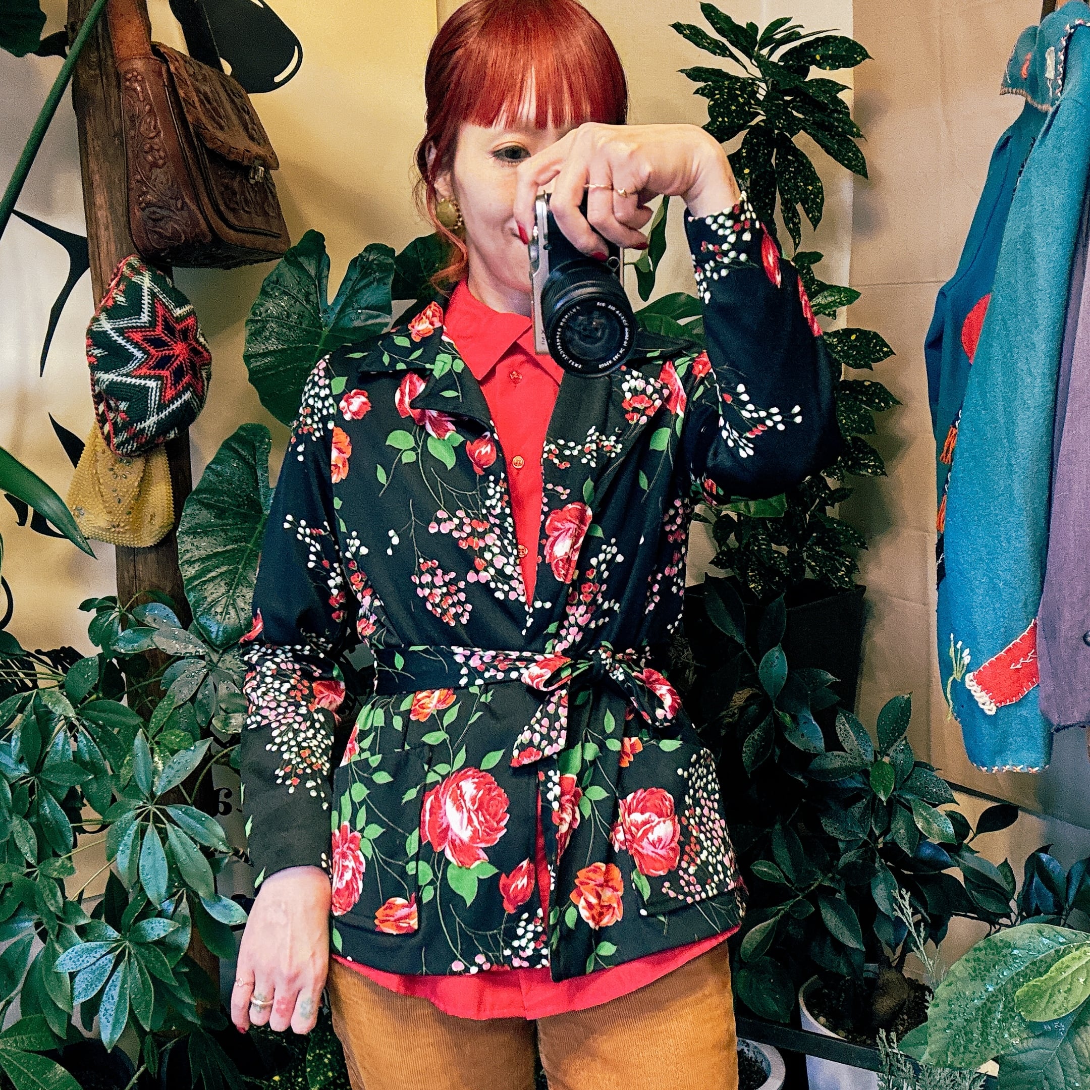 60s 70s 花柄 シャツ ウエスト紐 ライトアウター