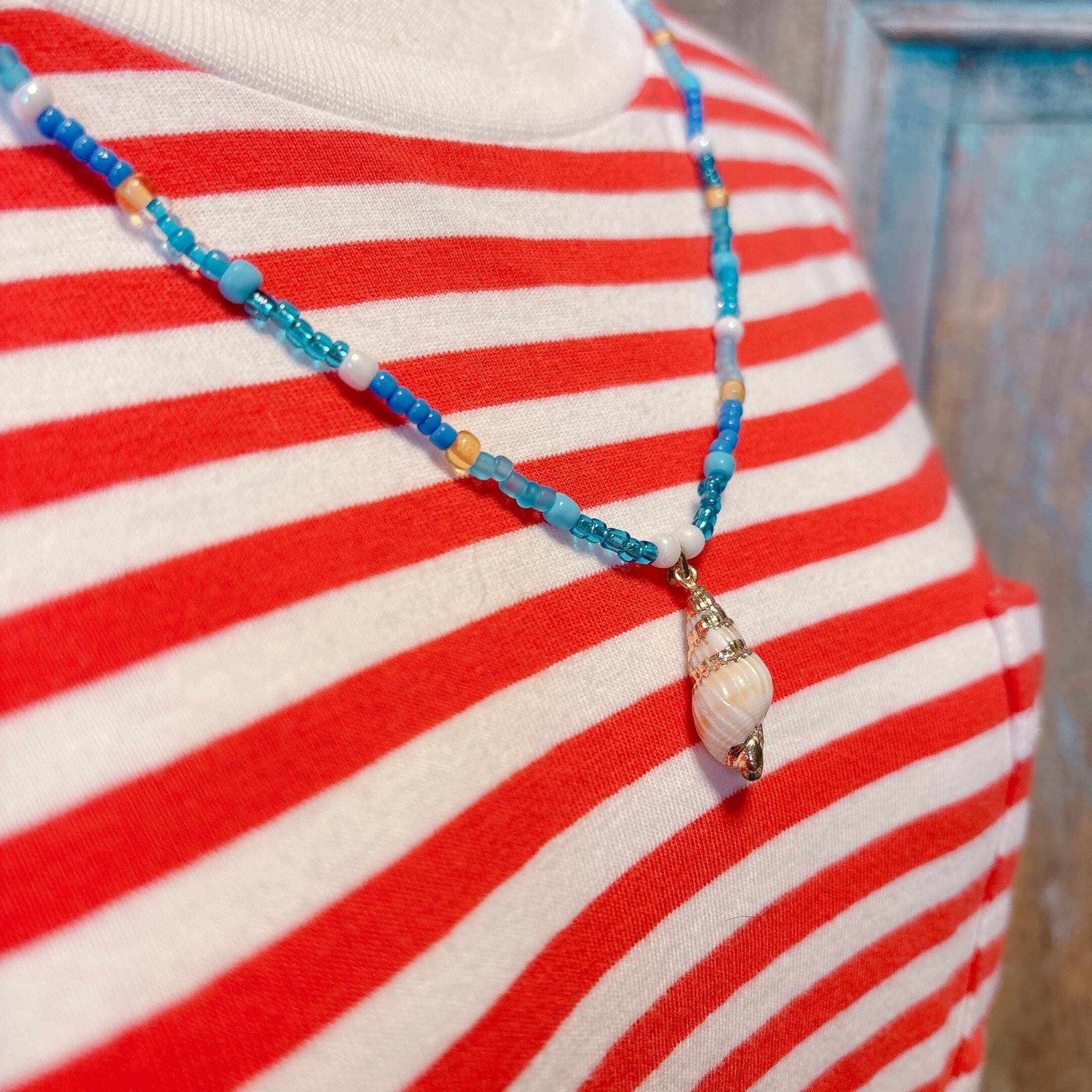 センターにはシェルチャームをあしらい、