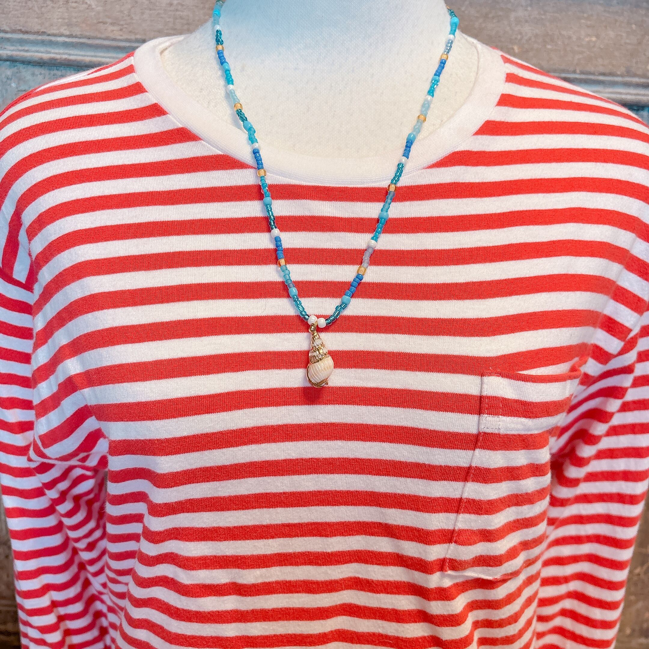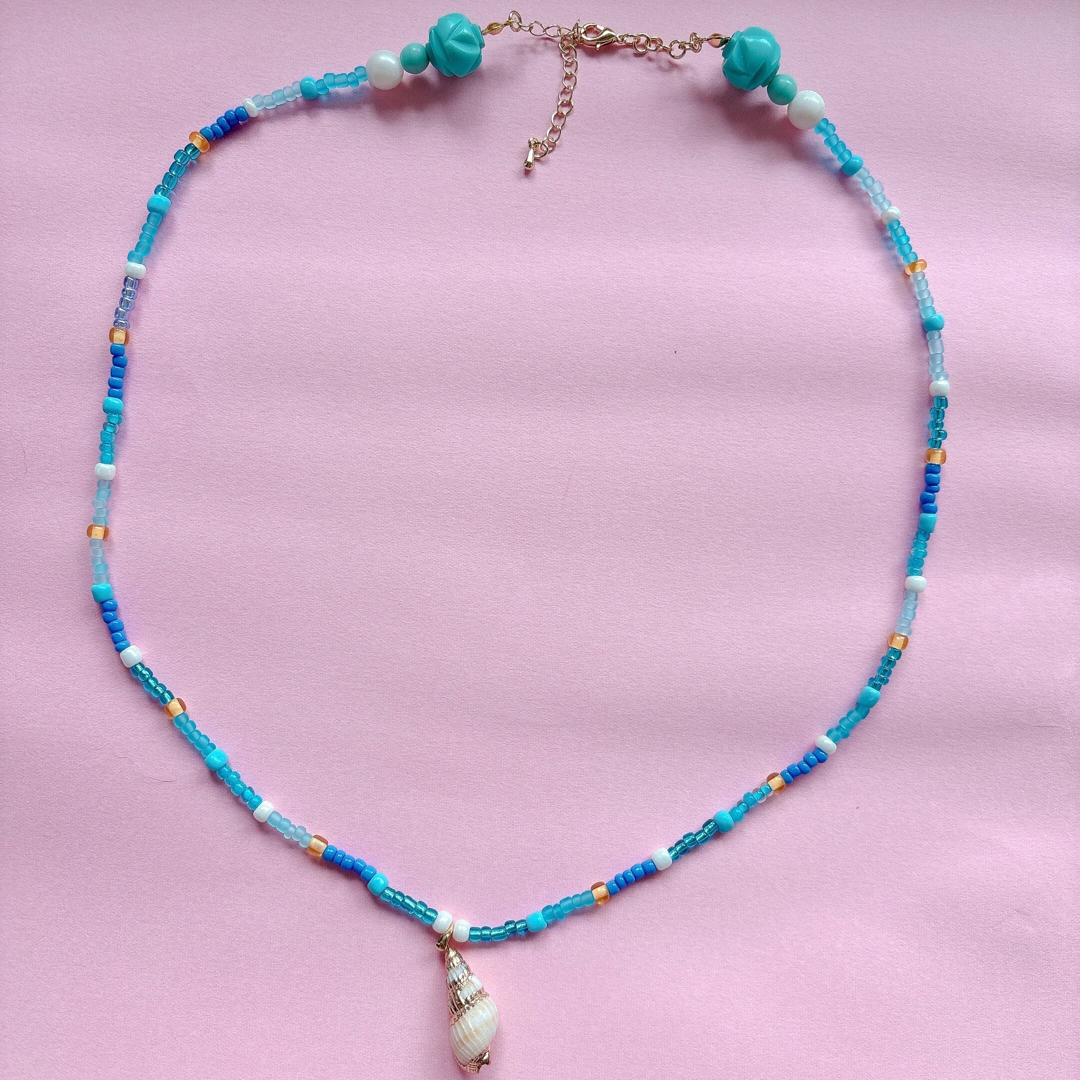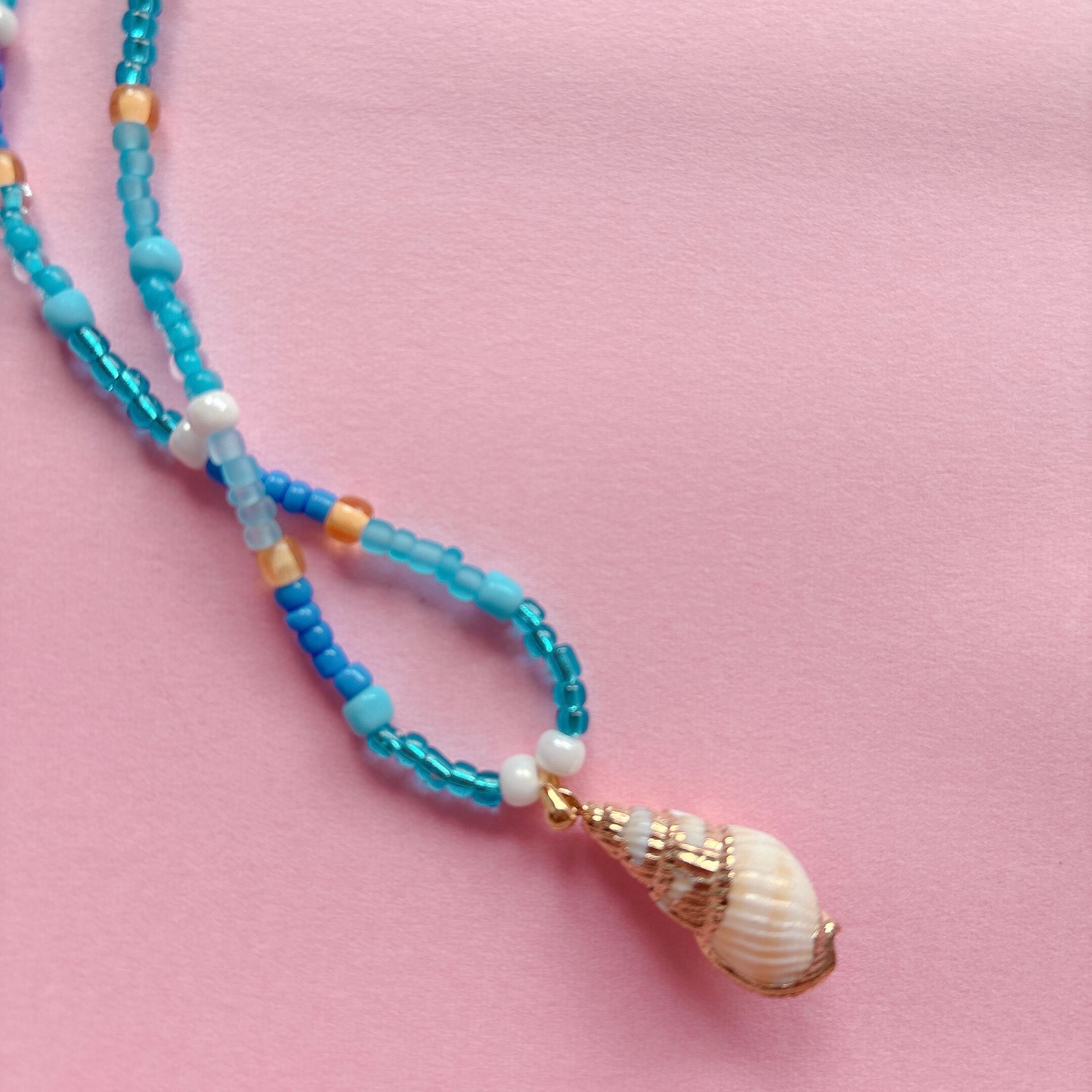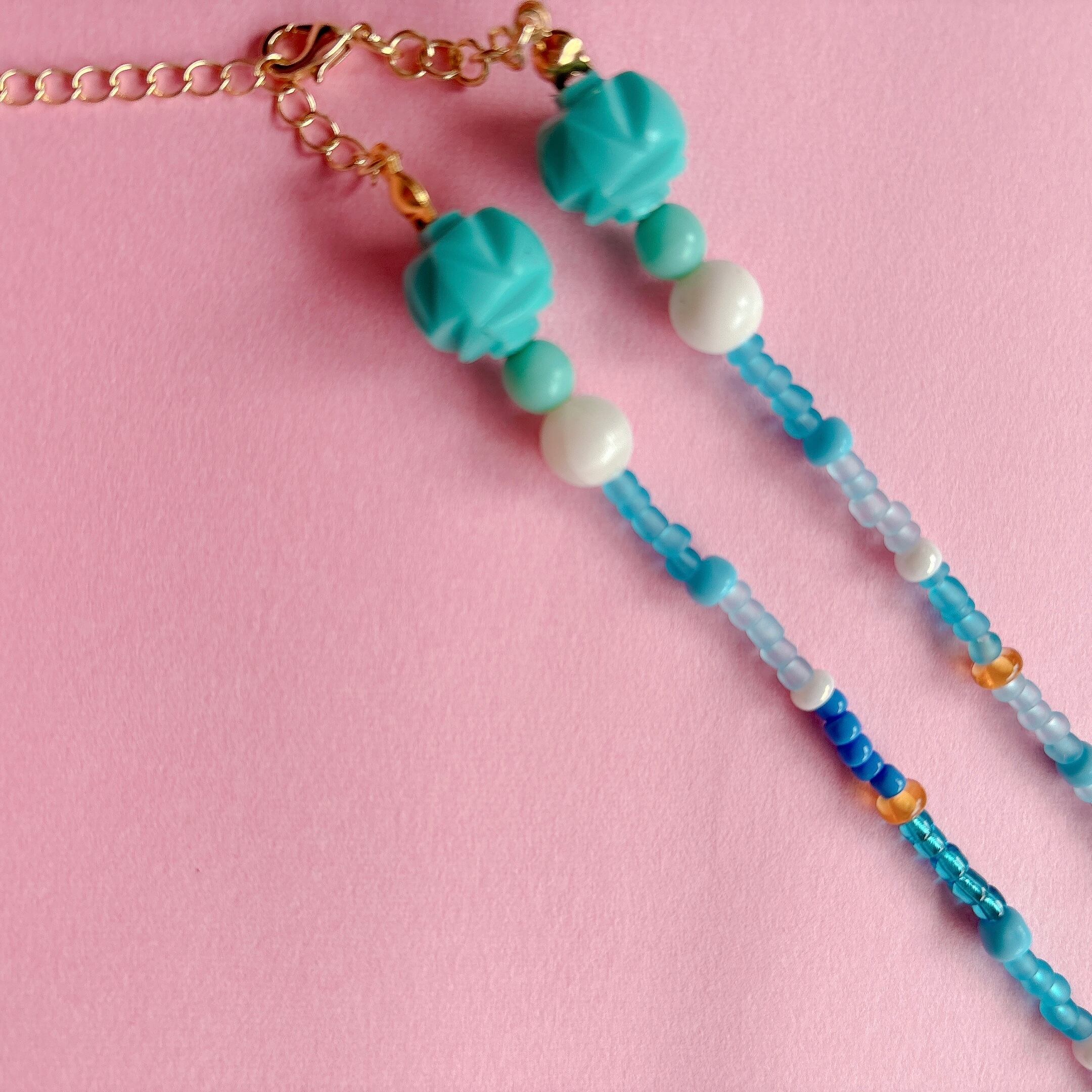 ◾️ 澄んだ海を思わせるターコイズブルーを基調に、繊細なシードビーズをリズミカルに編み上げたネックレス。