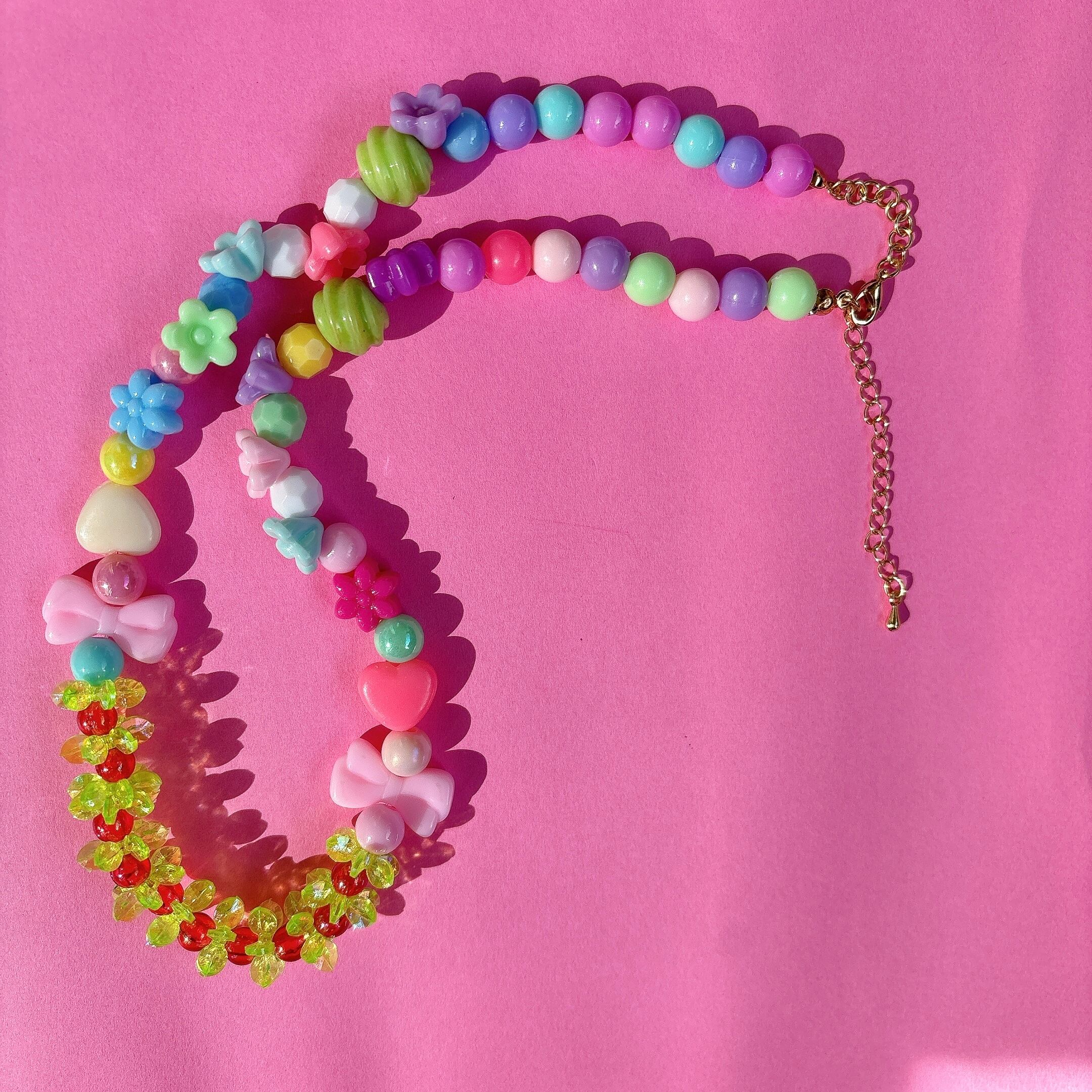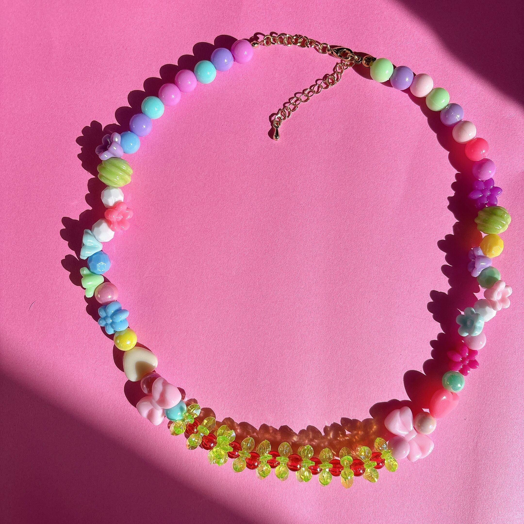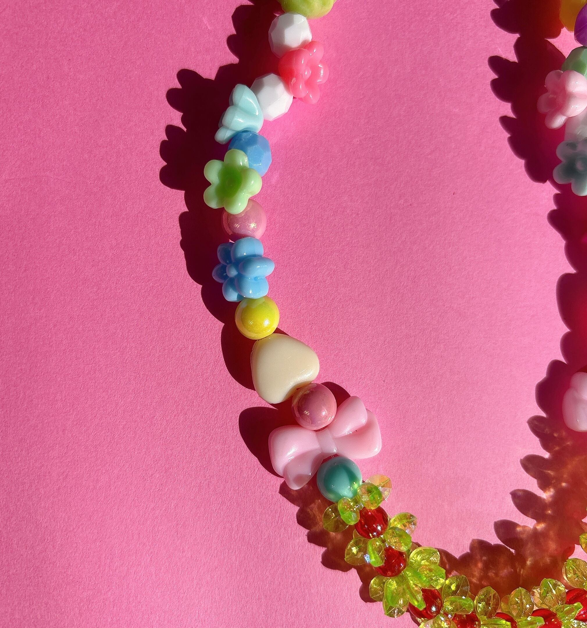 ▪️パステルカラーを基調に、フラワーやハートモチーフを贅沢にあしらったポップなデザインネックレス。