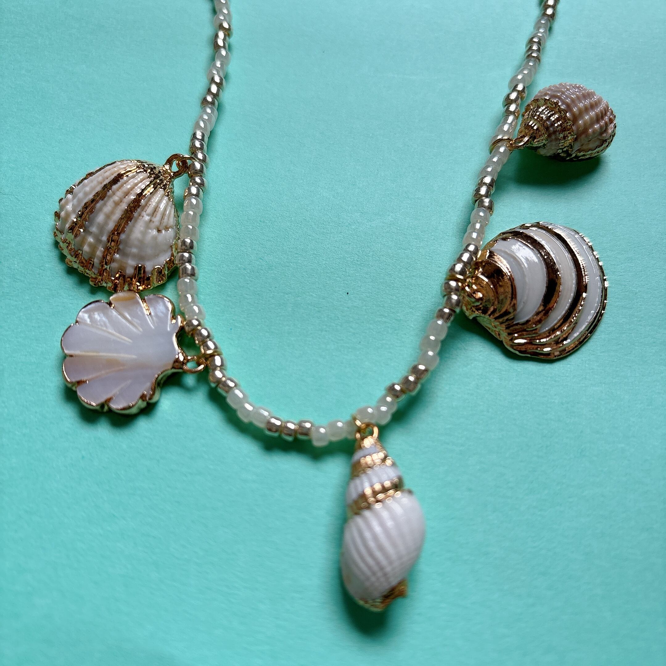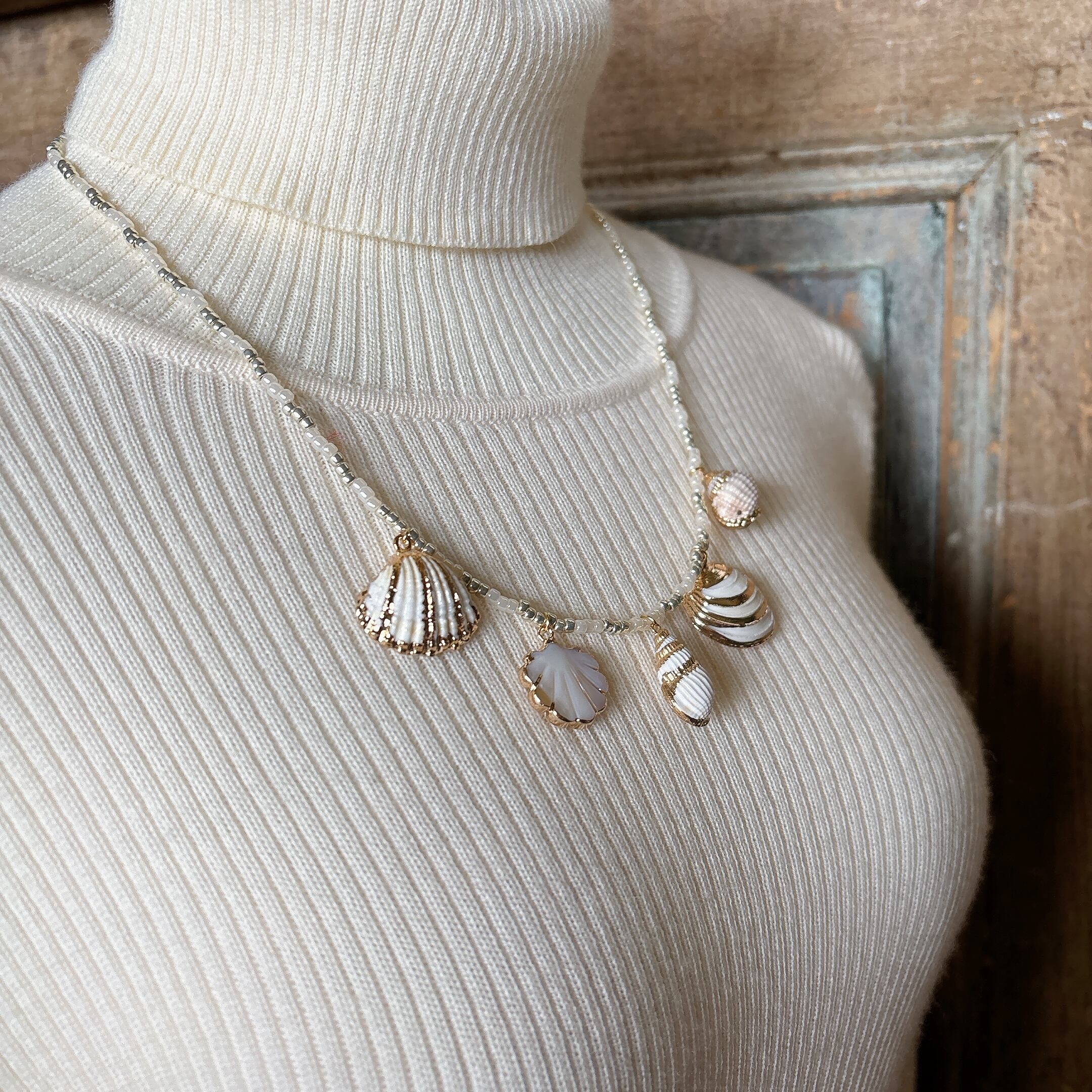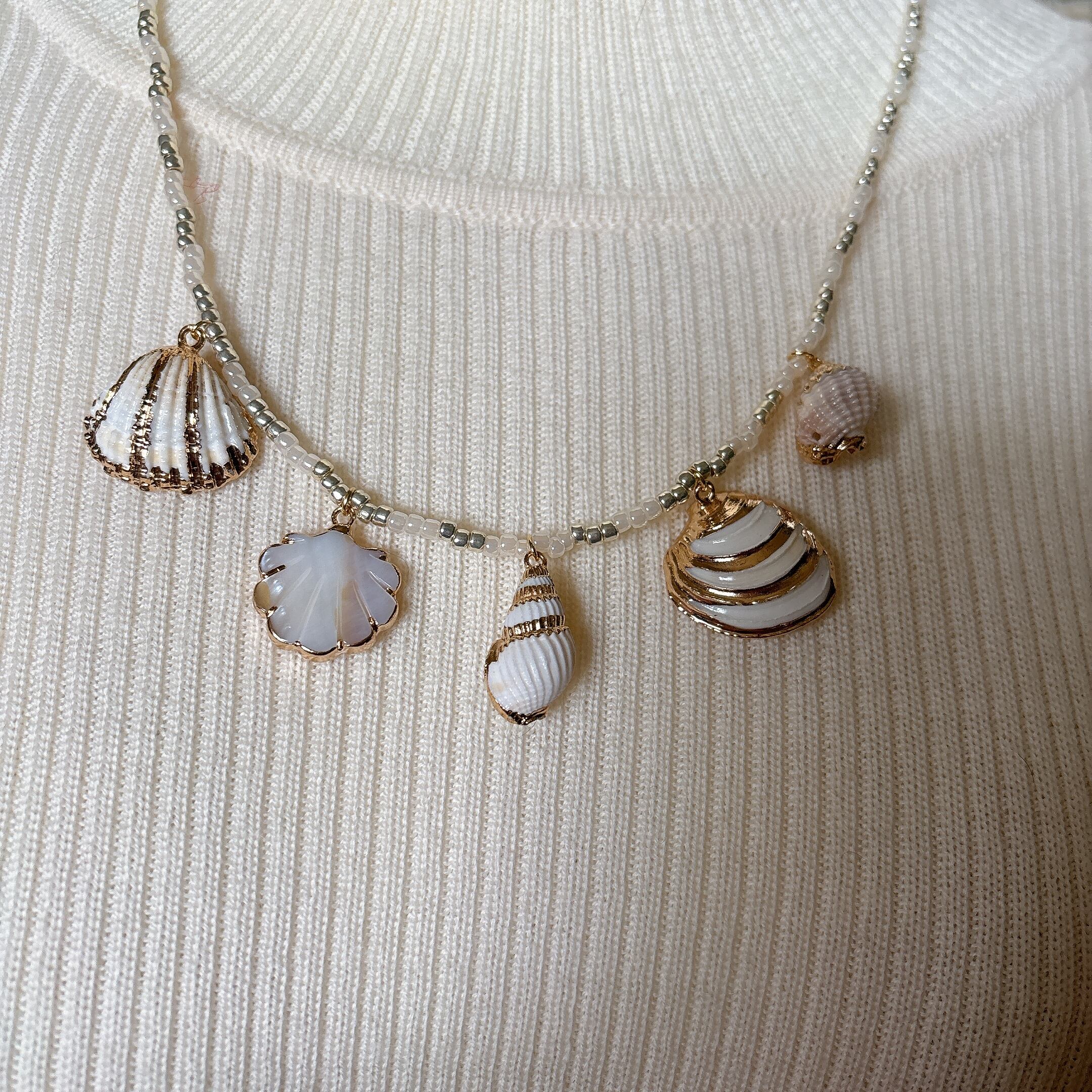 貝殻モチーフのチャームをあしらったヴィンテージネックレス。