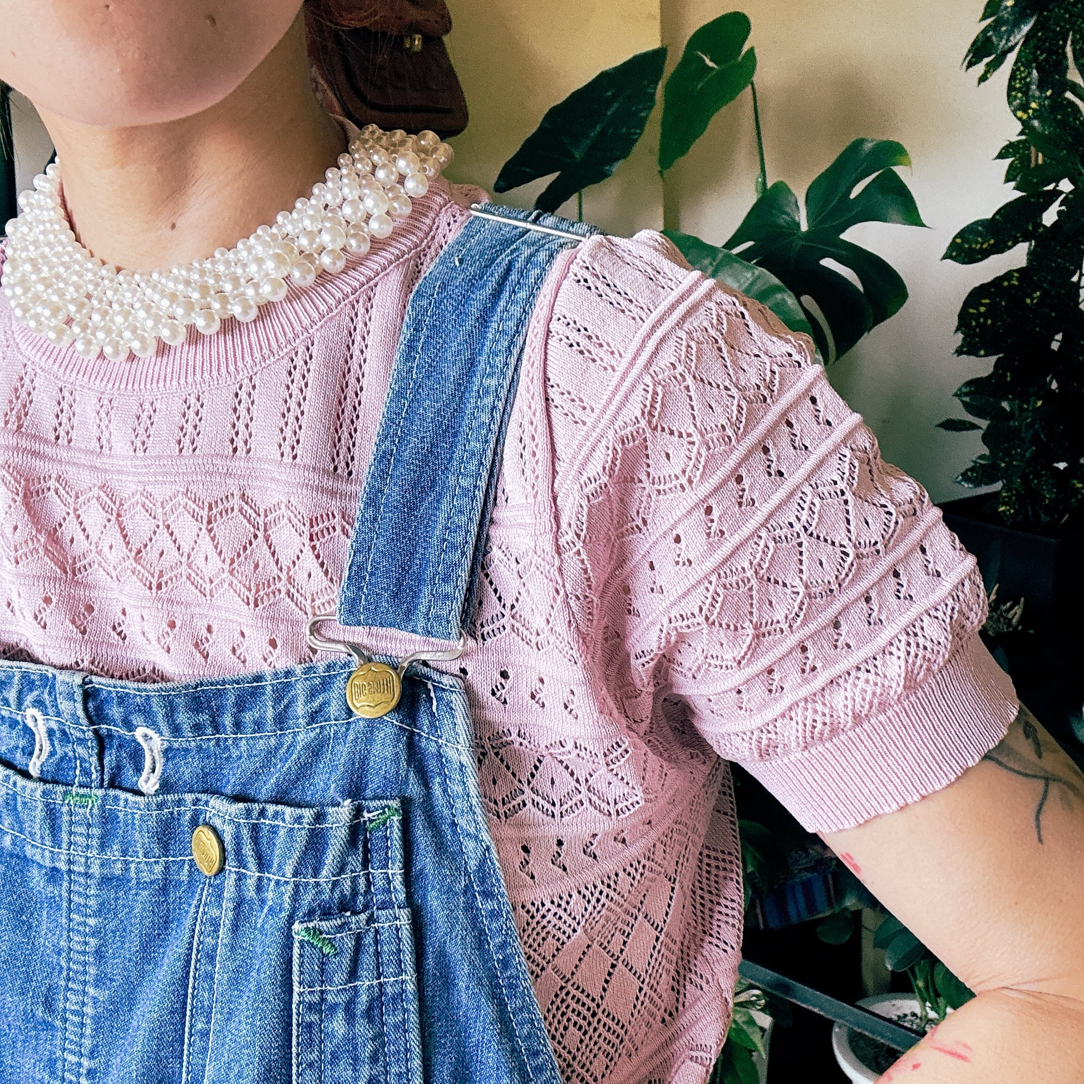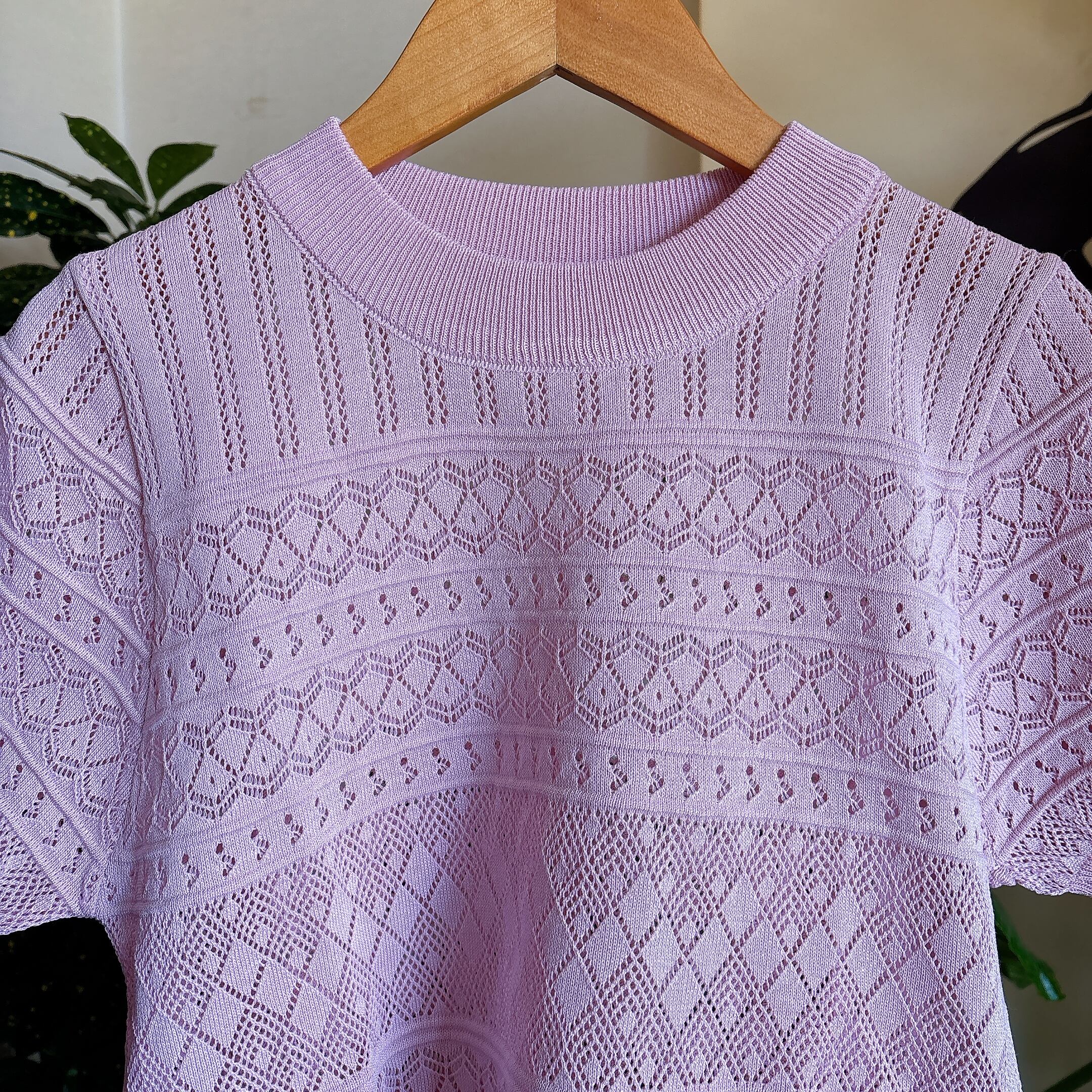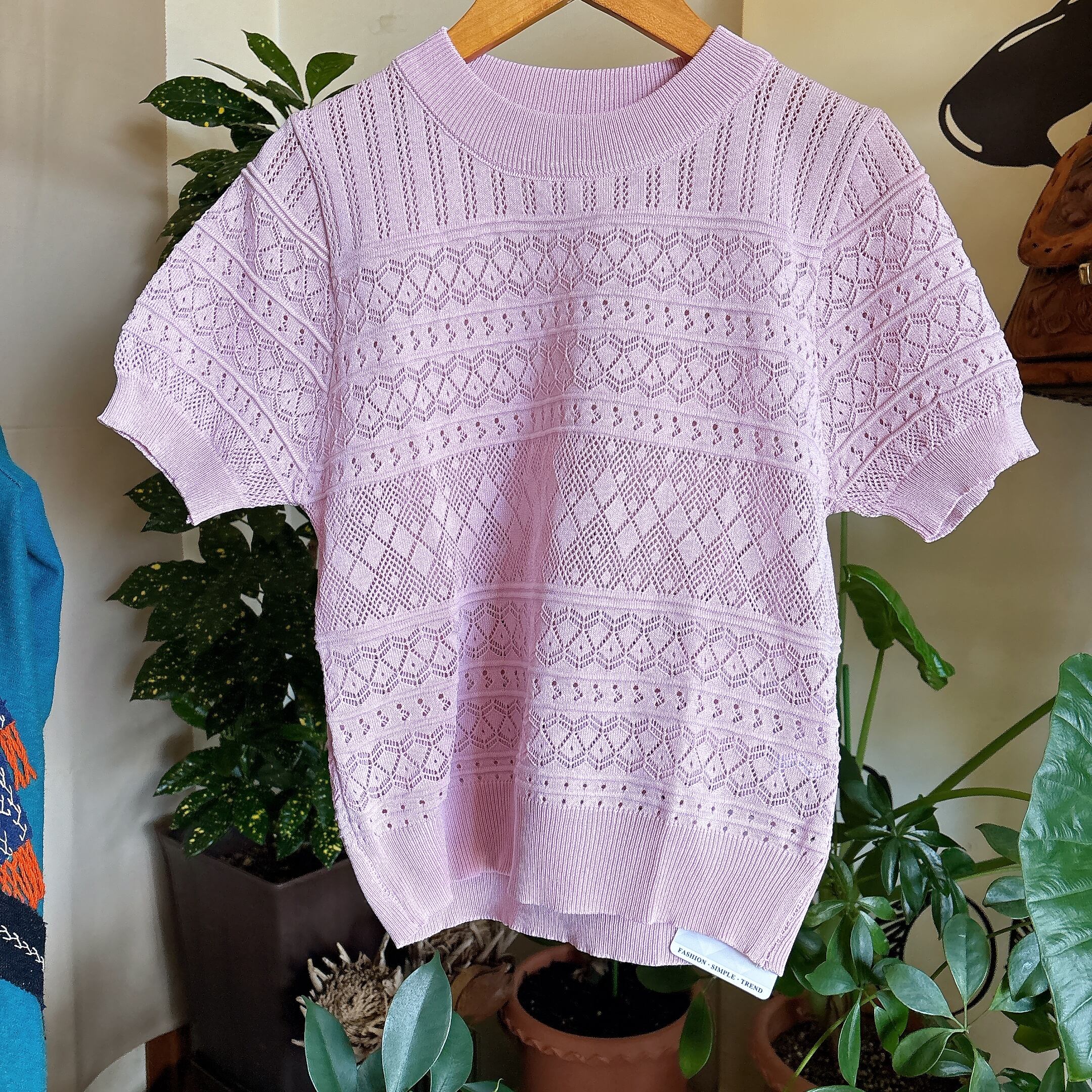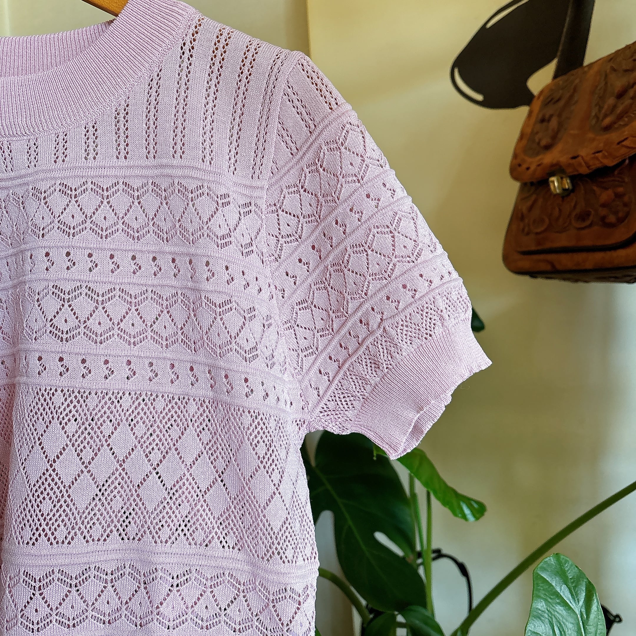 【NEWWITHTAGS】透かし編み 半袖 ニットトップス【ピンク】