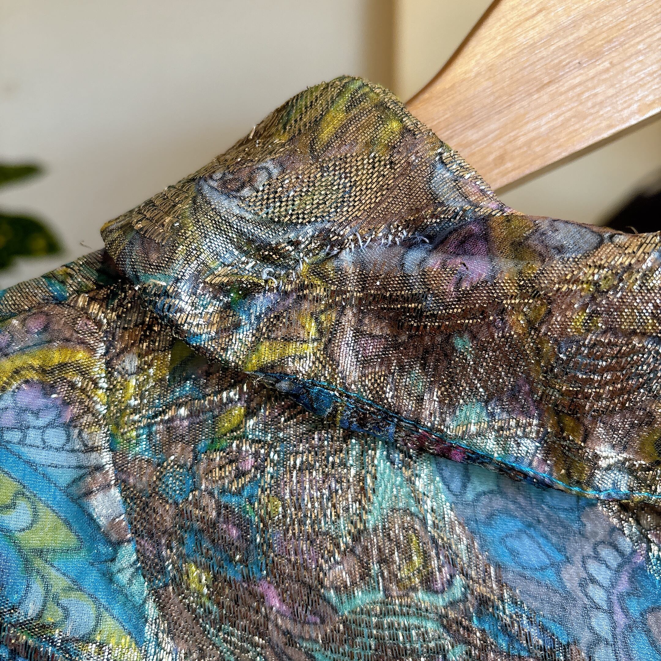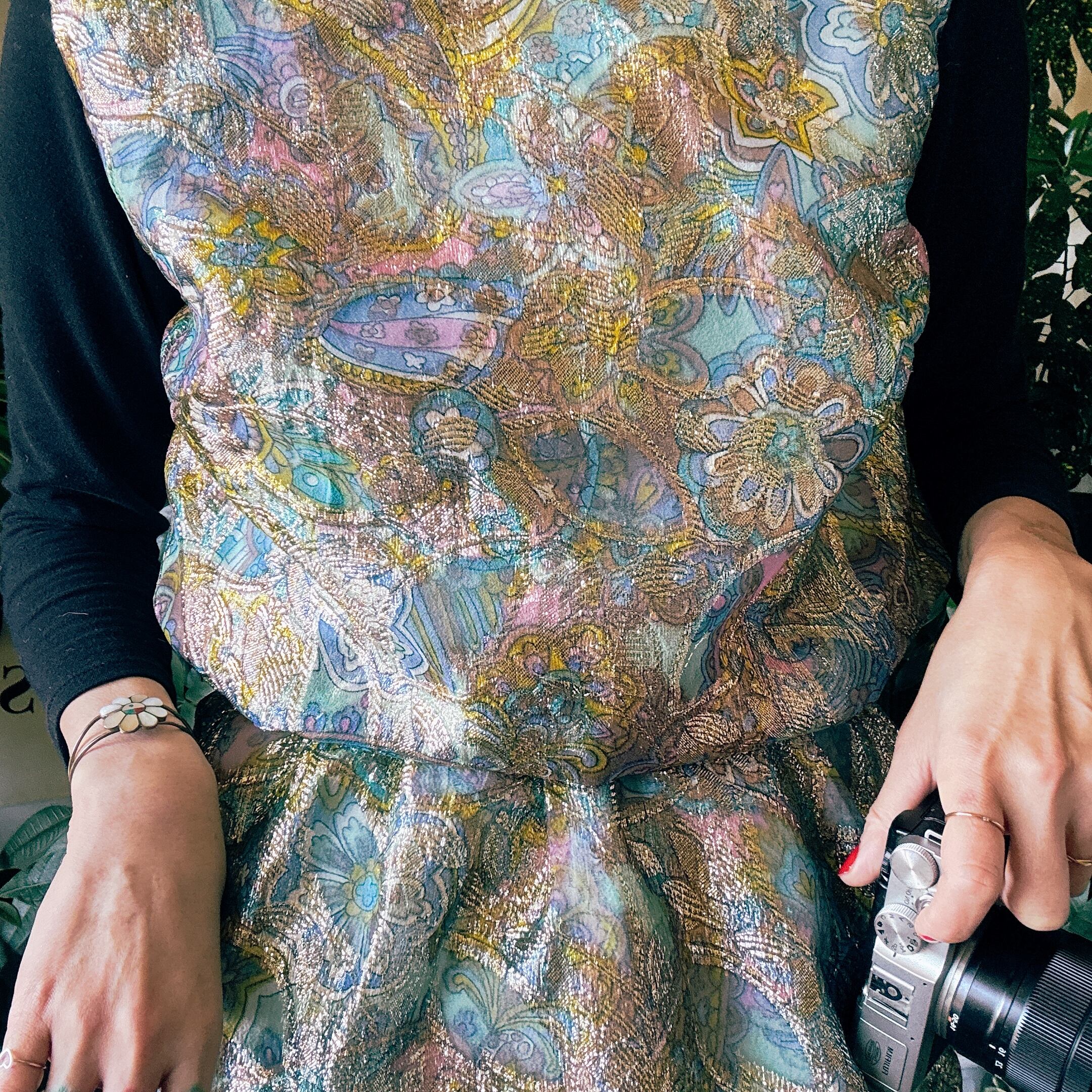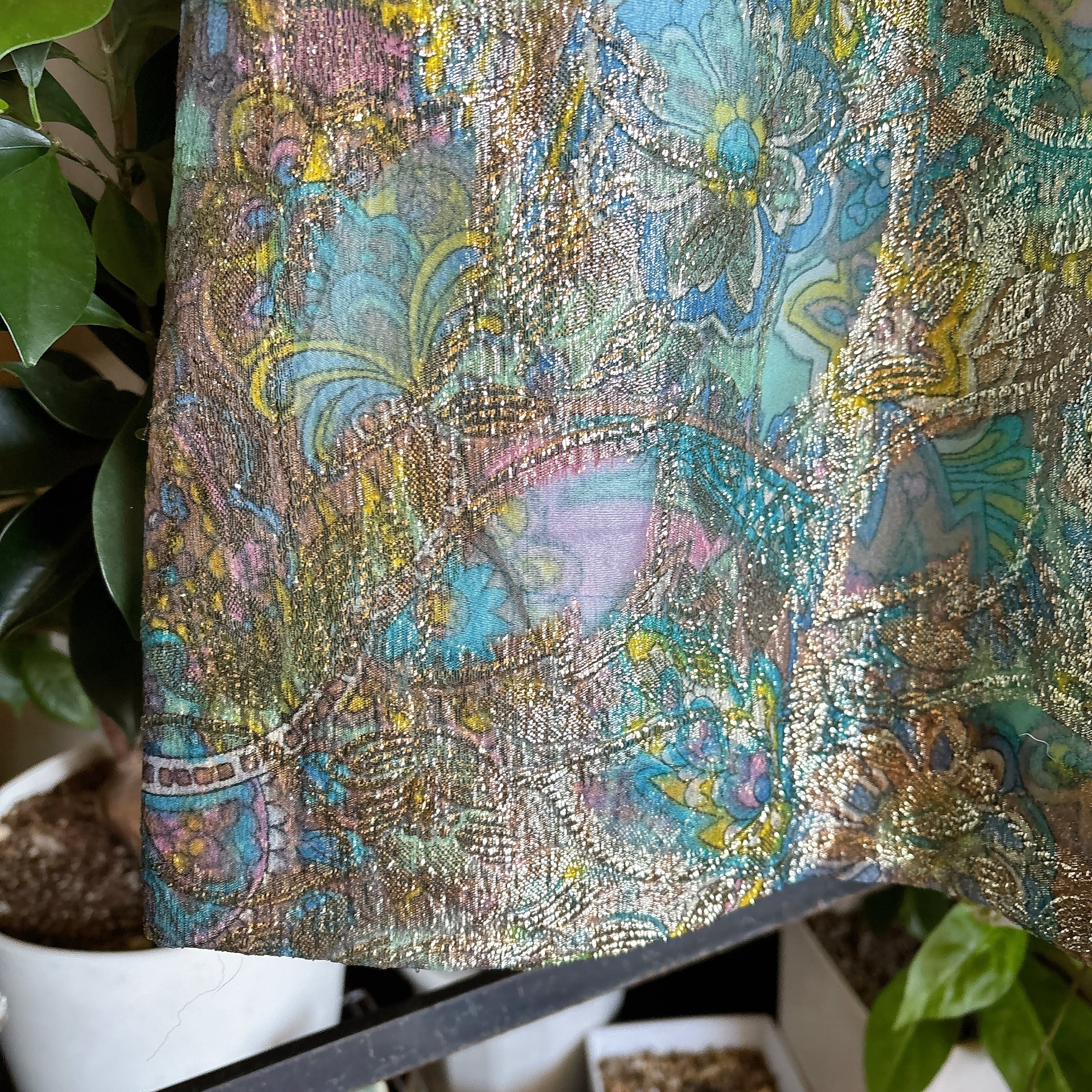 ◾️ゴールドの織り糸が華やかに輝く、ペイズリー柄のヴィンテージワンピース。