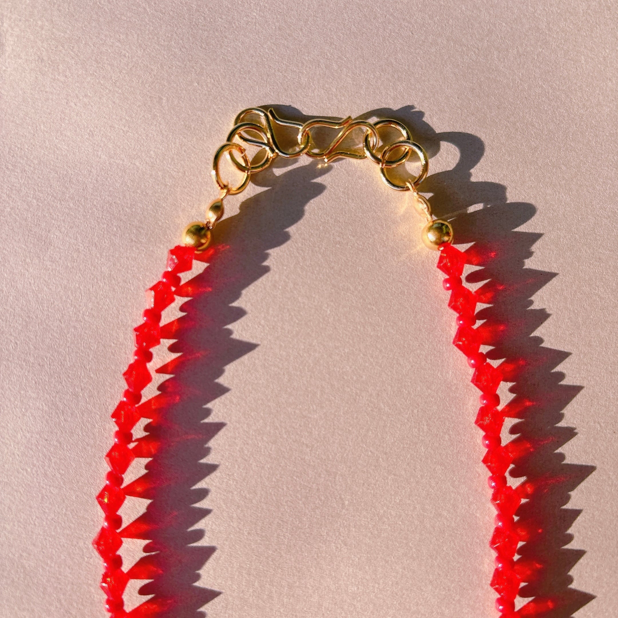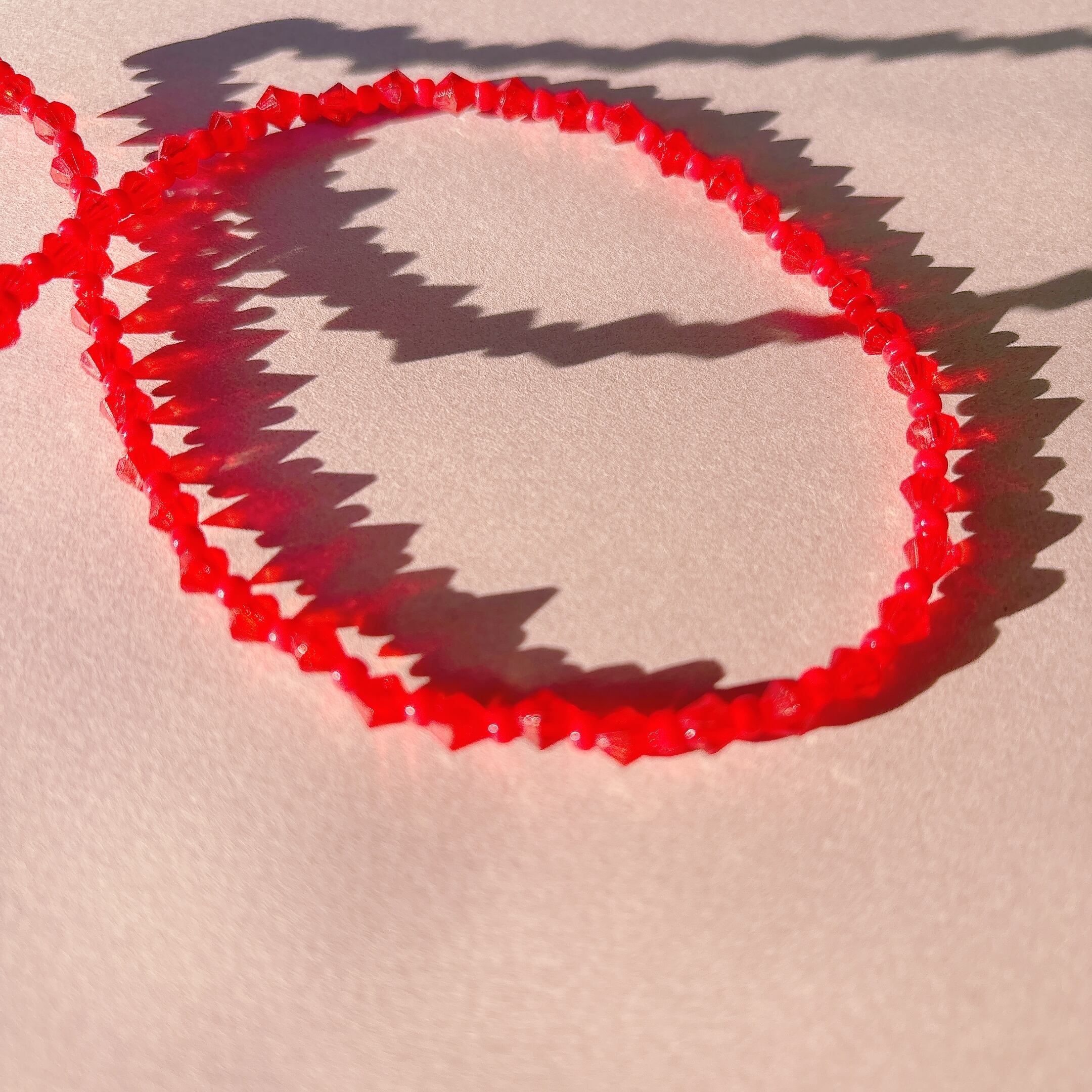 ◾️ 鮮やかなレッドが印象的な、ミニサイズのガラスビーズネックレス。