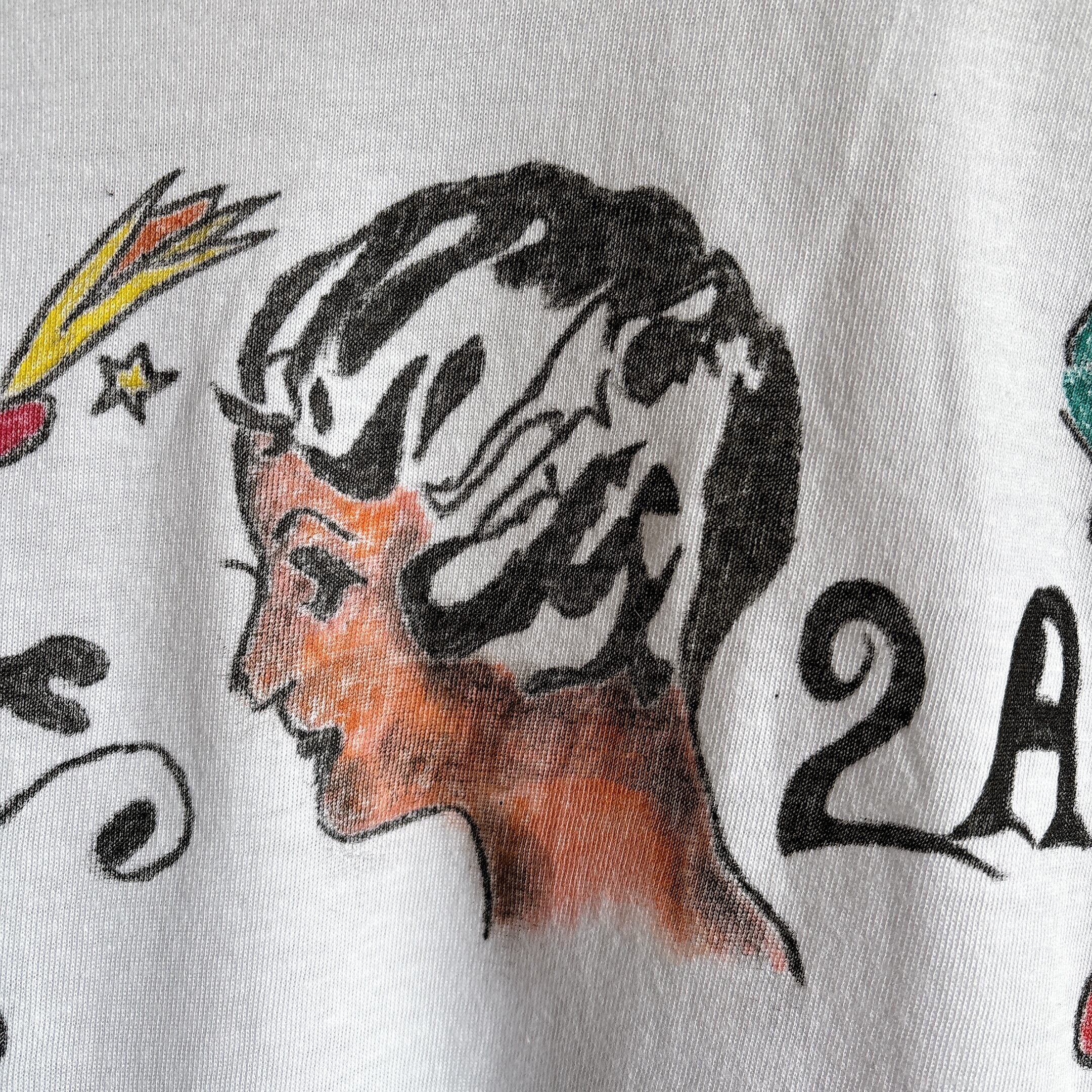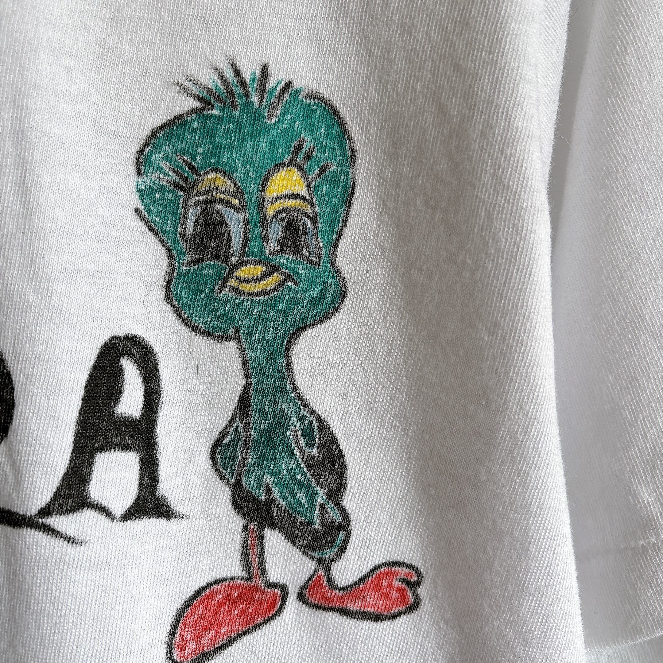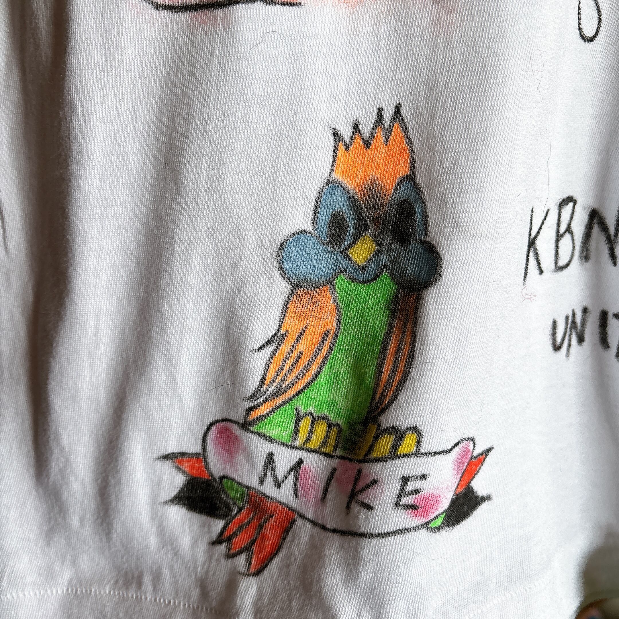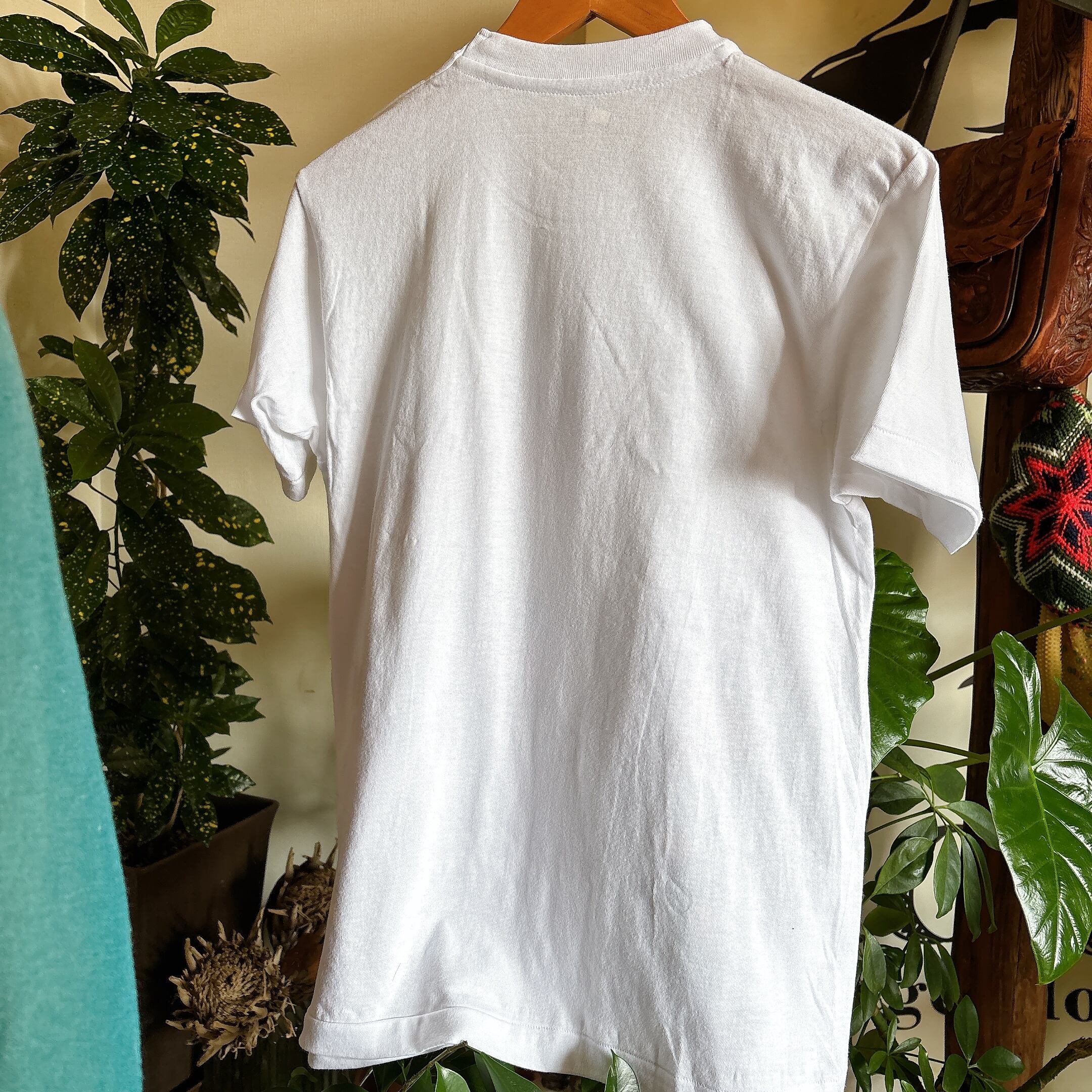 ◾️無地のティーシャツにハンドペイントを施しました。使い勝手の良いクルーネック。ユニセックスにお使いいただけます。表記サイズはSですが程よく伸縮性があり普段レディースMサイズ着用モデルでちょうど良く着られました。