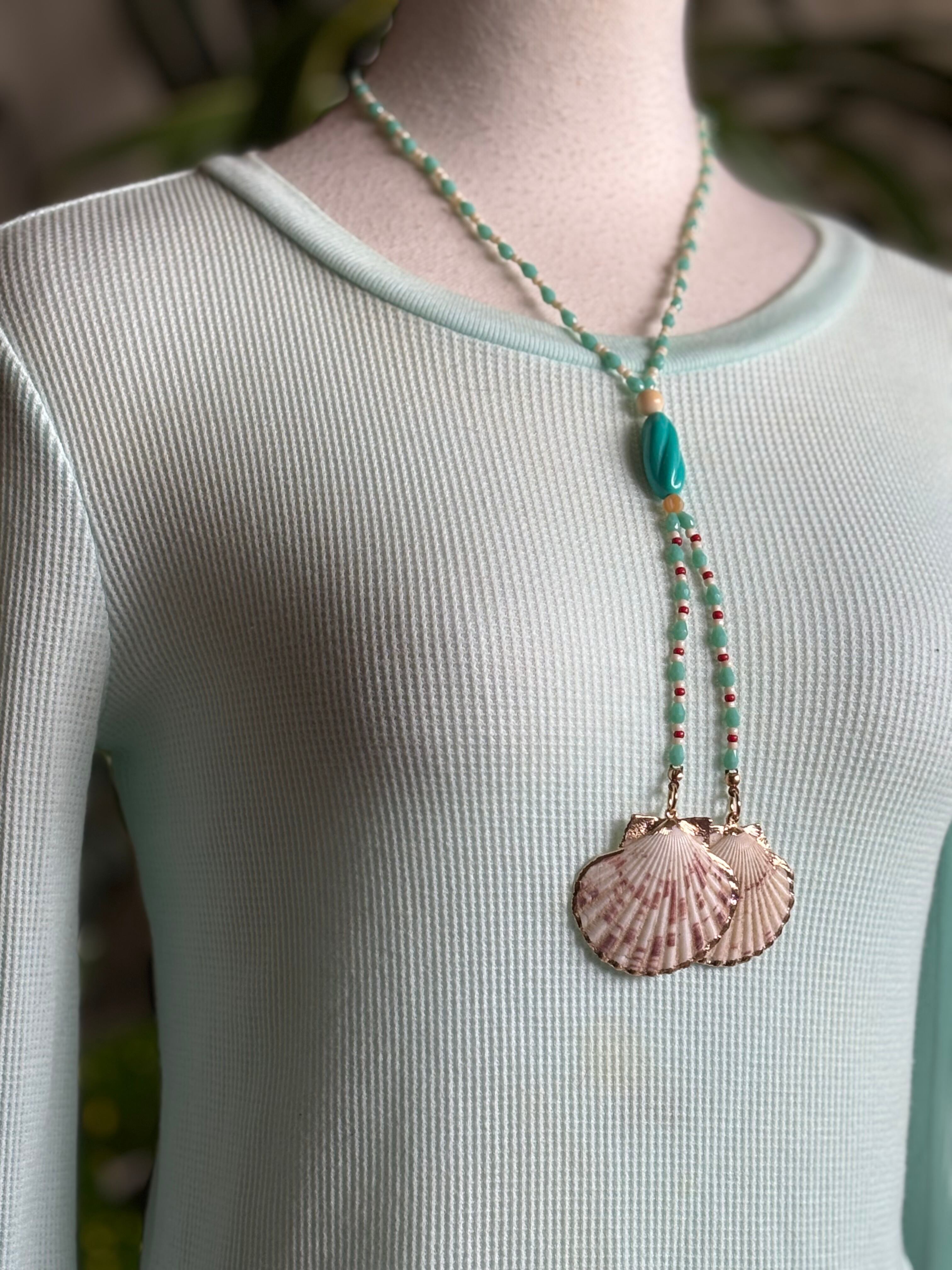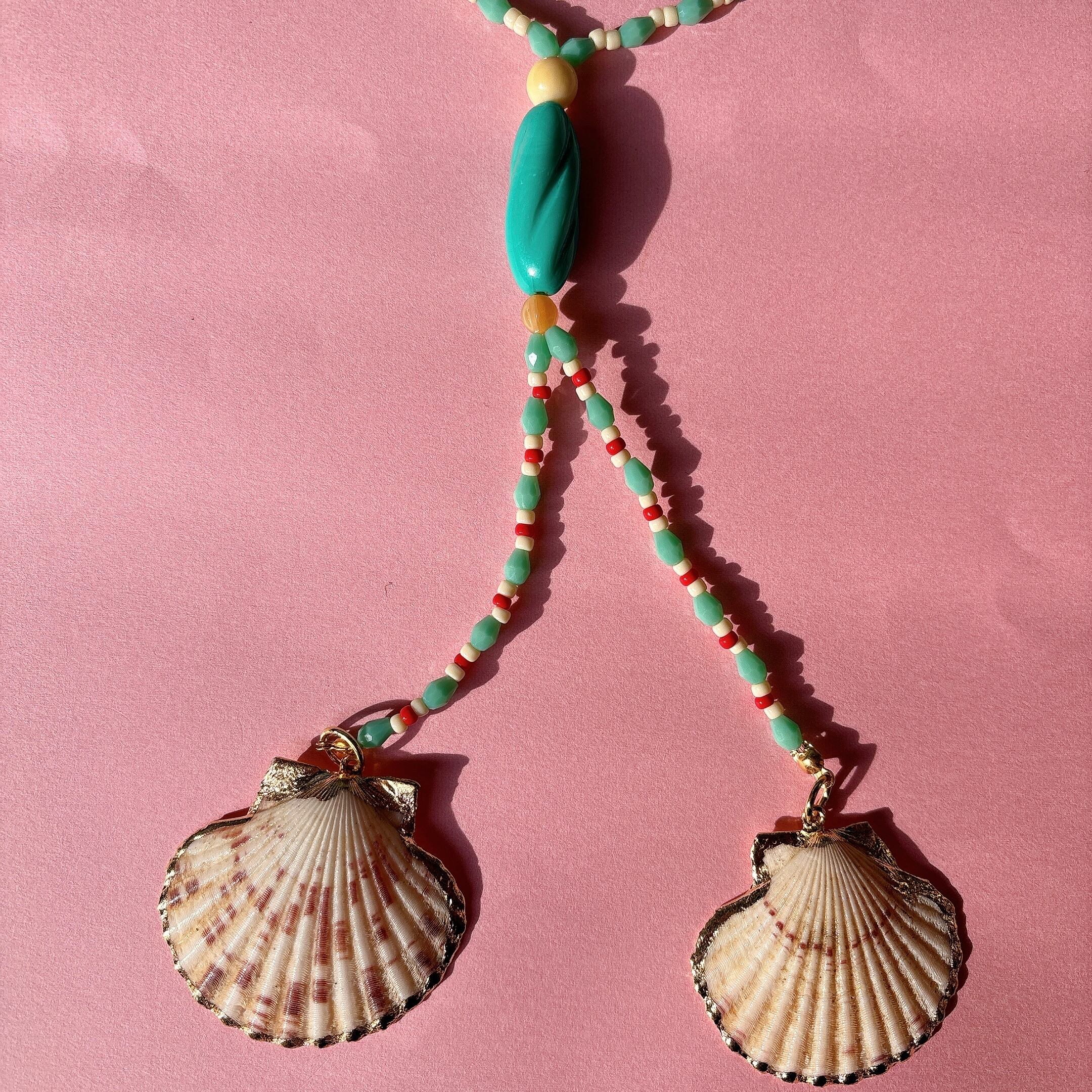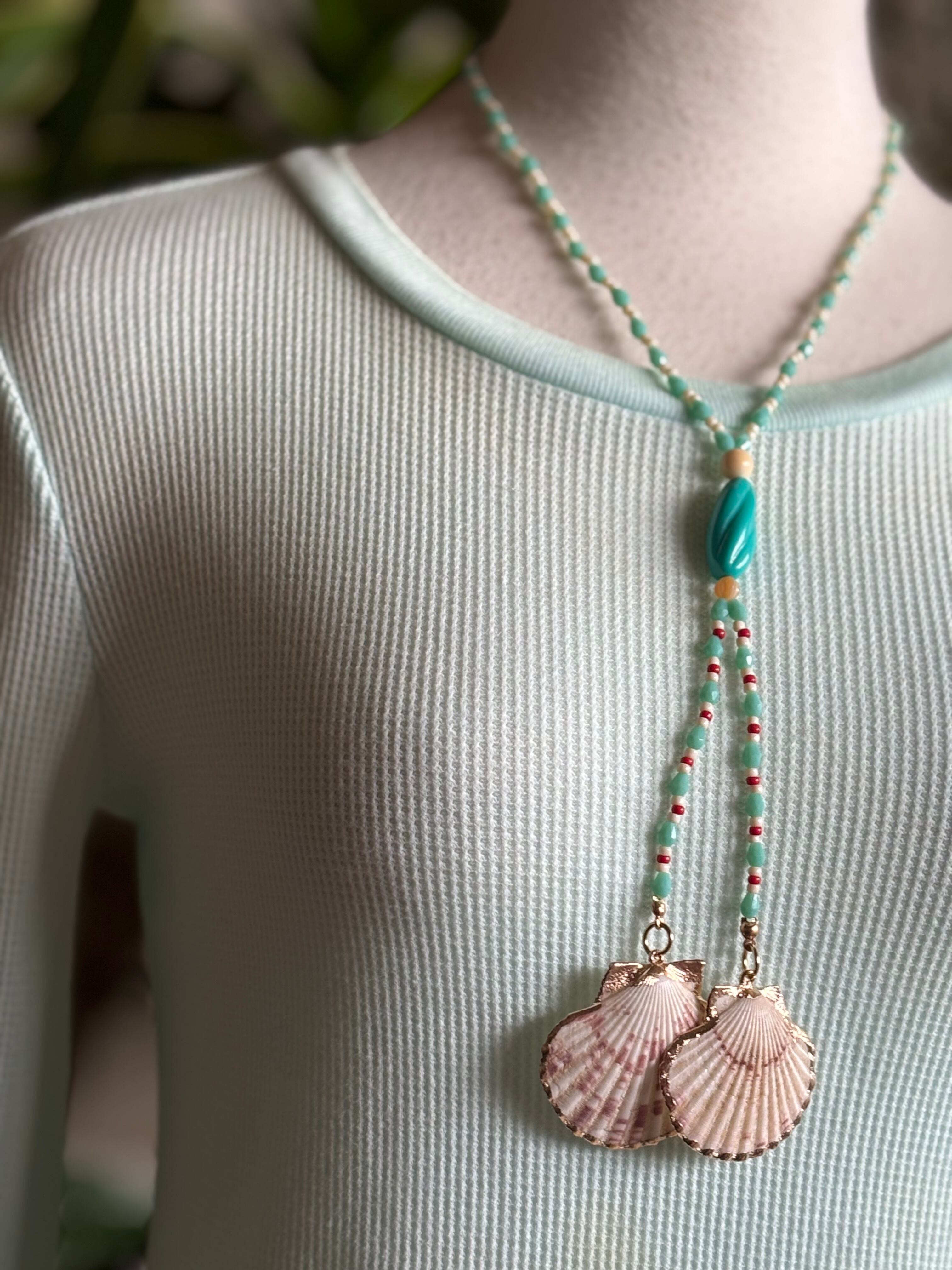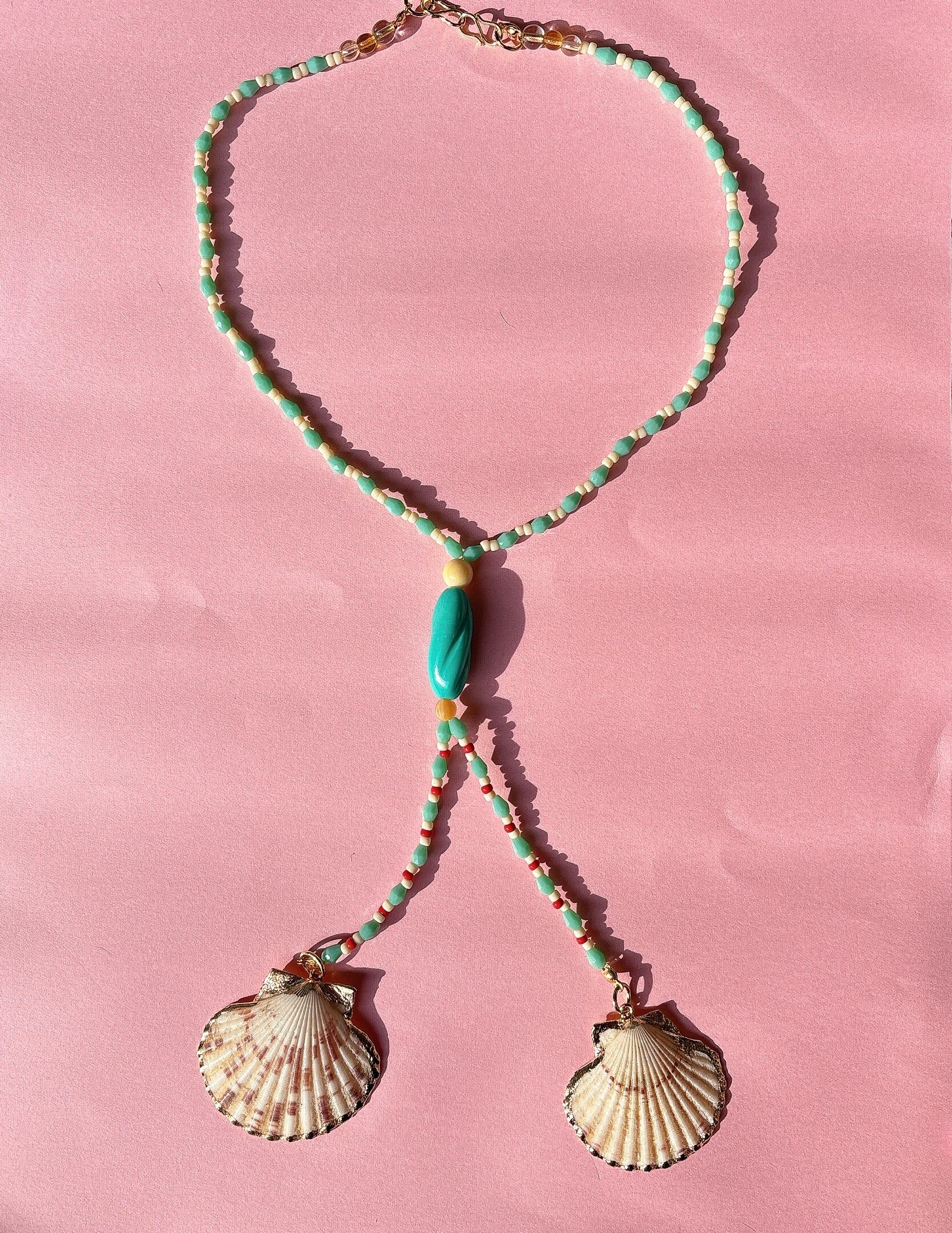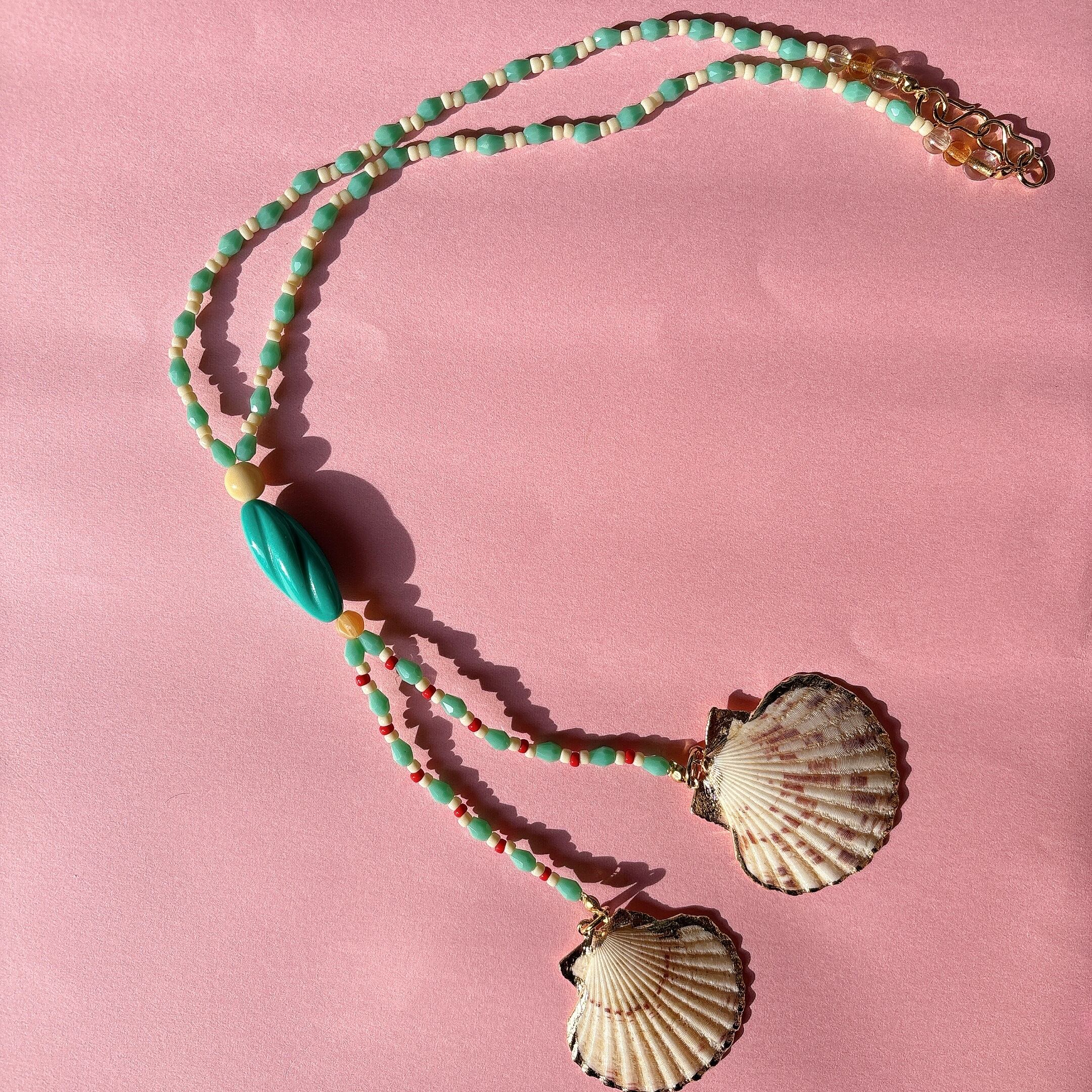 フロントには大ぶりのシェルを2枚あしらい、夏らしい軽やかさとアクセントをプラス。