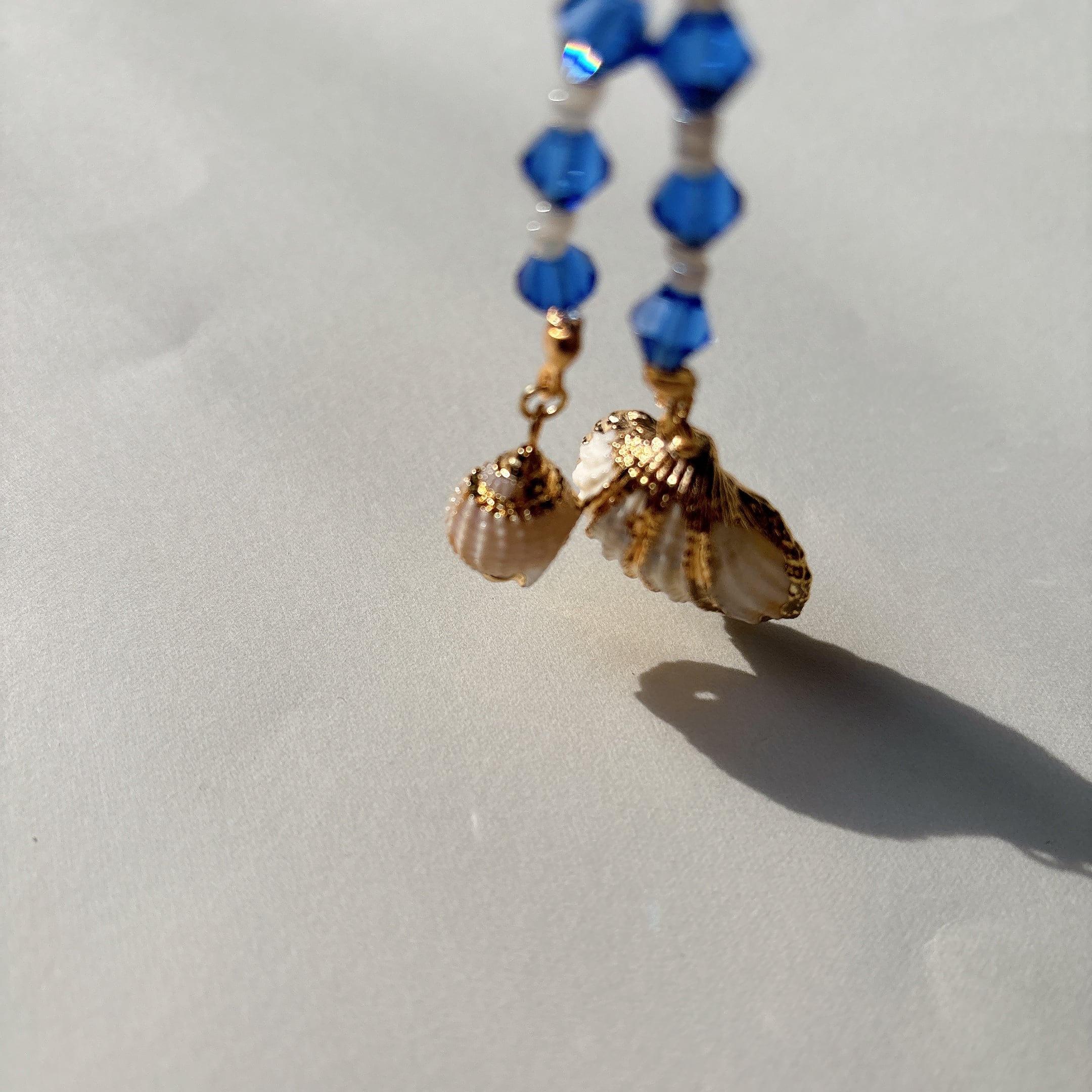 フロントには繊細な装飾ビーズと、小ぶりのシェルチャームを組み合わせ、動きのあるデザインに。揺れるたびにさりげない存在感を放ち、コーディネートのアクセントになります。